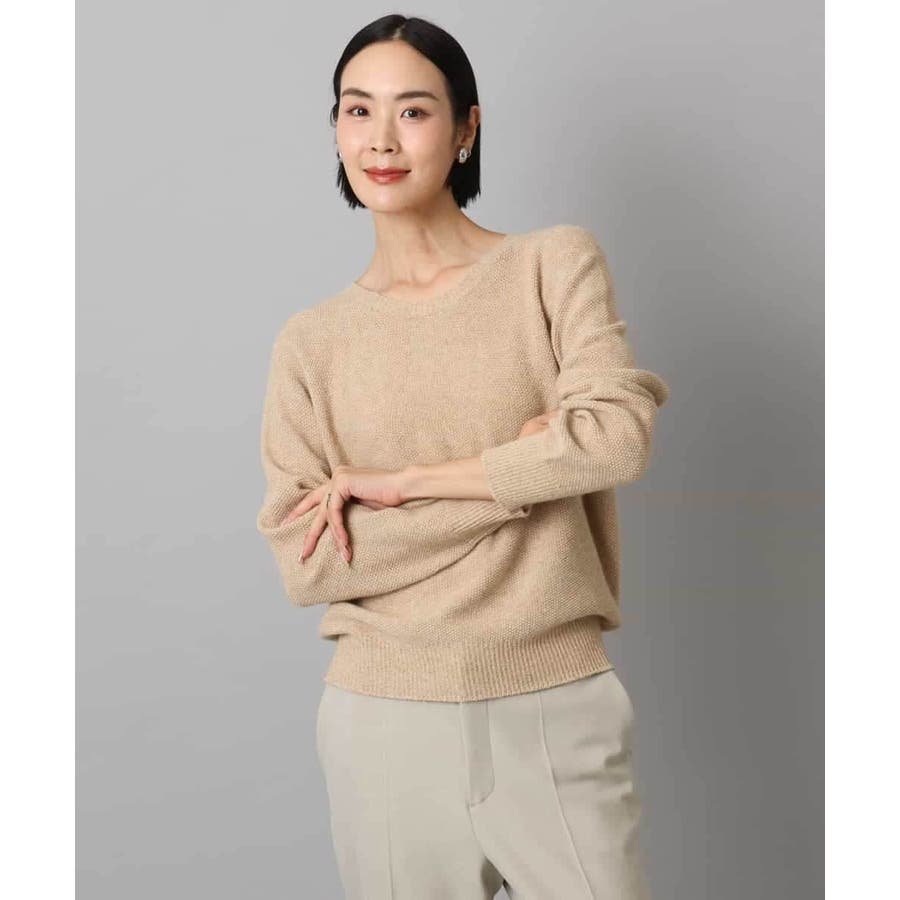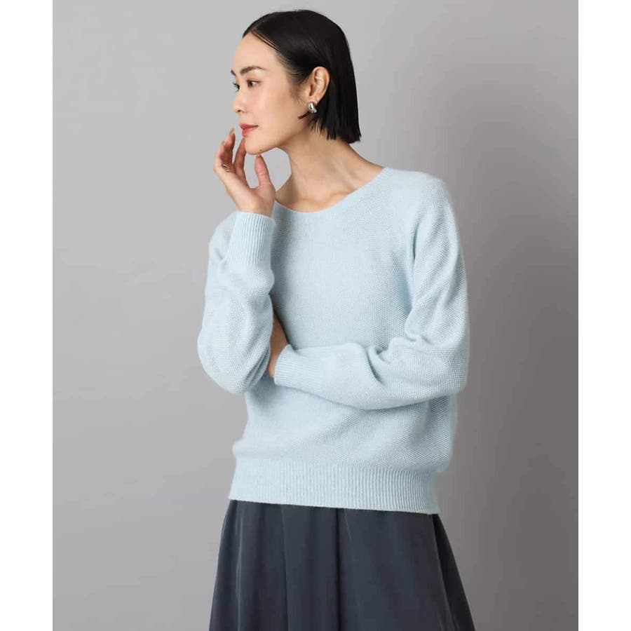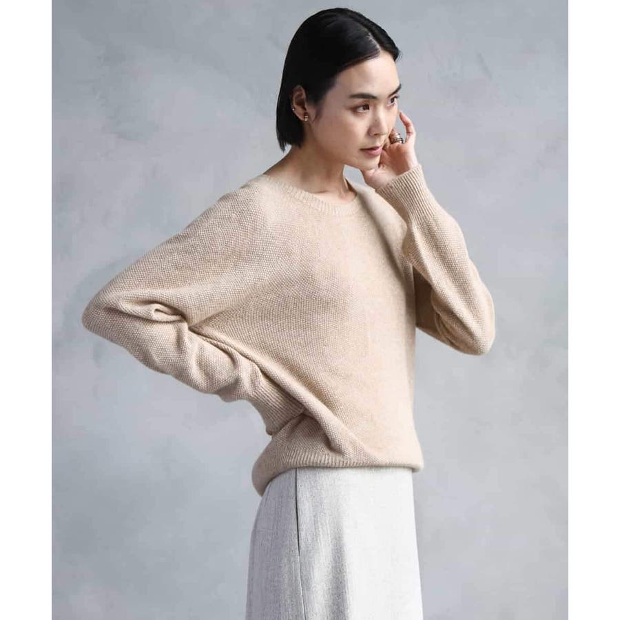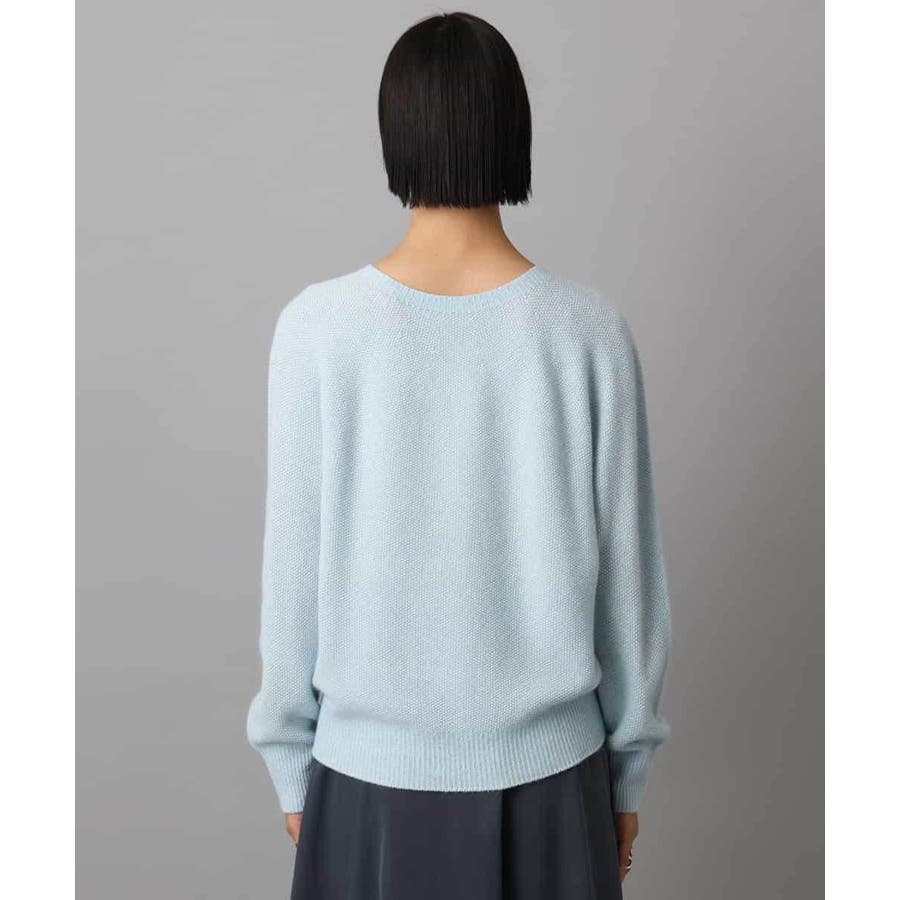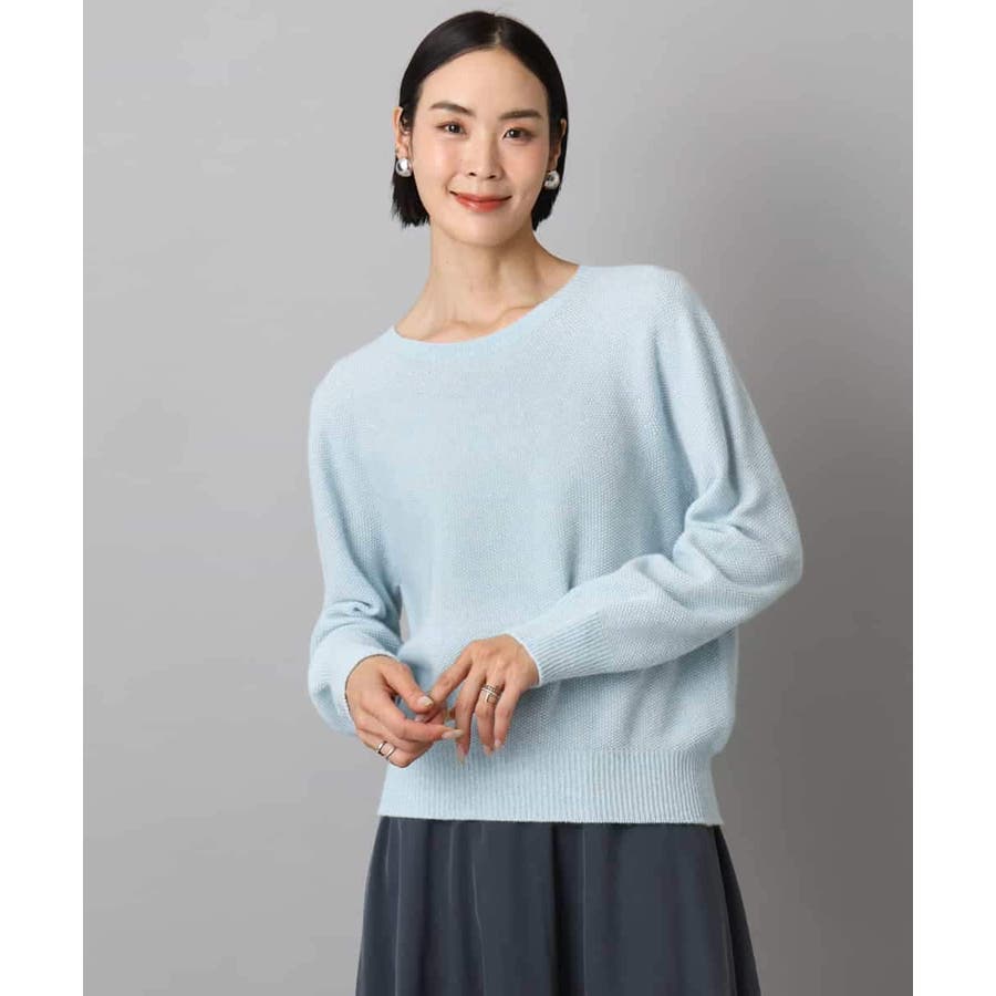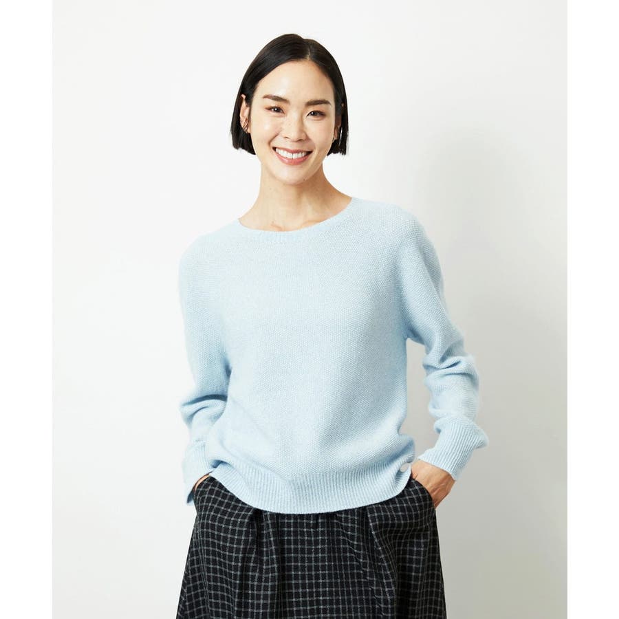カシミヤとアンゴラをブレンドした、ふんわりと軽やかな素材感が魅力のニット。風合いの良さを活かし、カノコ編みで丁寧に仕上げることでクラフト感をプラスしました。繊細なラメ糸がほのかに煌めき、カジュアルながらも上品な表情を演出します。