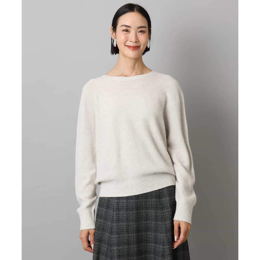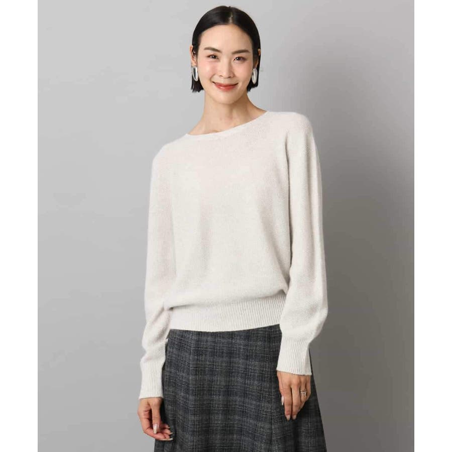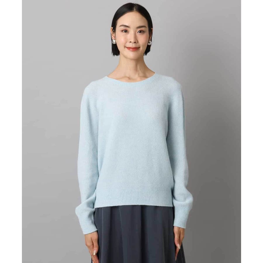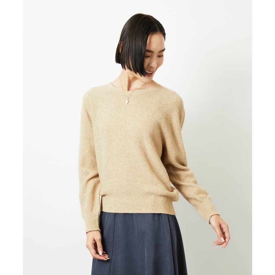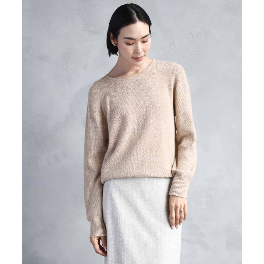 カシミヤとアンゴラをブレンドした、ふんわりと軽やかな素材感が魅力のニット。風合いの良さを活かし、カノコ編みで丁寧に仕上げることでクラフト感をプラスしました。繊細なラメ糸がほのかに煌めき、カジュアルながらも上品な表情を演出します。