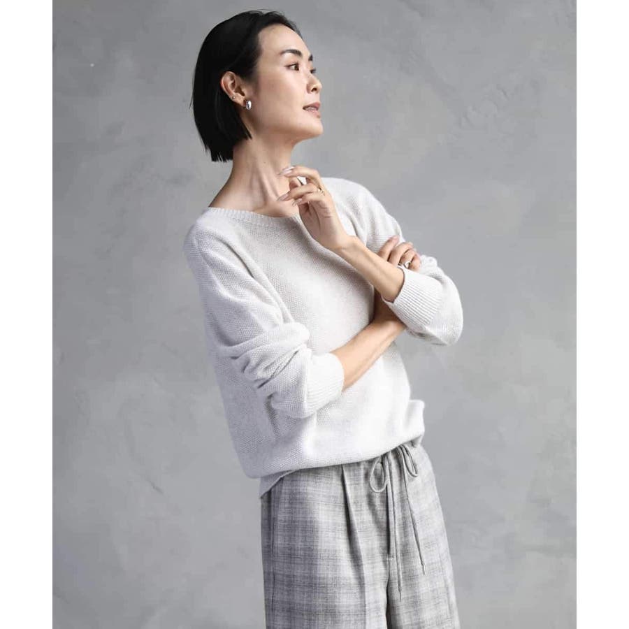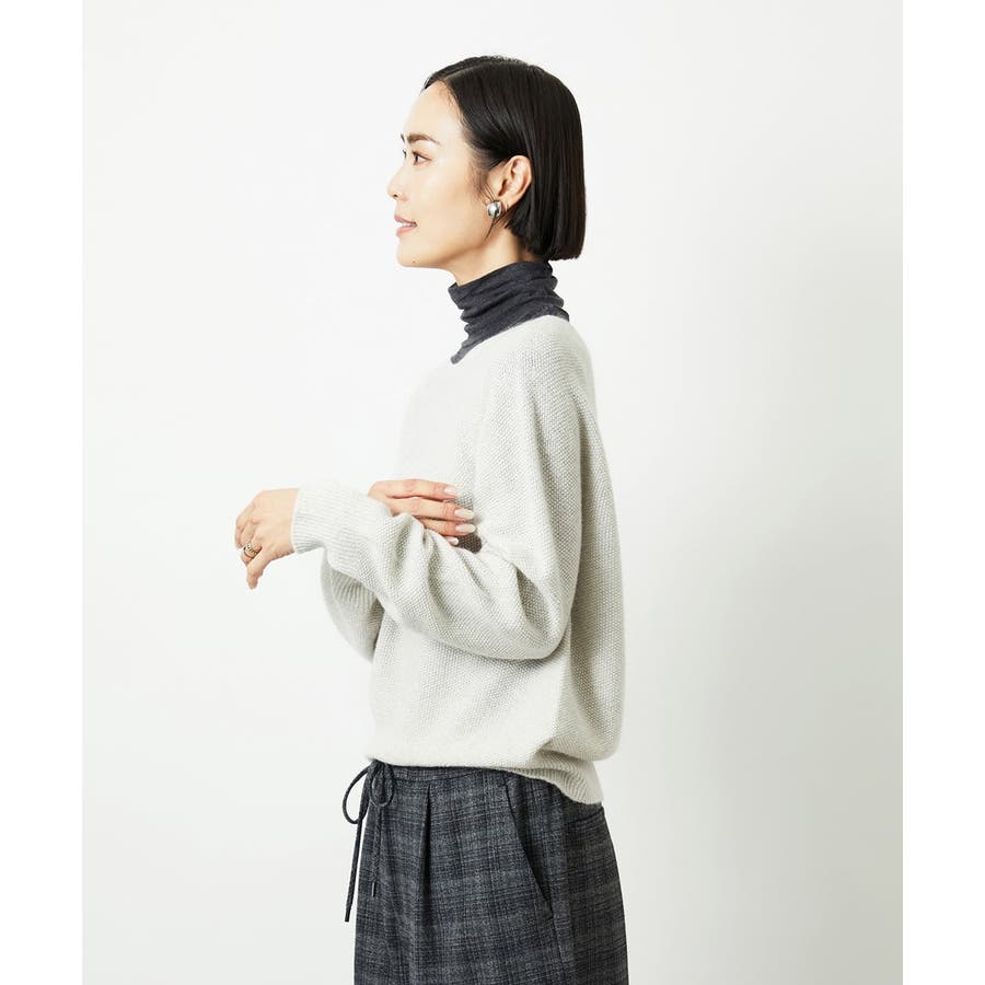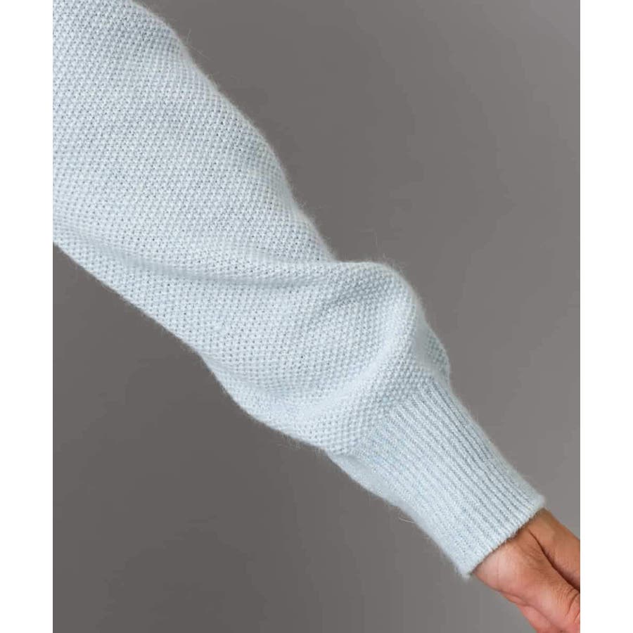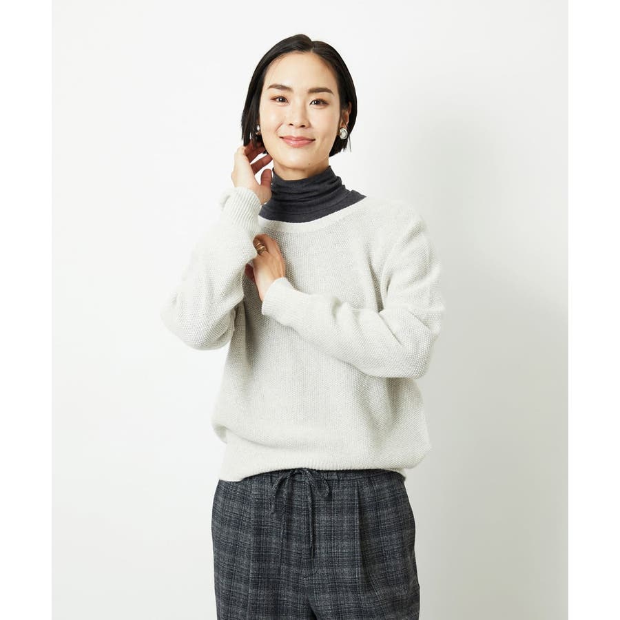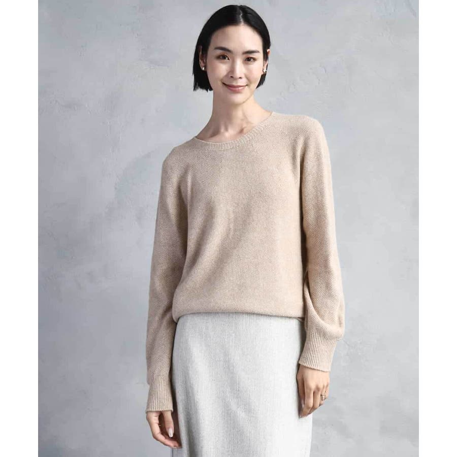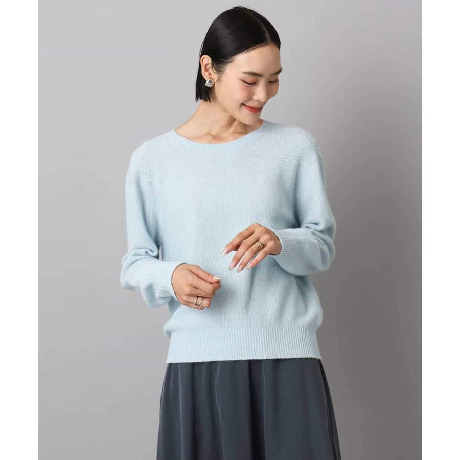 カシミヤとアンゴラをブレンドした、ふんわりと軽やかな素材感が魅力のニット。風合いの良さを活かし、カノコ編みで丁寧に仕上げることでクラフト感をプラスしました。繊細なラメ糸がほのかに煌めき、カジュアルながらも上品な表情を演出します。