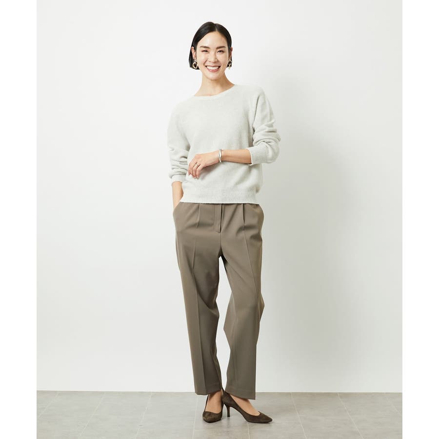 裾のリブで自然にブラウジングができるため、パンツやスカートなどどんなボトムスとも合わせやすく、着回ししやすい一枚。大人の上品なスタイリングにおすすめです。