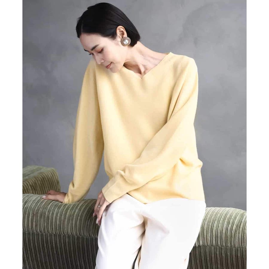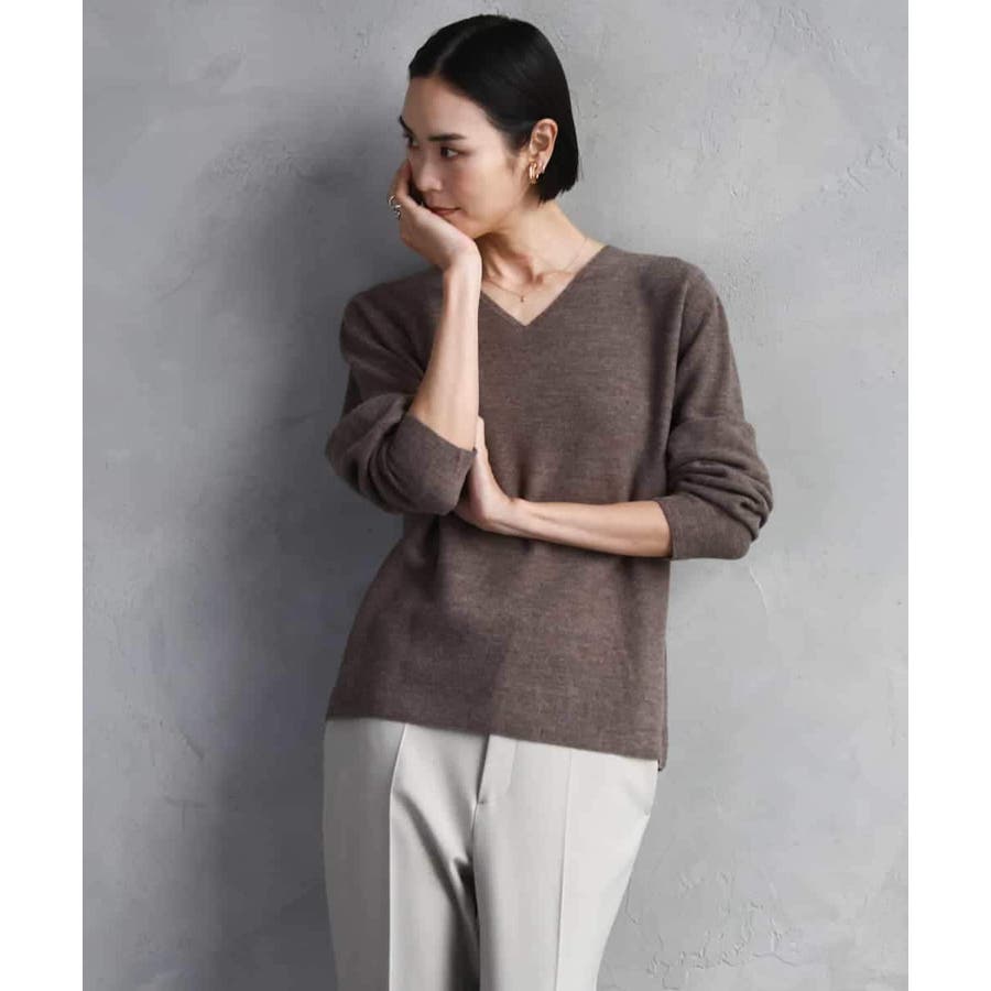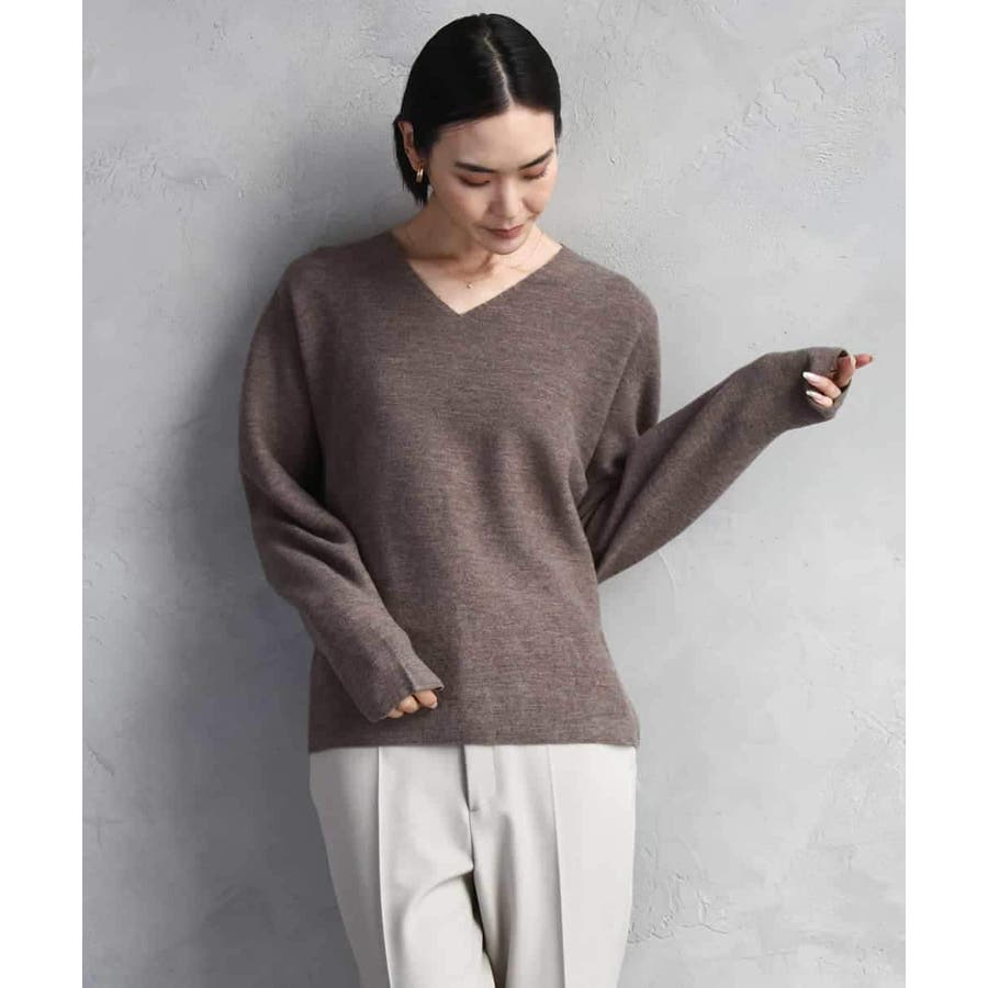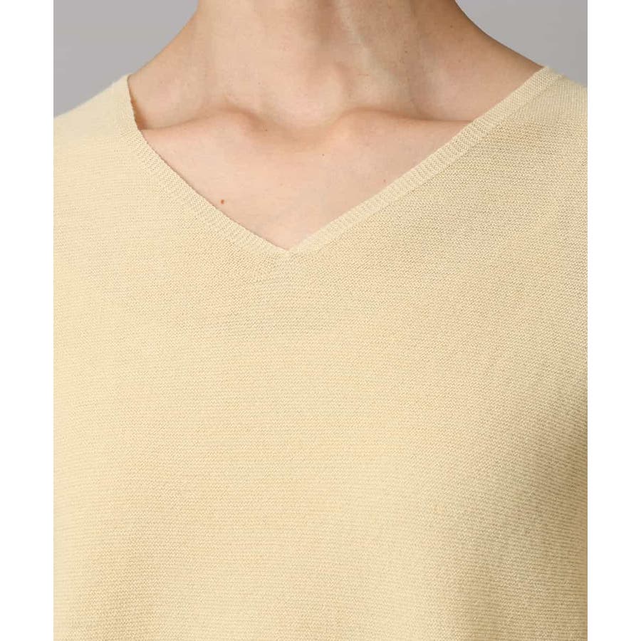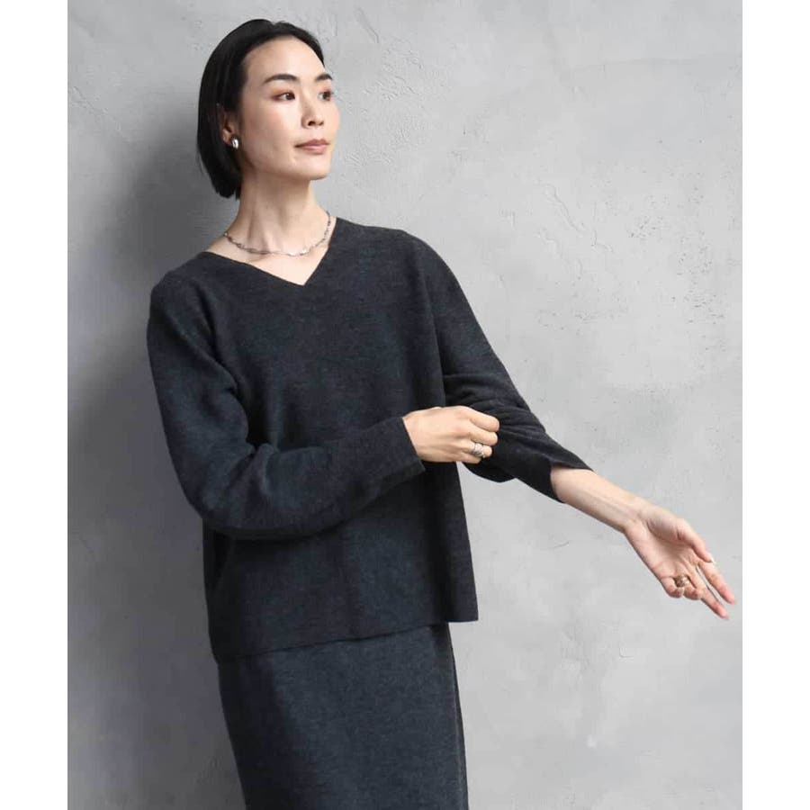 顔周りをすっきり見せるVネックデザインのニット。ゆるやかなドロップショルダーと程よいゆとりのあるシルエットが、抜け感のあるリラックススタイルを叶えます。40サイズは限定店舗展開です。