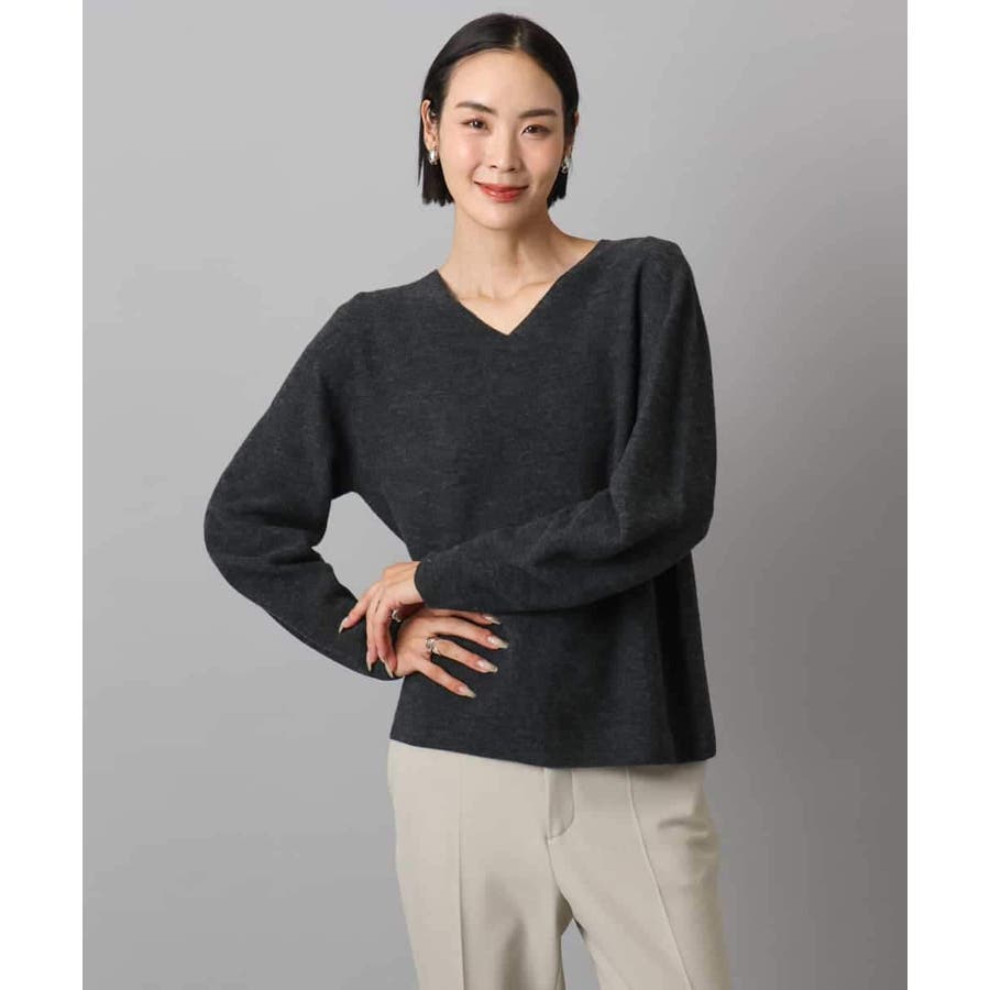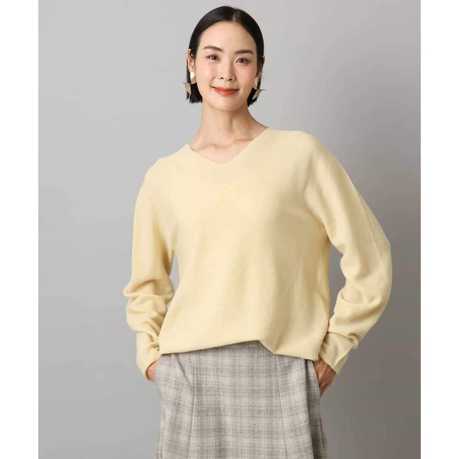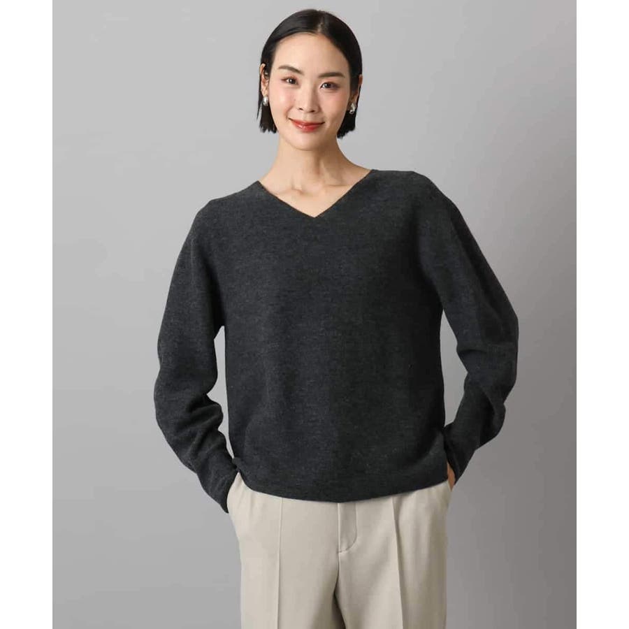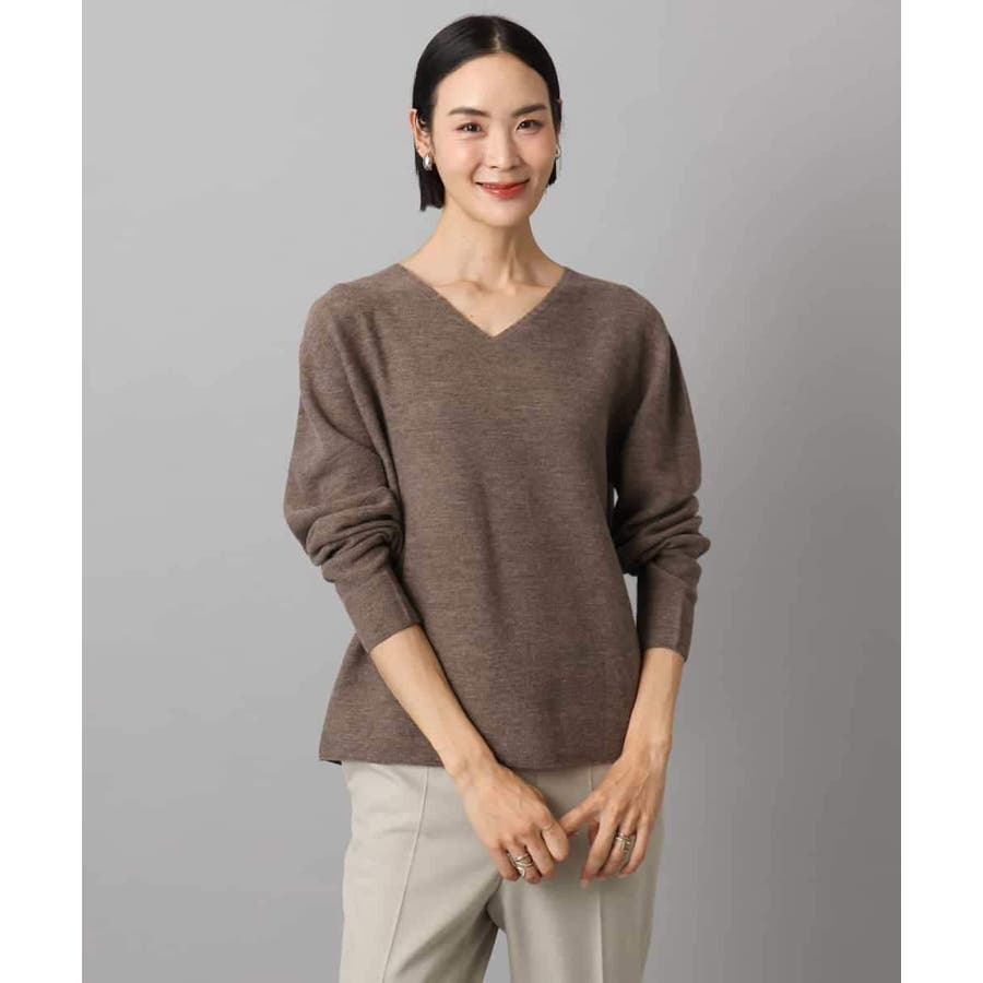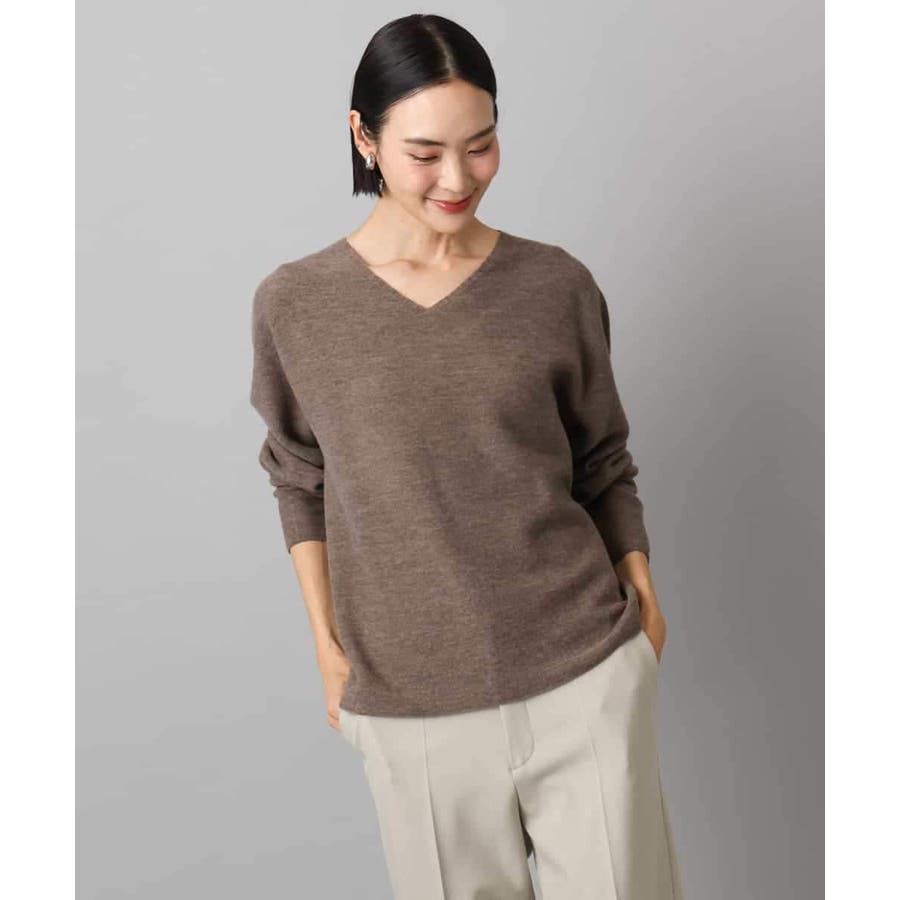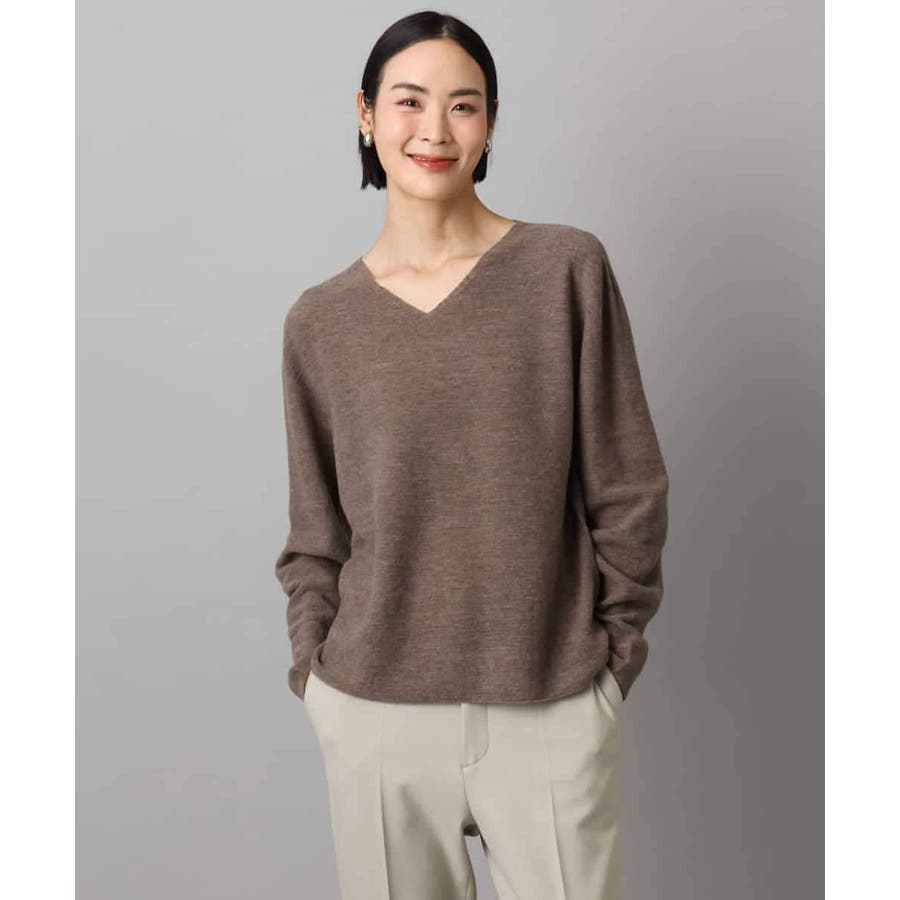 顔周りをすっきり見せるVネックデザインのニット。ゆるやかなドロップショルダーと程よいゆとりのあるシルエットが、抜け感のあるリラックススタイルを叶えます。40サイズは限定店舗展開です。