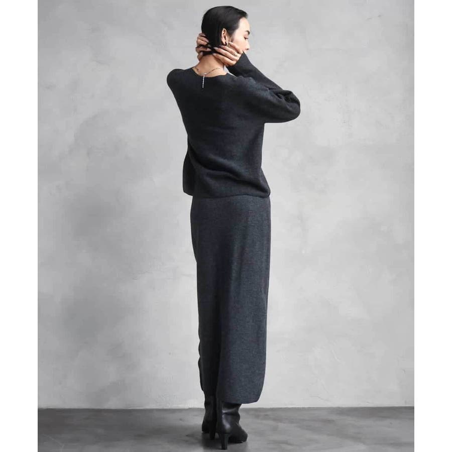 同素材のニットナロースカート[FMHBD34200]とのセットアップで統一感のあるコーディネートが完成し、単品でもシンプルなデザインで、パンツやスカートなどさまざまなボトムと合わせやすく、着回しの幅が広がります。シーンや気分に合わせて多彩なスタイリングをお楽しみいただけます。