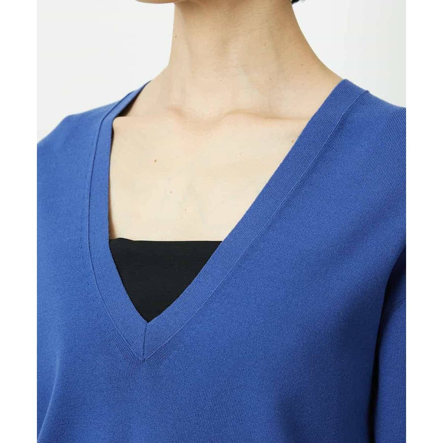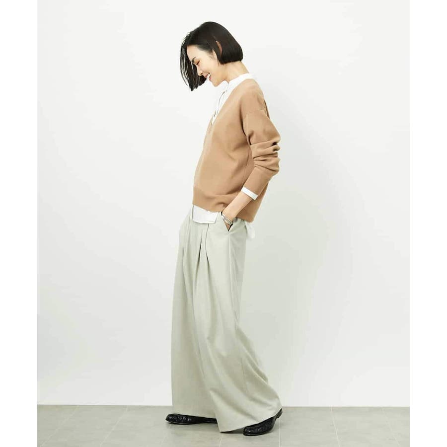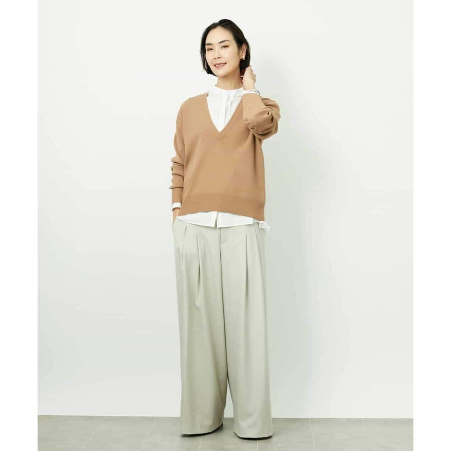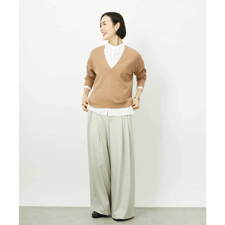 深めに開いたVネックが特徴で、インナーとのレイヤードを楽しめるデザインニット。Tシャツやカットソー、シャツなど、合わせるインナー次第で表情が変わります。カラーや素材の組み合わせを楽しみながら、自分らしい着こなしが叶う一枚です。40サイズは限定店舗展開です。
