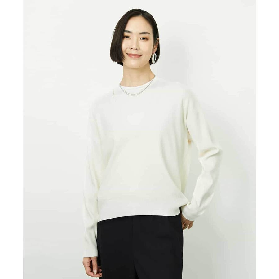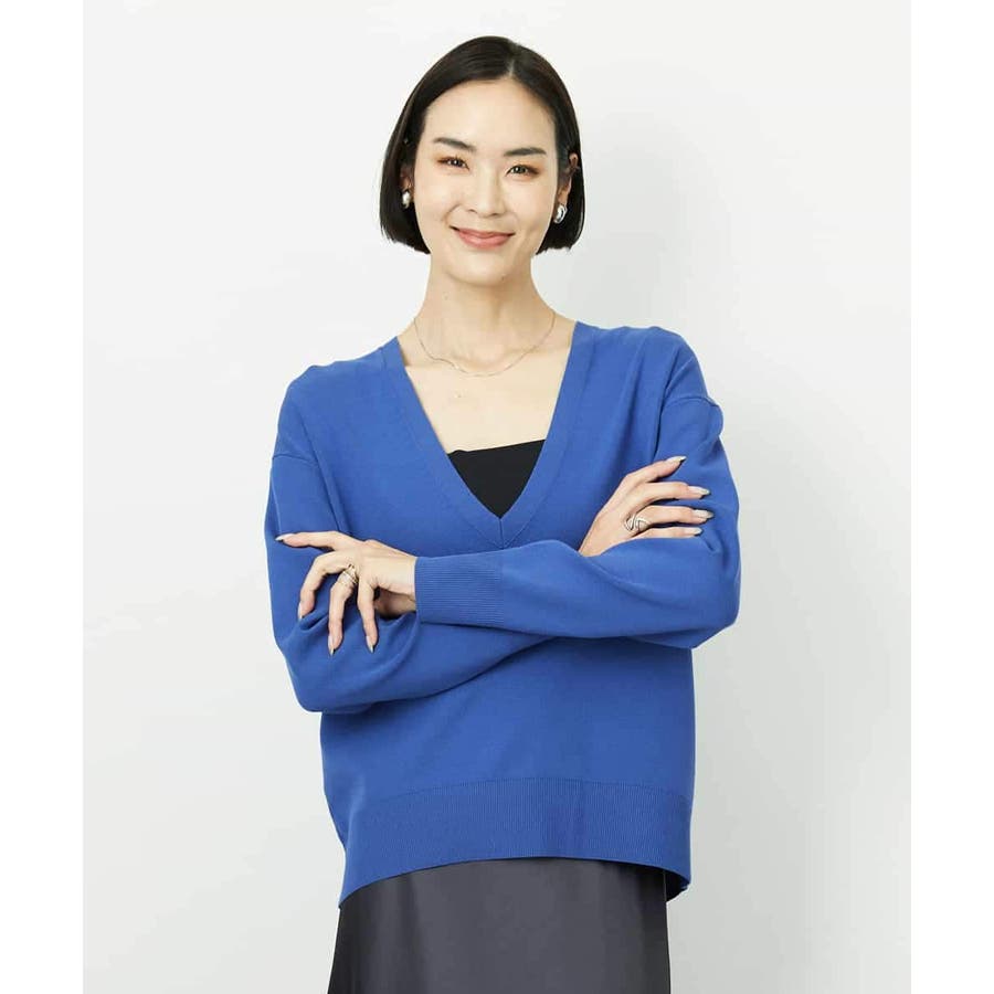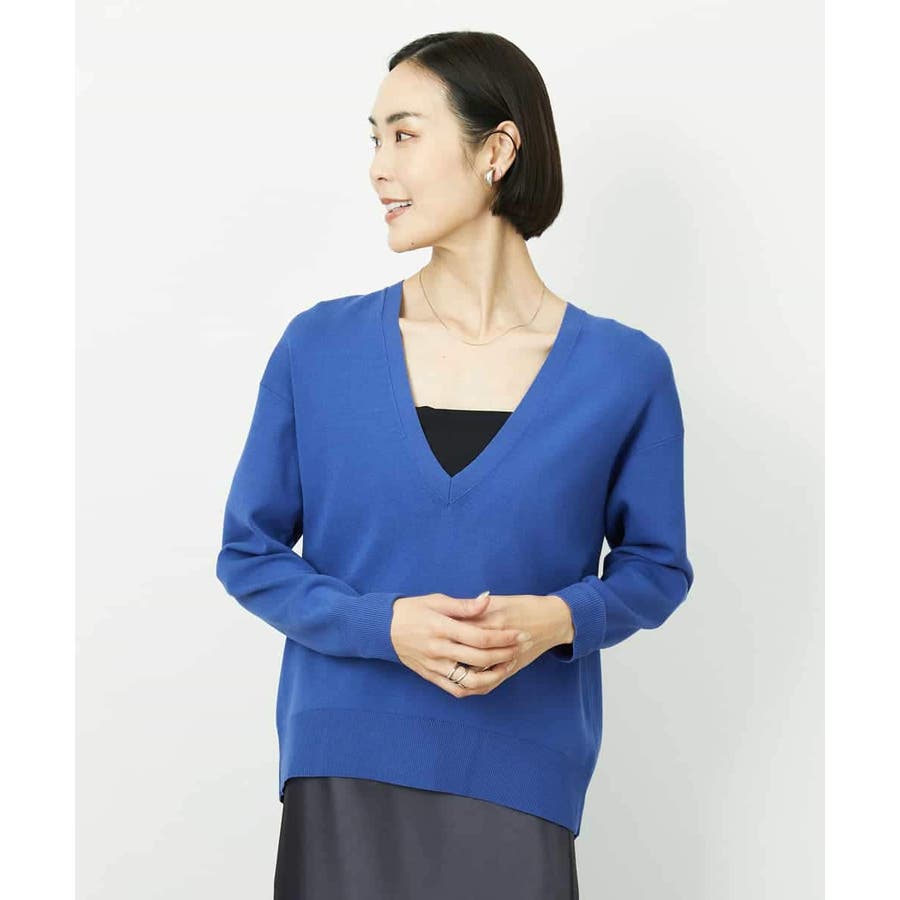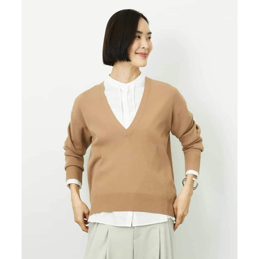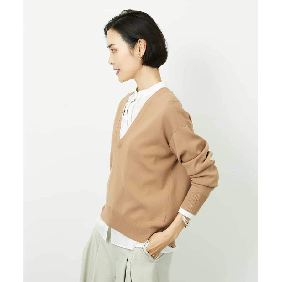 深めのVネックがデコルテをすっきりと見せ、抜け感のある着こなしを叶えるニット。シンプルながら女性らしさのあるデザインで、インナー次第できれいめにもカジュアルにも着用いただけます。パンツにもスカートにも合わせやすく、幅広いスタイリングに活躍する一枚です。 ※同素材を使用したカーディガンをご用意しております。 コンパクトクルーネックカーディガン[FMSDD13230]