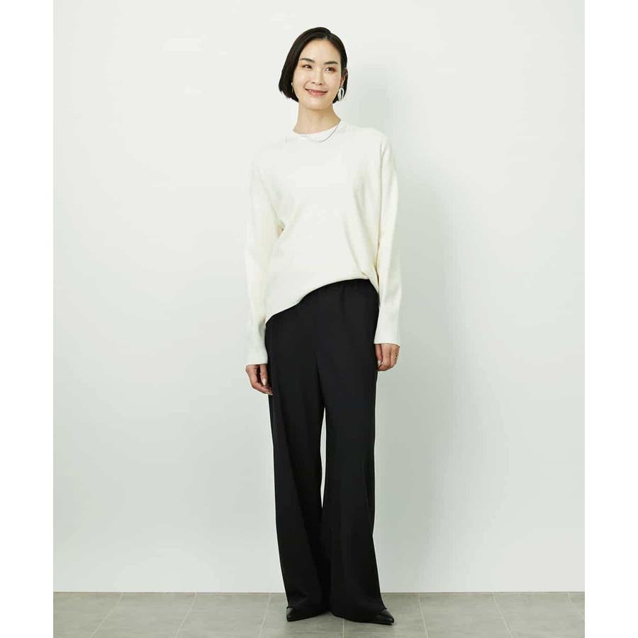 レーヨン素材にストレッチ性のあるポリエステルを混紡した、細番手のきれいめ素材。なめらかで肌触りが良く、肌寒い時期からロングシーズン快適に着用可能。上品な表面感と発色の良さが魅力で、コーディネートに映える美しいカラーをお楽しみいただけます。