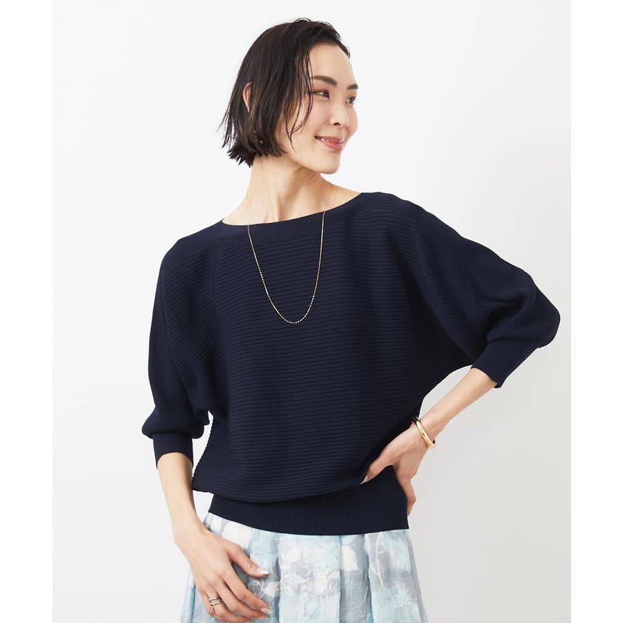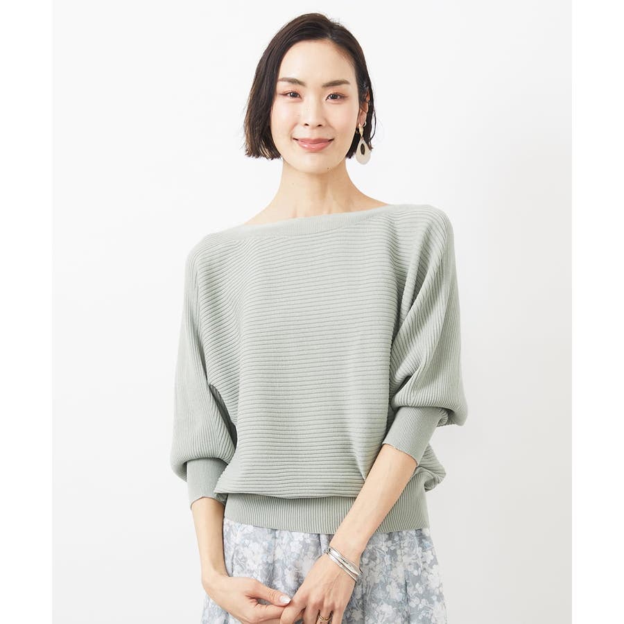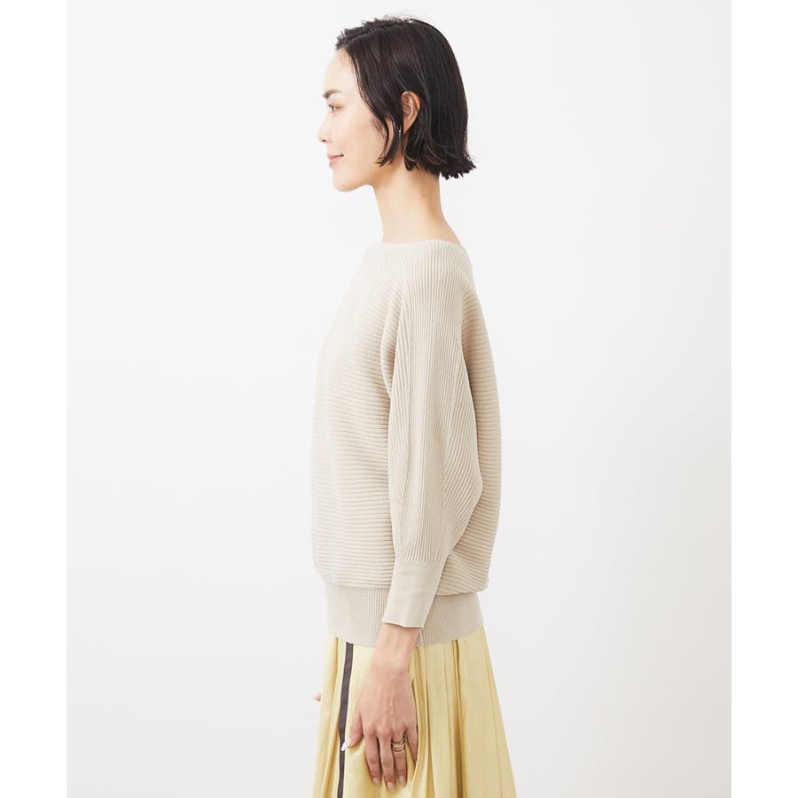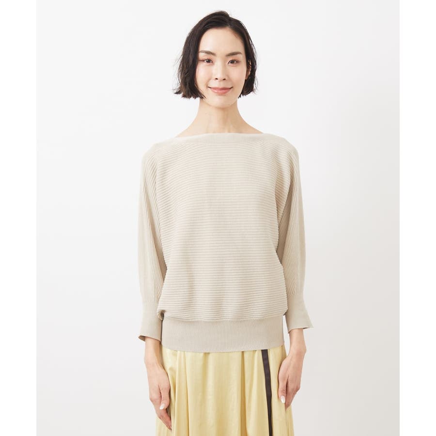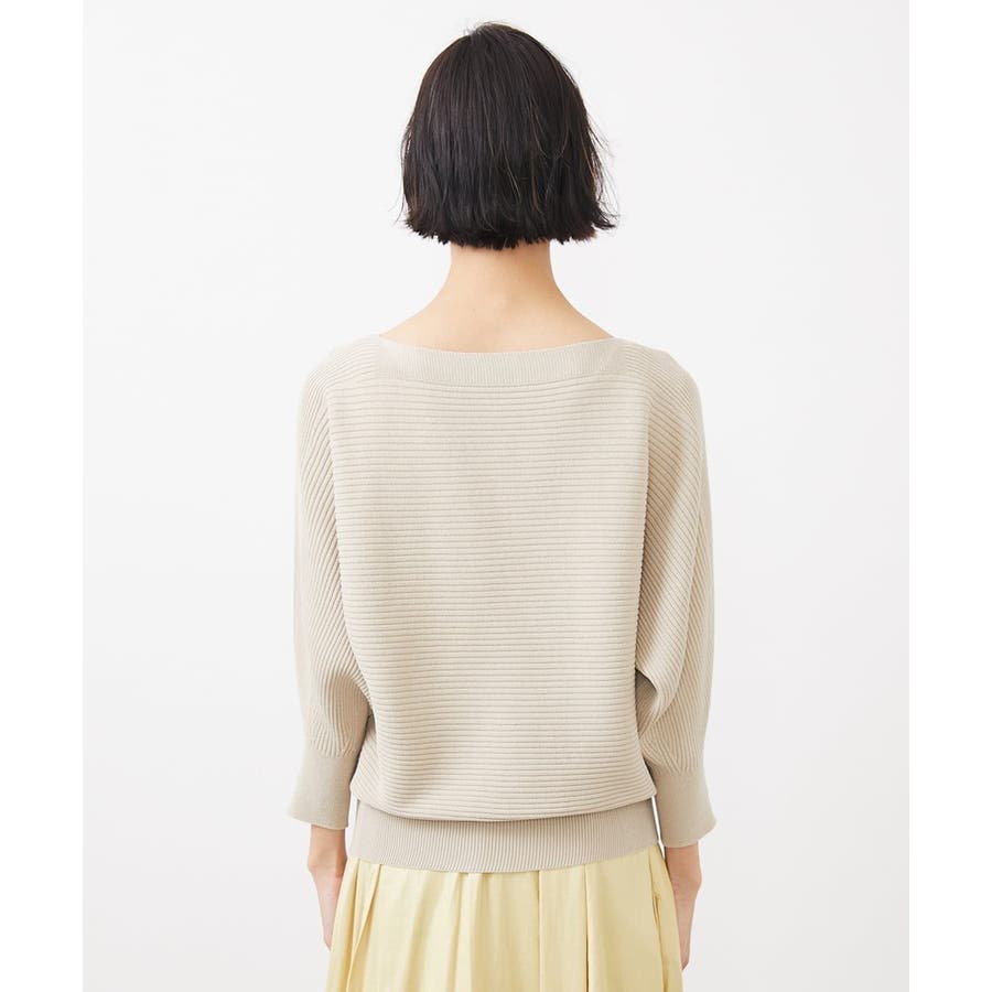 シンプルなリブデザインでコーディネートに取り入れやすく、 ボートネックの開きで抜け感が出て首や顔周りをスッキリと二の腕も気にならずに。