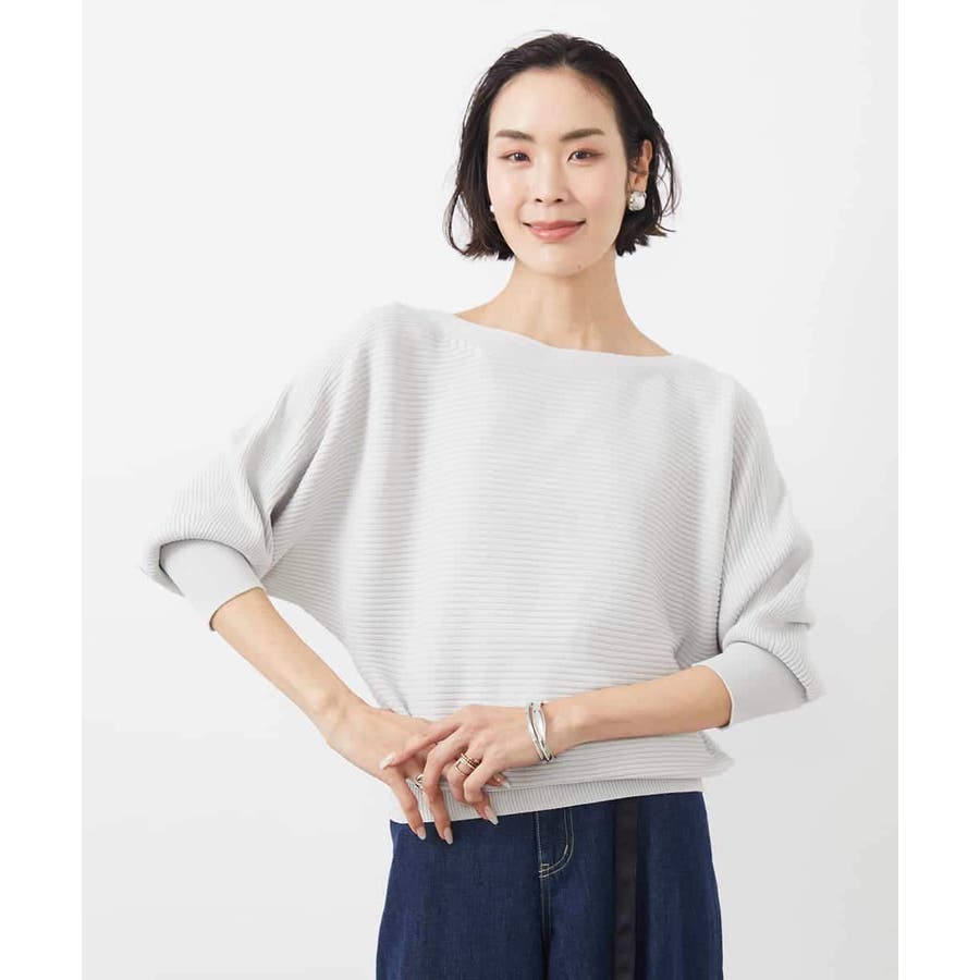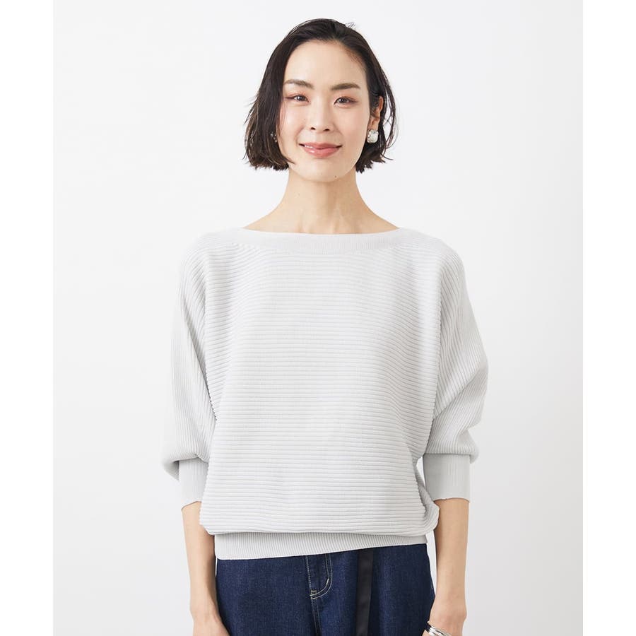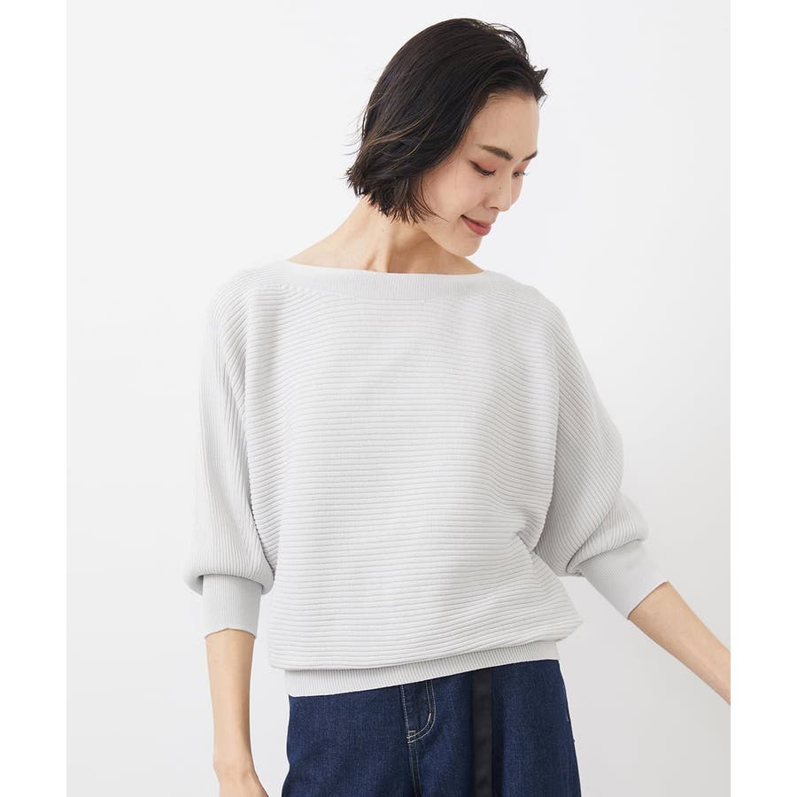 リブの横使いのボートネックのドルマンスリーブプルオーバー。袖口と裾のリブで着るだけでシルエットがサマになるデザインです。40サイズは店舗限定展開です。ライトグレーはWEB限定カラーです。