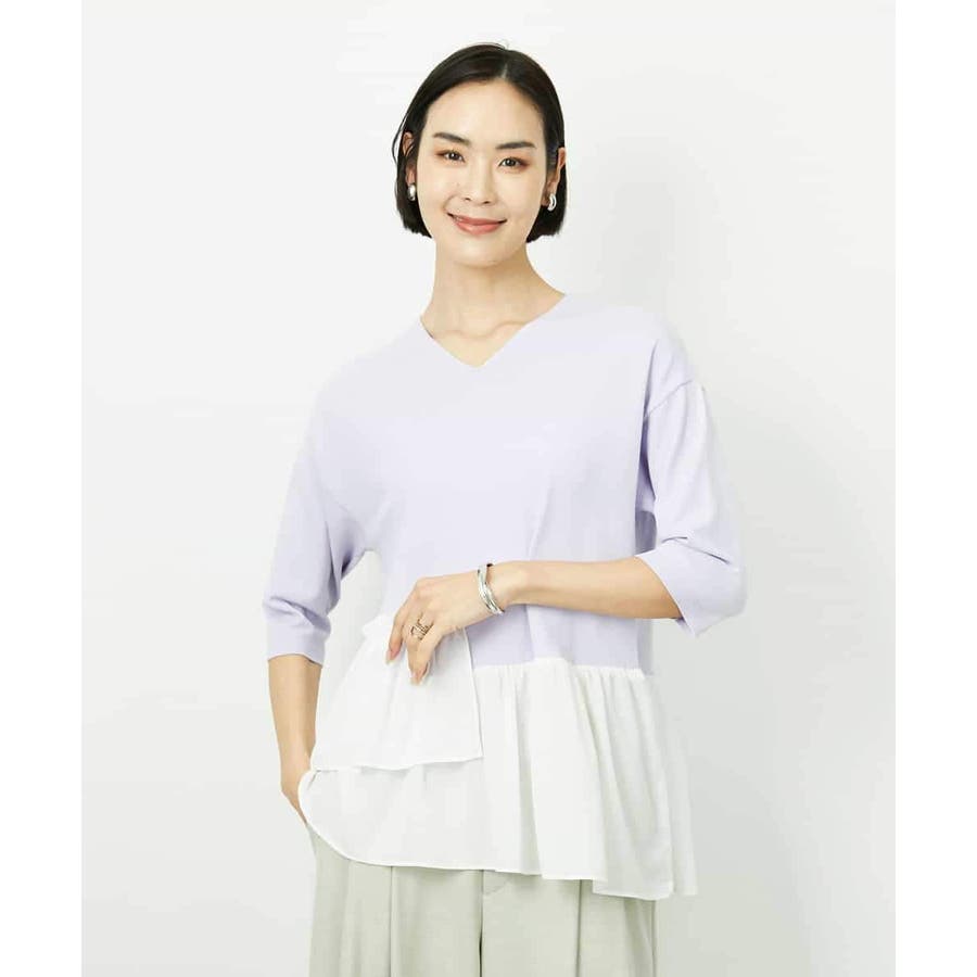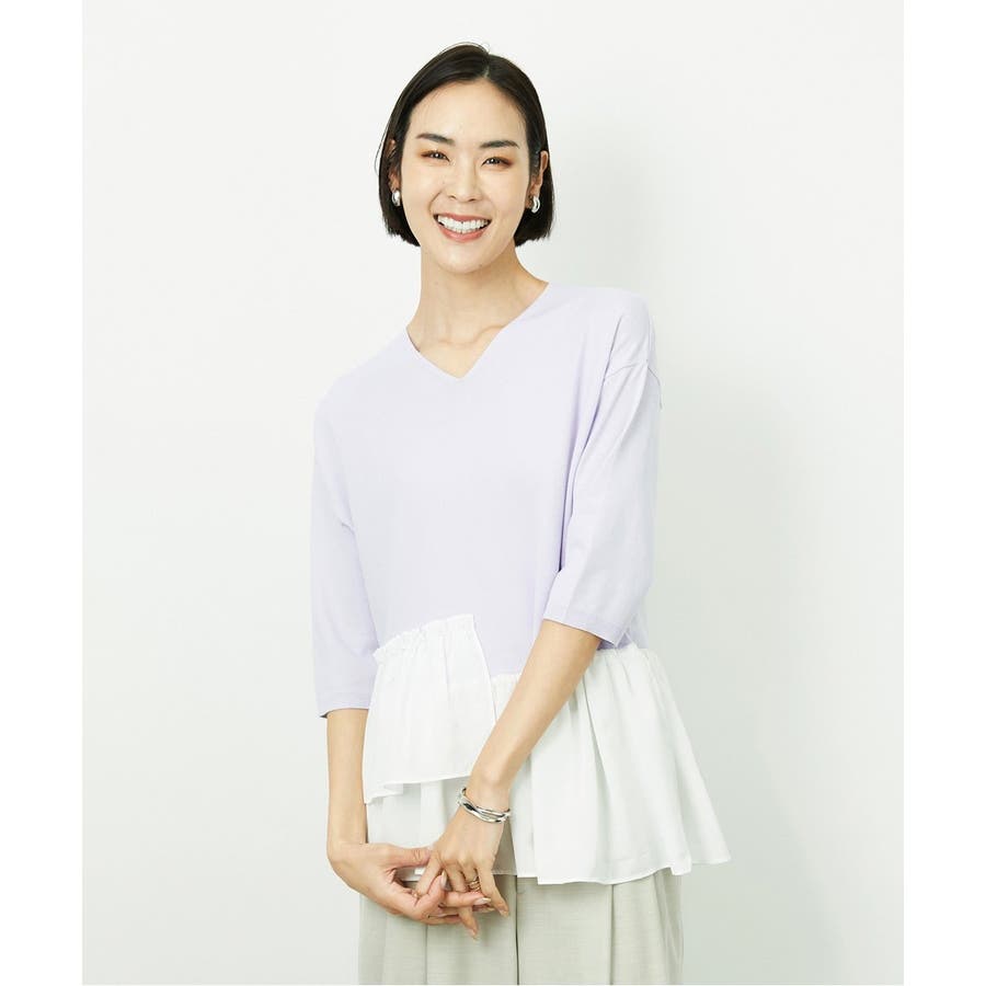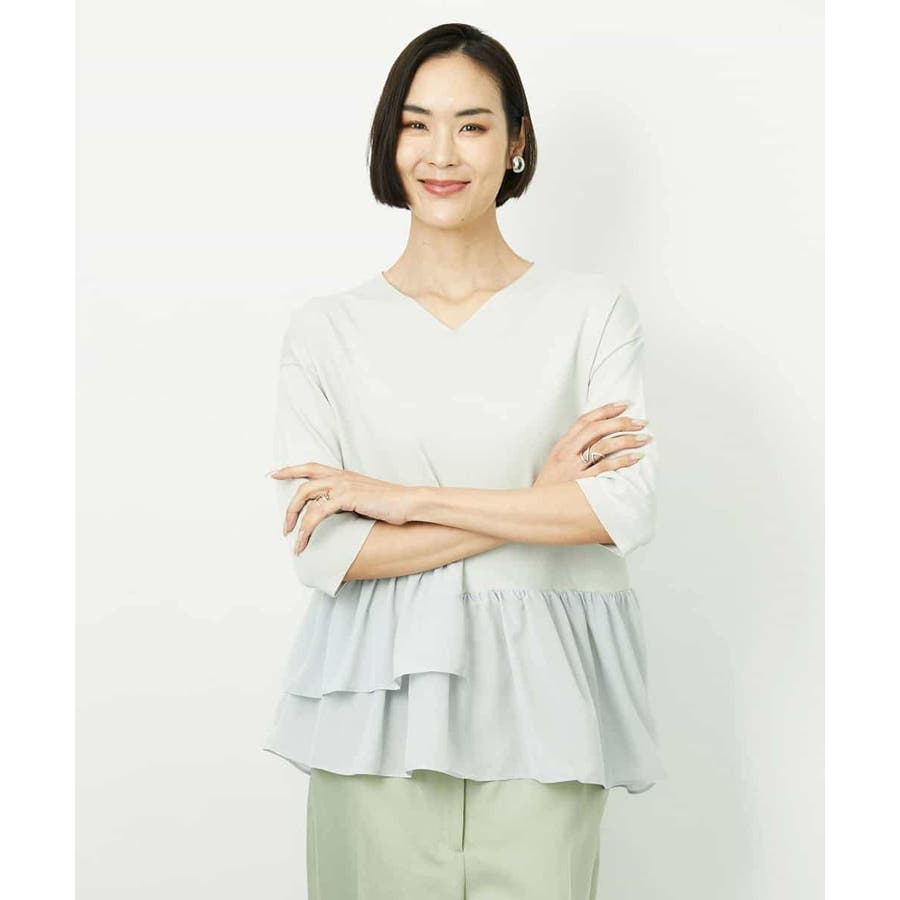 長めのレングスでヒップラインをさりげなくカバーし、アシンメトリーなティアードフリルが軽やかな印象を演出。 デコルテラインを美しく見せる、女性らしいVネックデザインです。40サイズは限定店舗展開です。