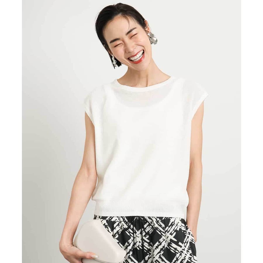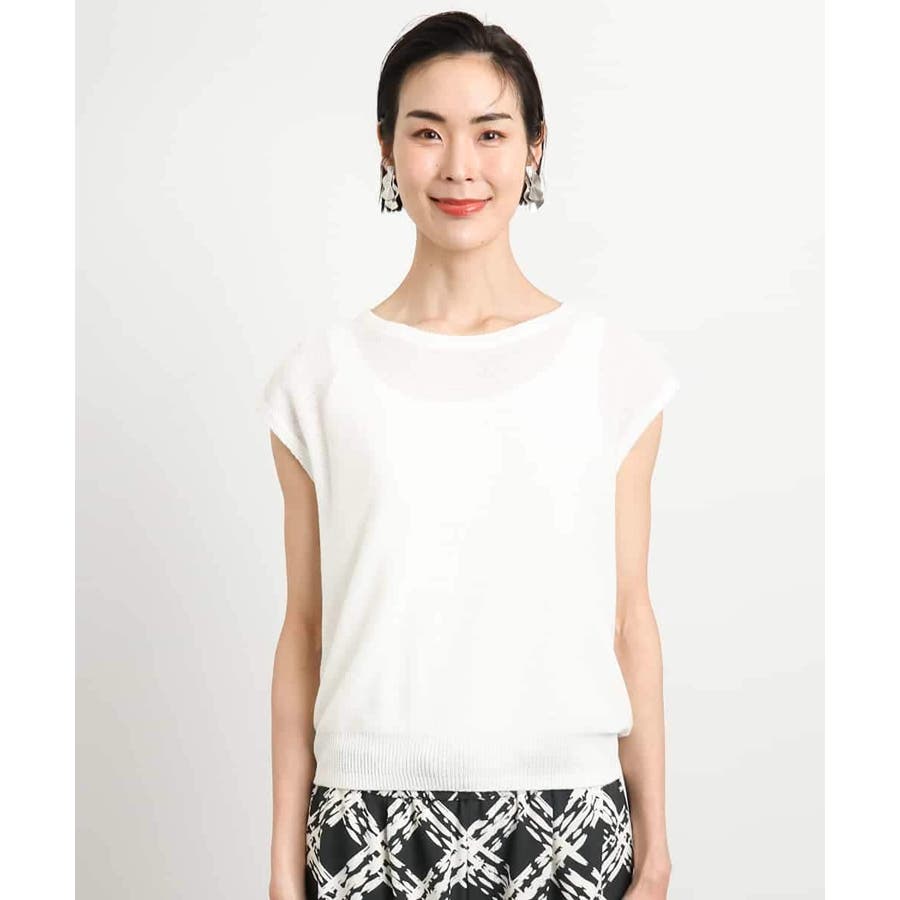 フレンチスリーブニットが華やかなプルオーバー。ややシアー感のある編地なので、爽やかさを演出してくれる一枚です。40サイズは限定店舗展開です。