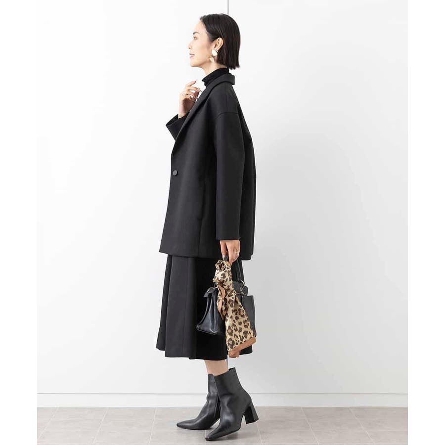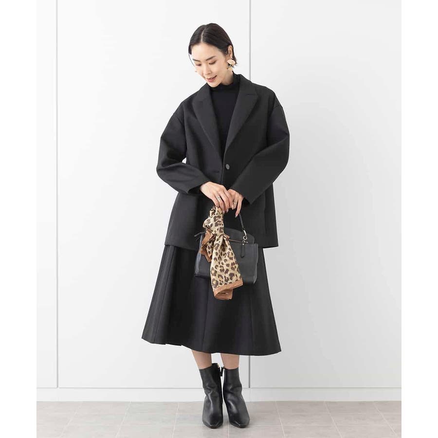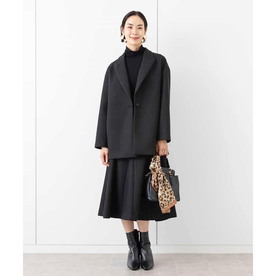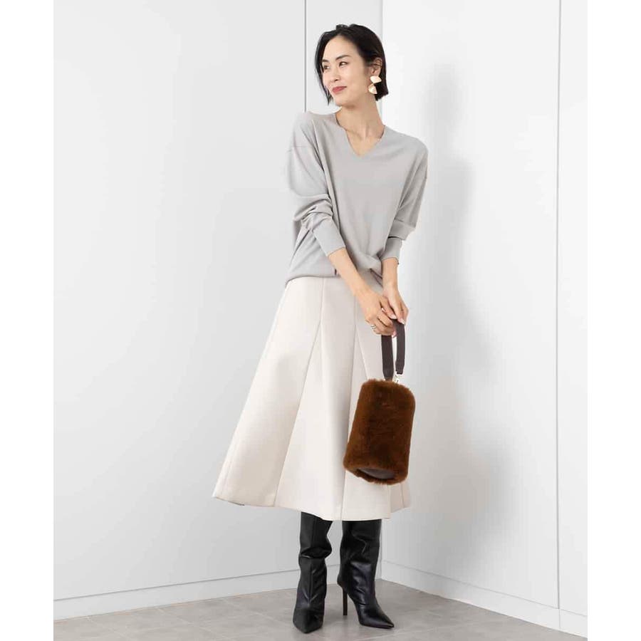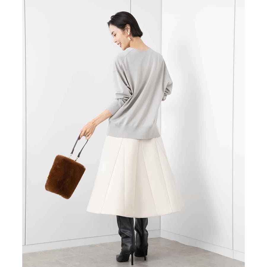 ハリを活かした適度なボリューム感とシルエットがモードな雰囲気を感じさせるデザインスカート。合わせやすいミドル丈で見た目に反して軽く、合繊なのでウールほど暑さを感じさせません。形はシンプル、素材を進化させることで立体的なフォルムに仕上げるのがポイント。40サイズは限定店舗展開です。