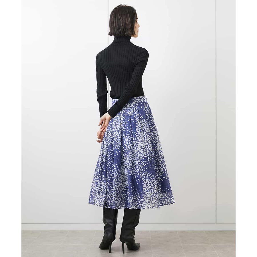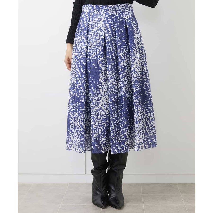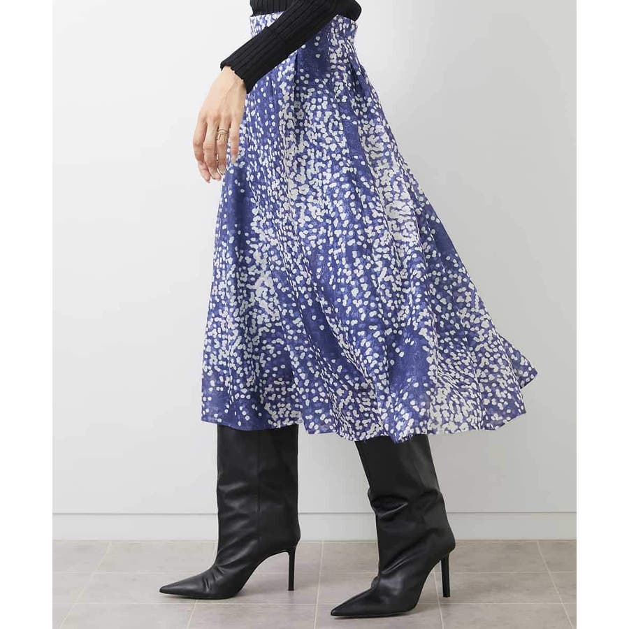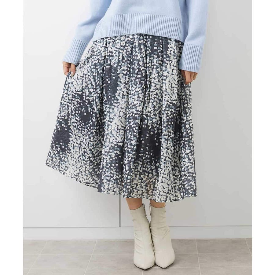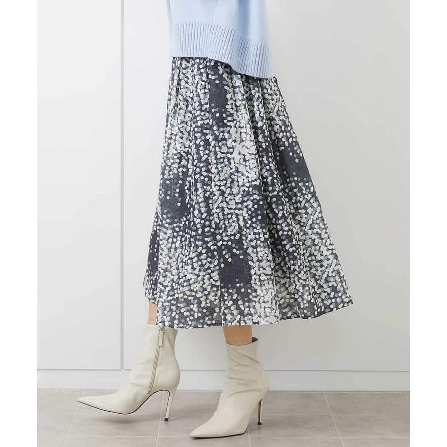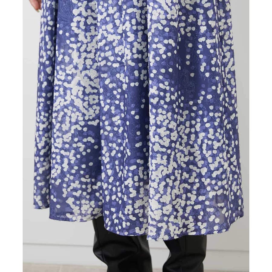 部分的にシアー感があり、ランダムに散りばめられたドット柄が上品な印象のフレアスカート。