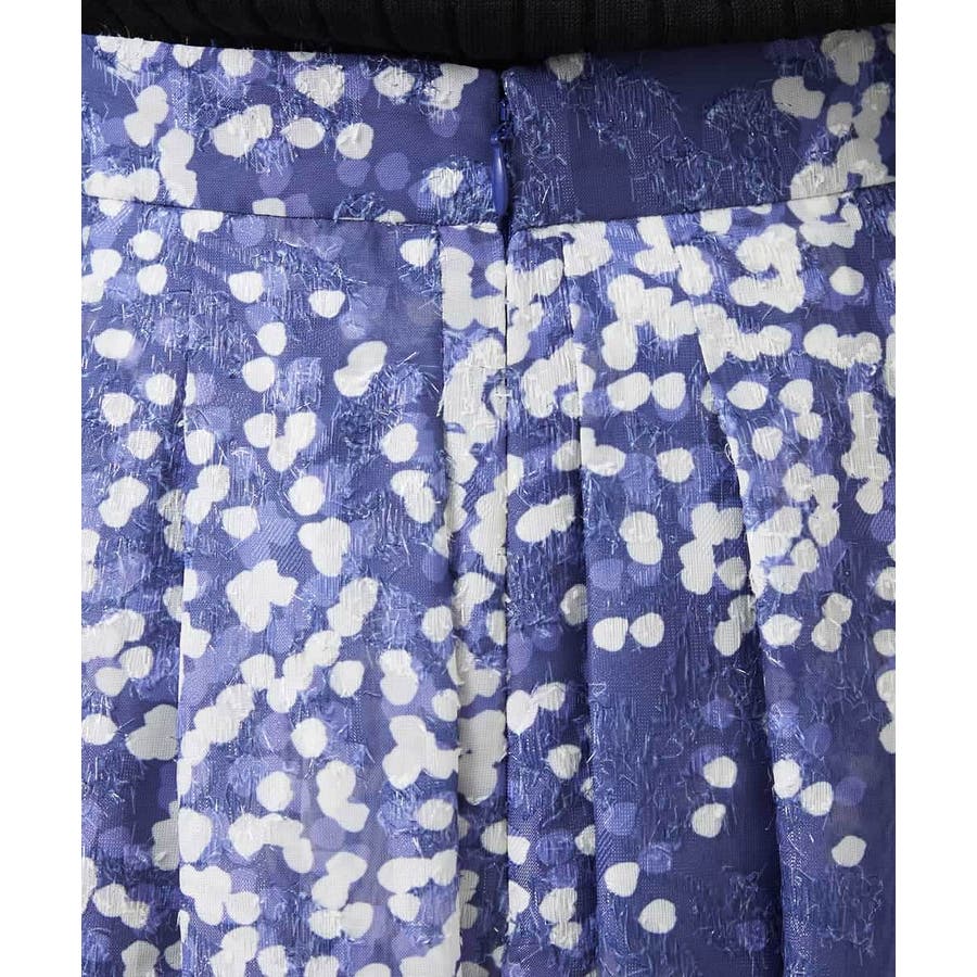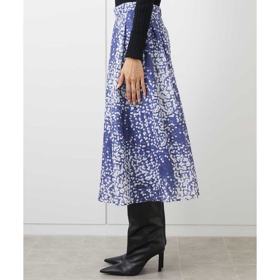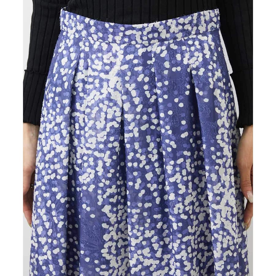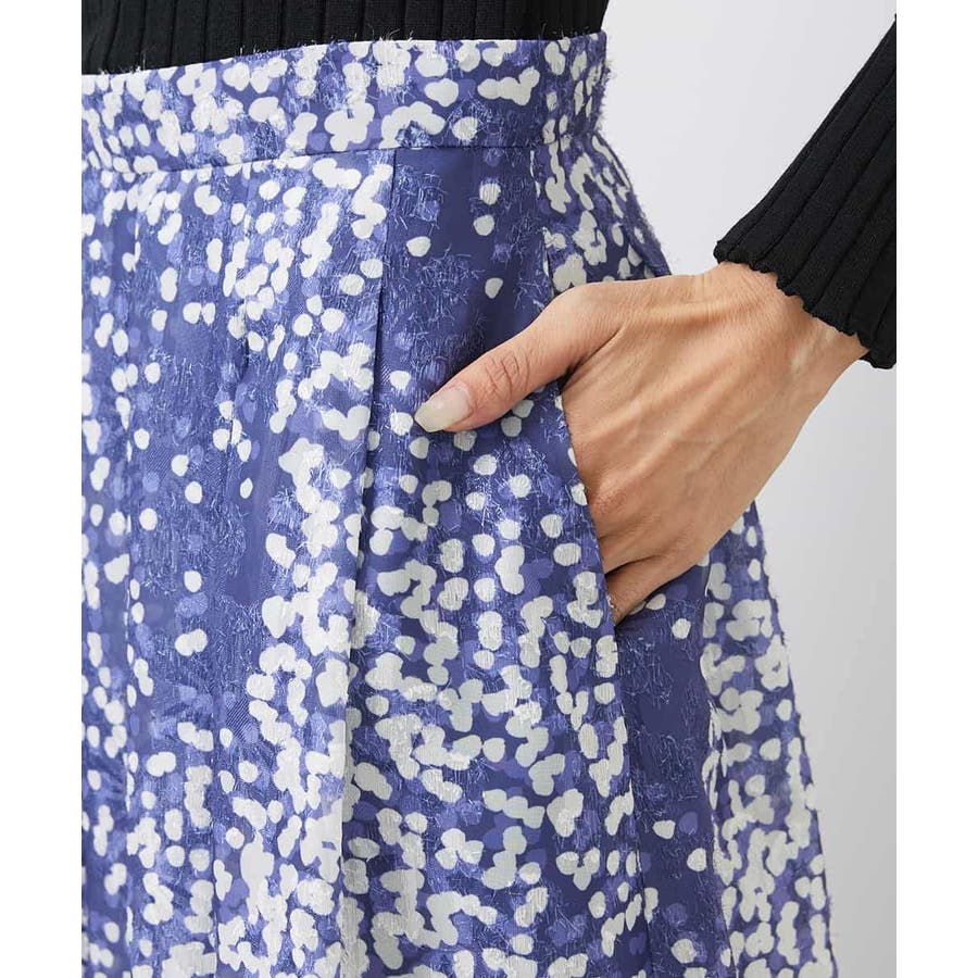 オリジナルプリントのドット柄フレアスカート、特徴的で上品なジャガード素材のドット柄が大人な華やかな装いに◎