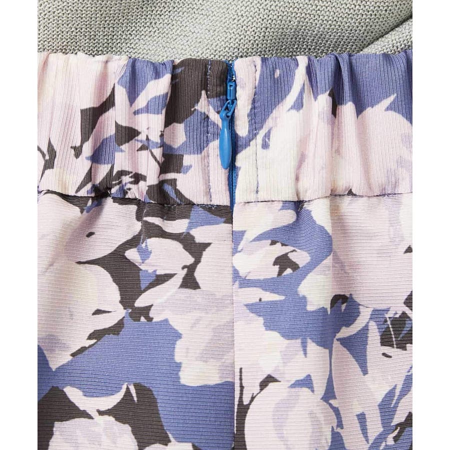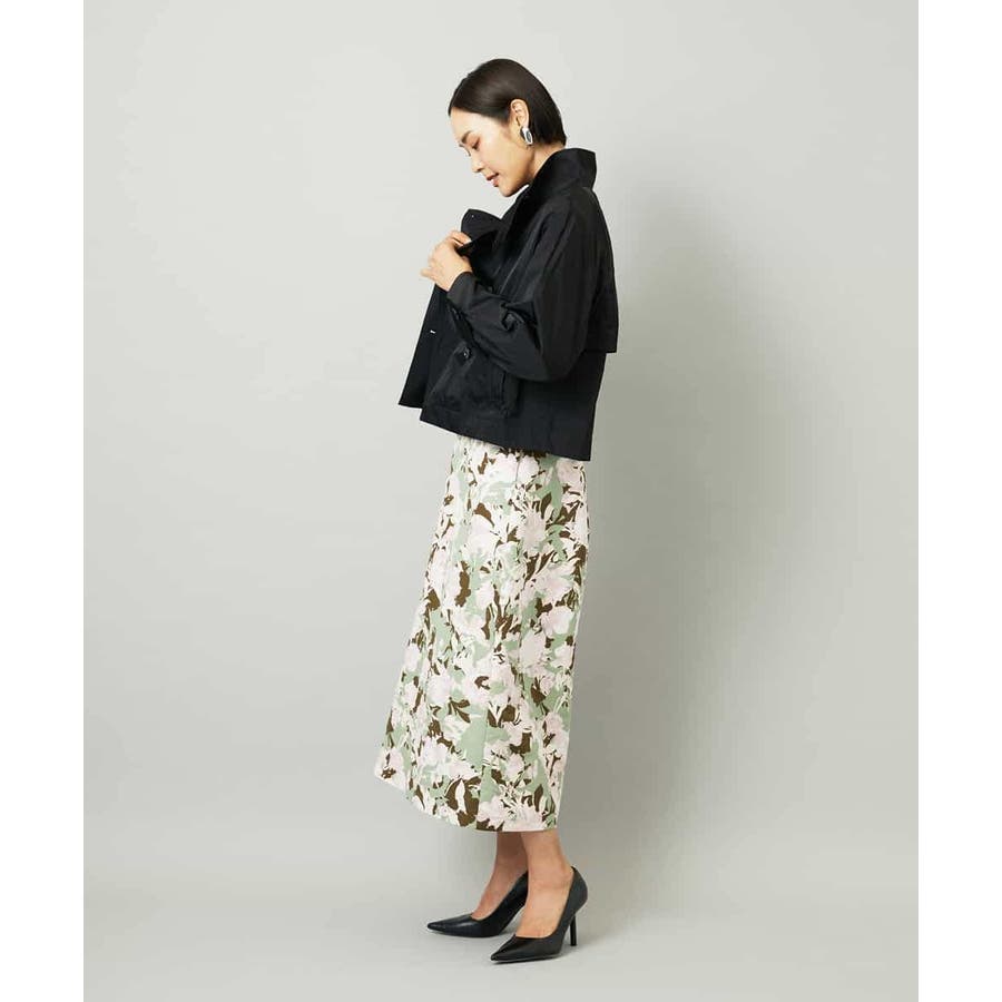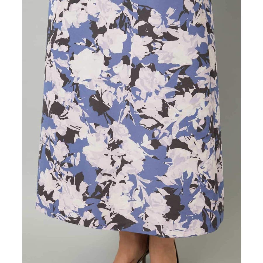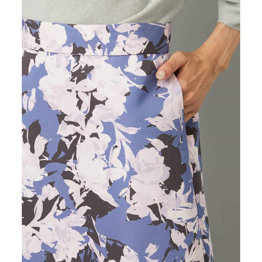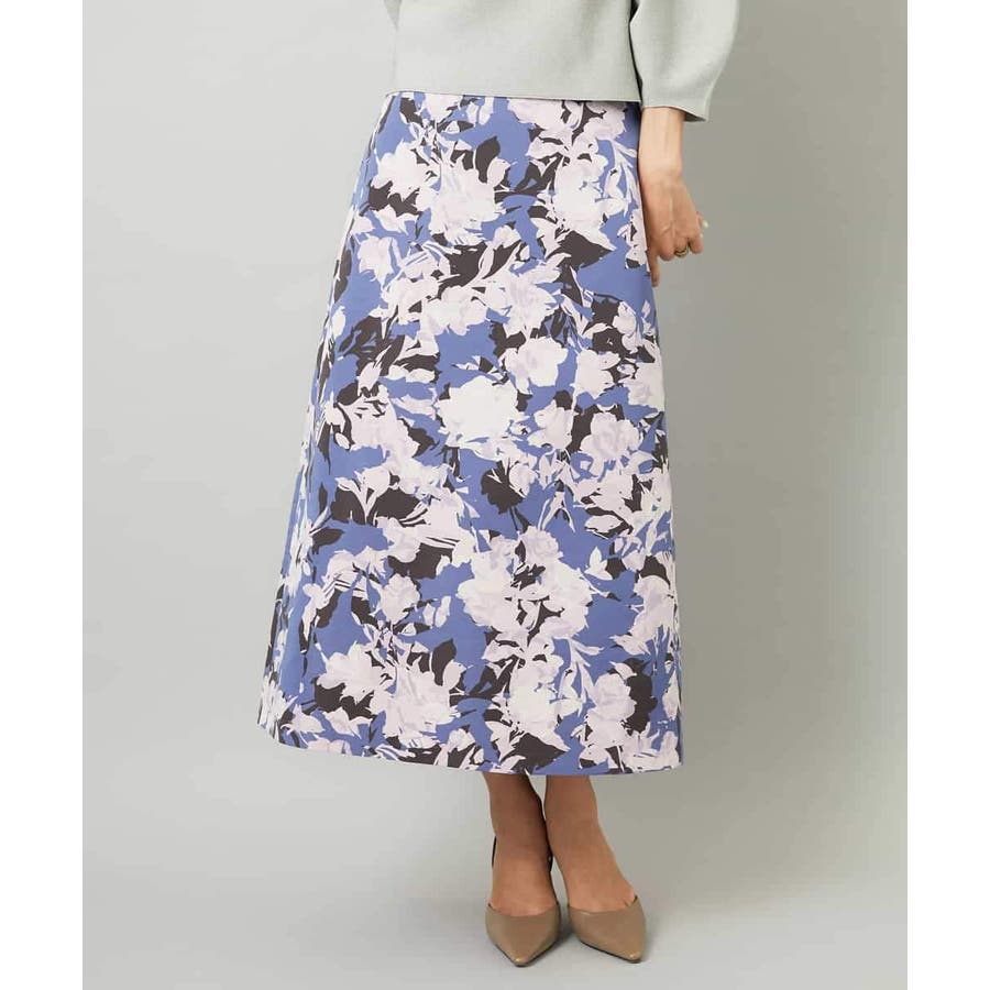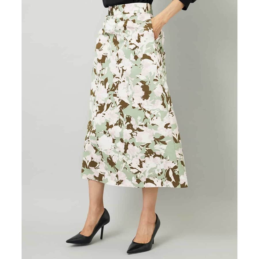 落ち着いたトーンのニットと合わせれば、華やかなプリントが引き立ち、日常にも取り入れやすいスタイルに。ブラウスを合わせて上品にまとめれば、お出かけシーンにも活躍します。足元はフラットシューズで軽やかに、ヒールでエレガントにと、シーンに合わせた着こなしを楽しめる一枚です。