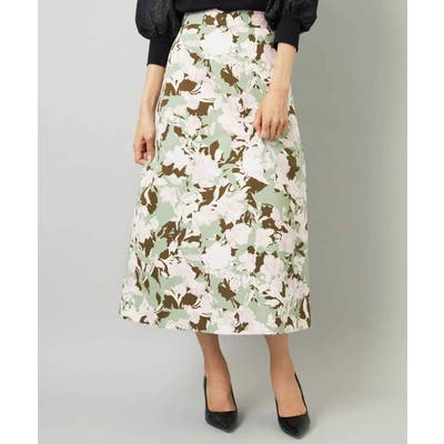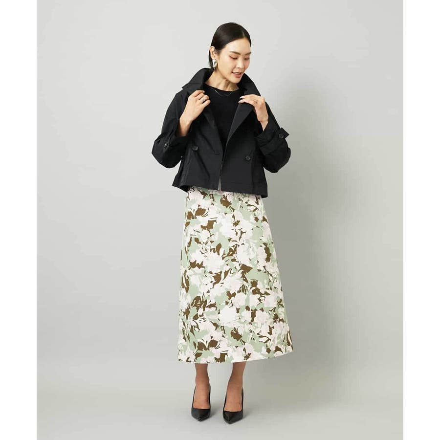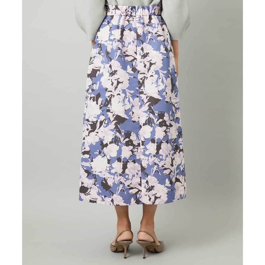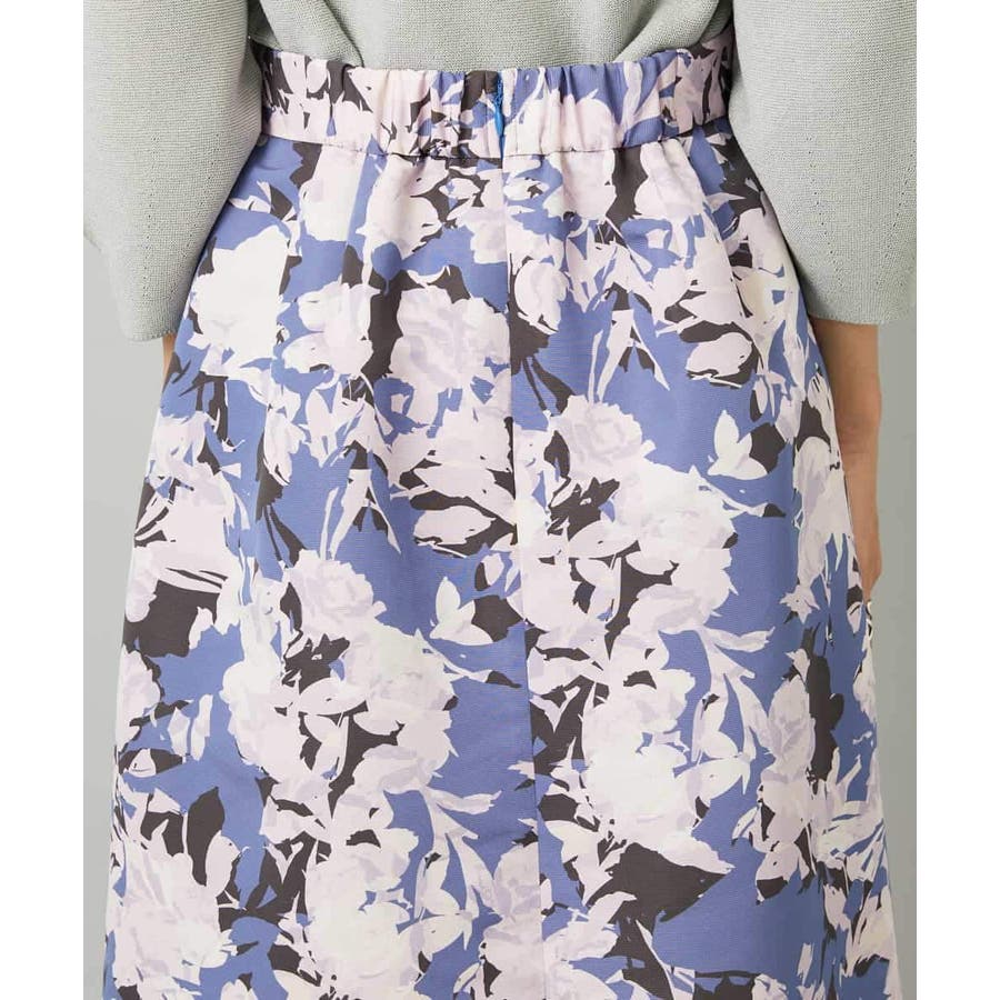 大胆な構図の華やかなプリントスカート。素材のはり感を活かし、ストレート寄りのAラインシルエットに仕上げました。後ろウエストはゴムギャザー仕様で、快適な着心地です。落ち着いたトーンのオータムカラーのニットと合わせれば、日常でも取り入れやすく、プリントの魅力が引き立ちます。36・40サイズは限定店舗展開です。