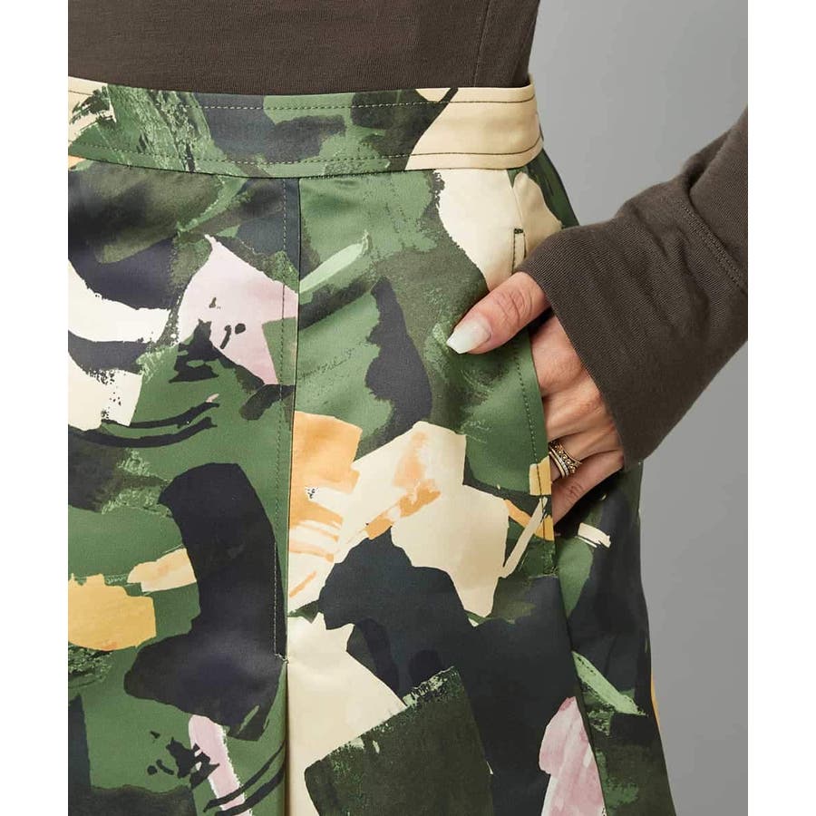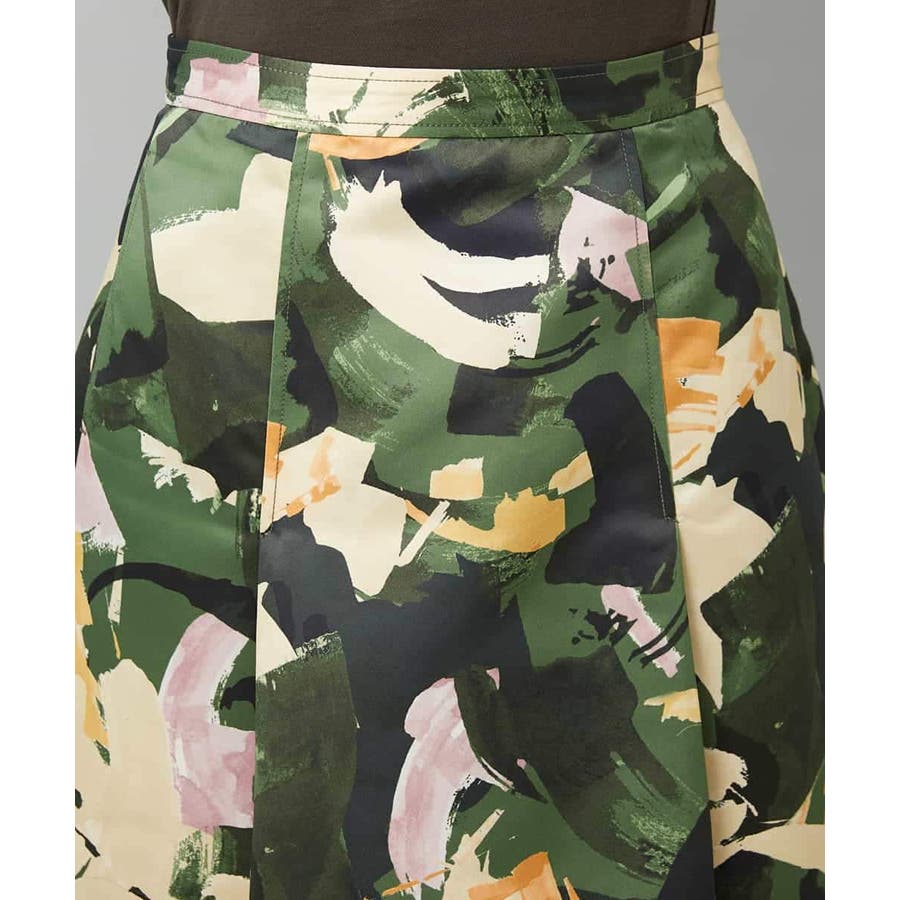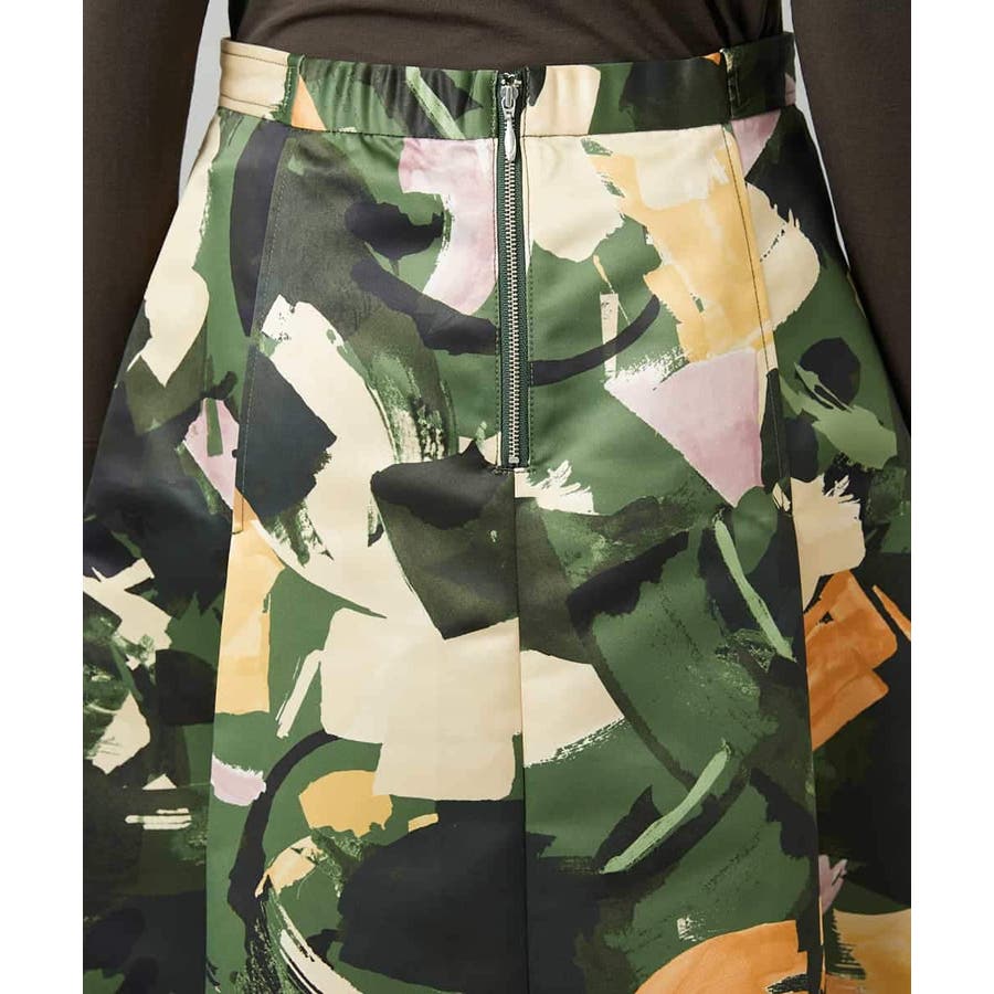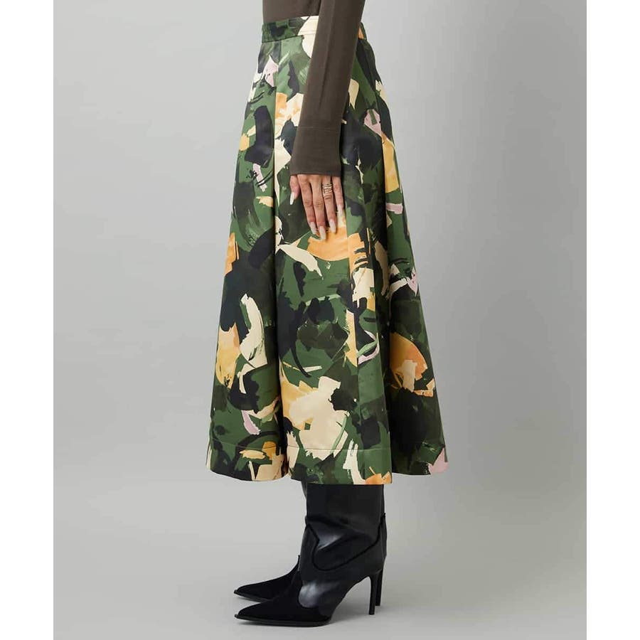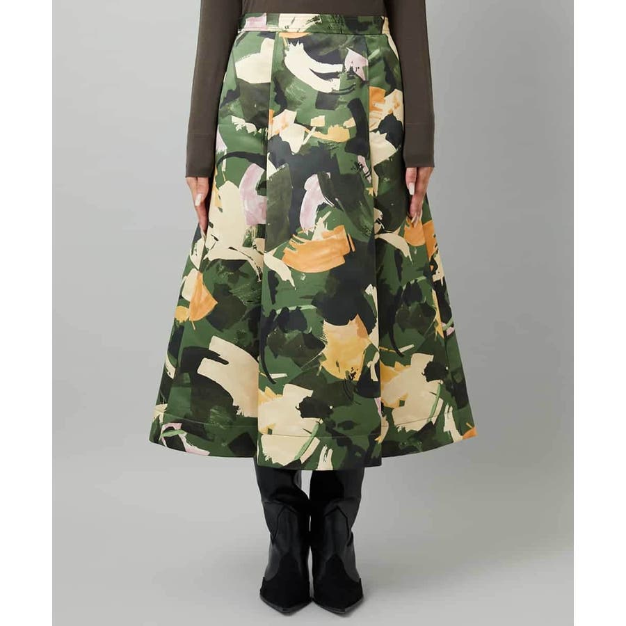 ハリ感のある素材で仕立てたタック入りフレアスカート。マルチカラー配色で、コーディネートの主役として活躍する存在感のある一枚です。36・40サイズは限定店舗展開です。