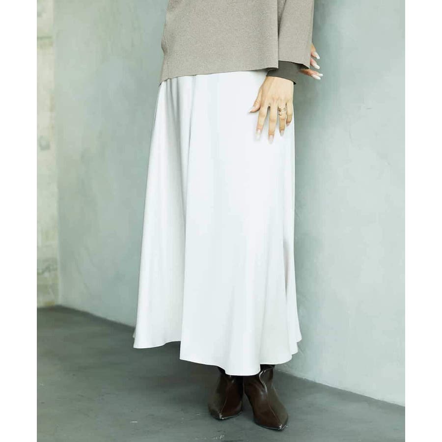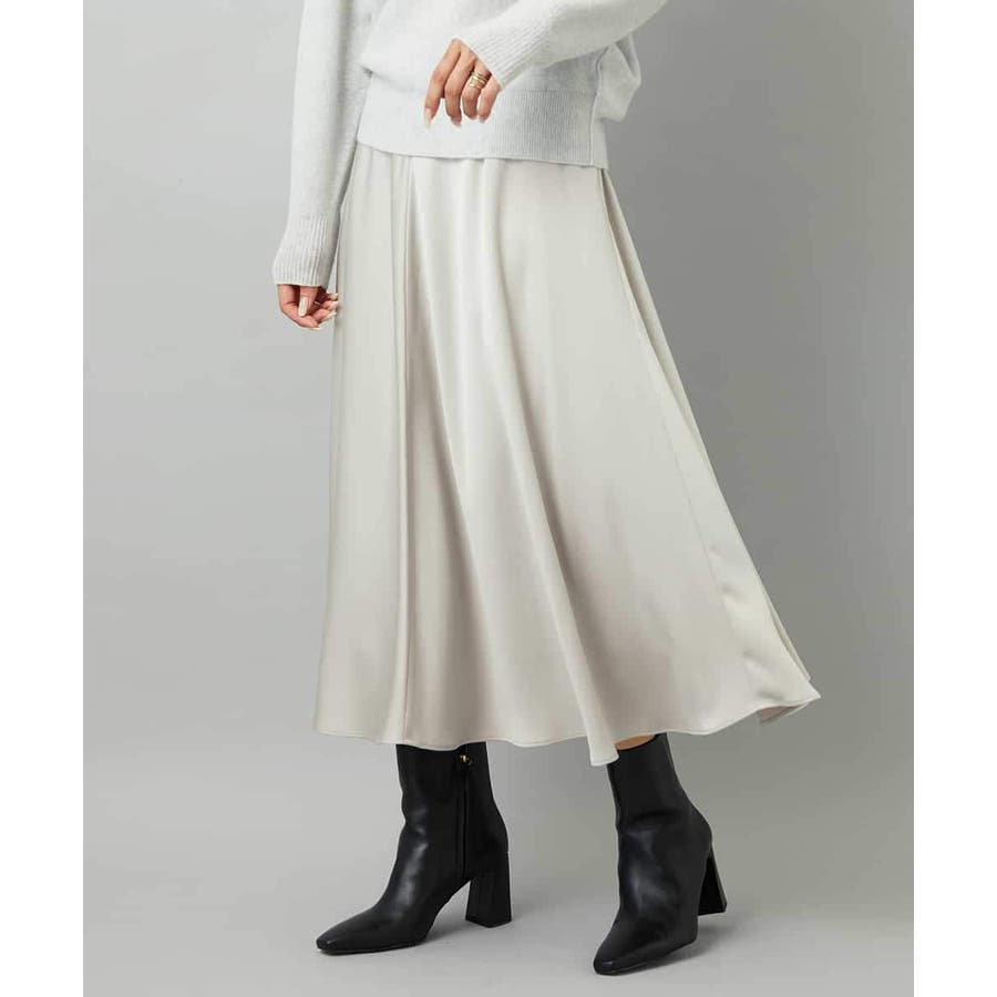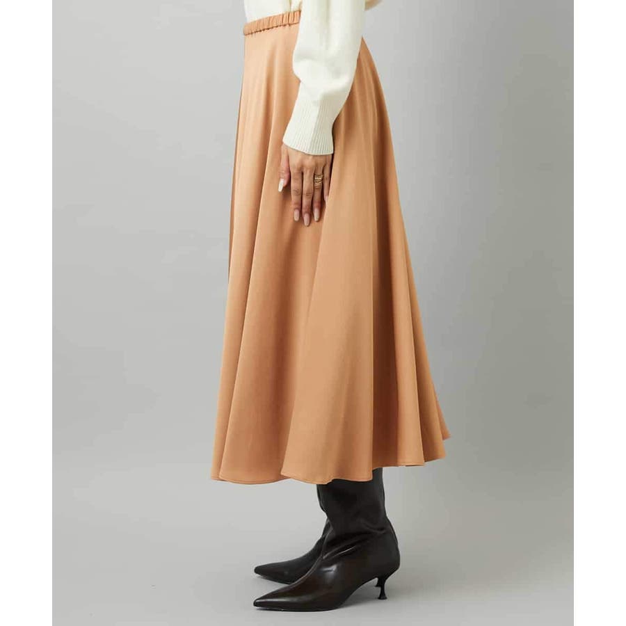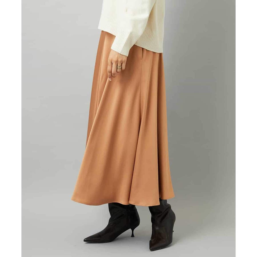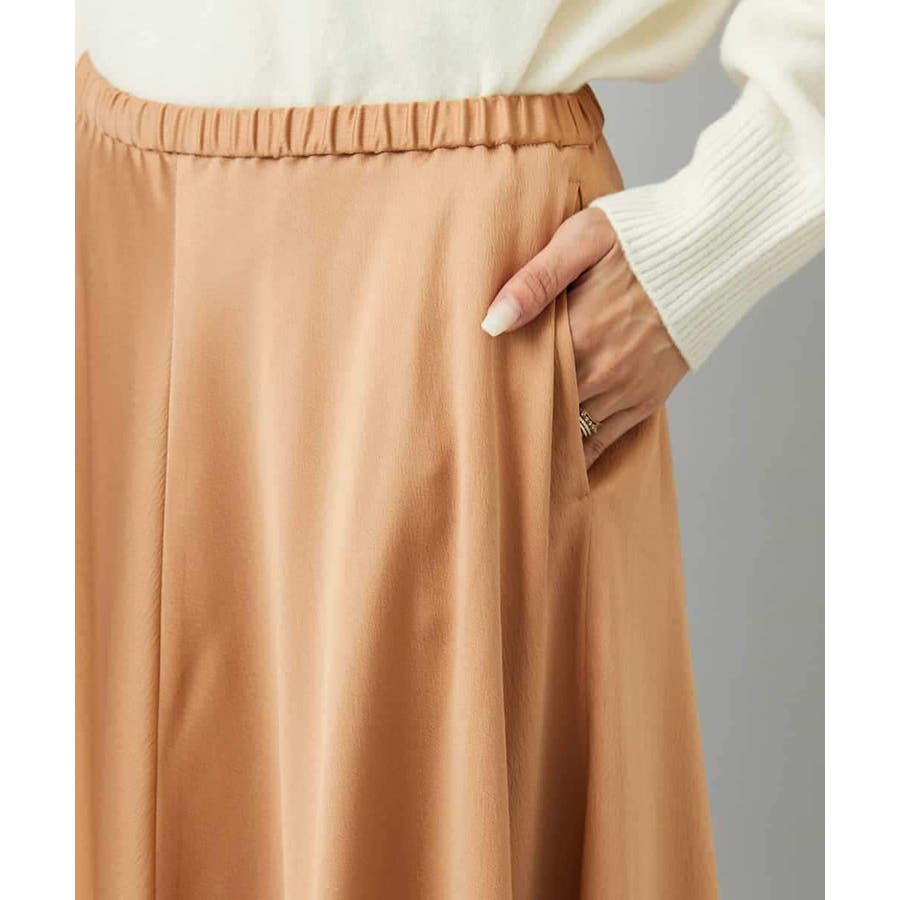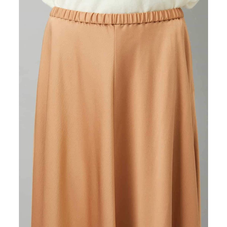 スッキリした腰回りから緩やかに広がるマーメイドシルエットが特徴的なサテンスカート。ウエストはゴムギャザー仕様で快適な着心地です。36・40サイズは限定店舗展開です。