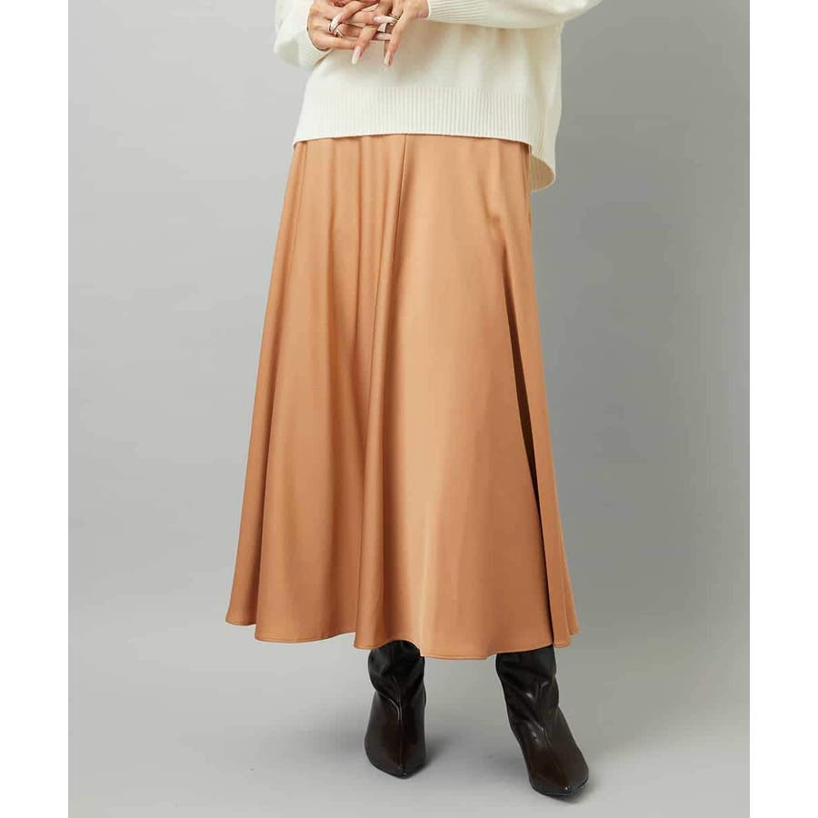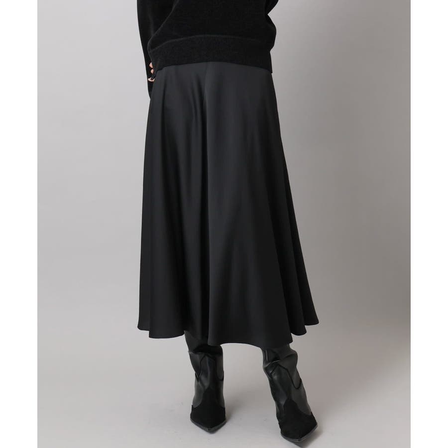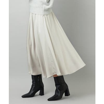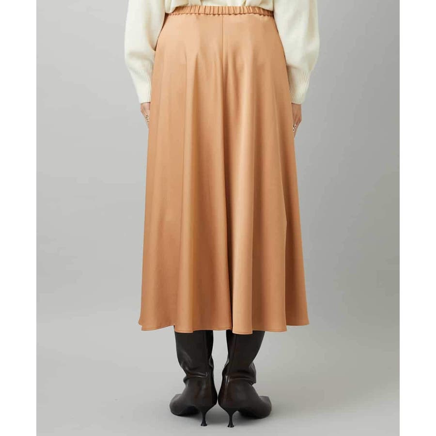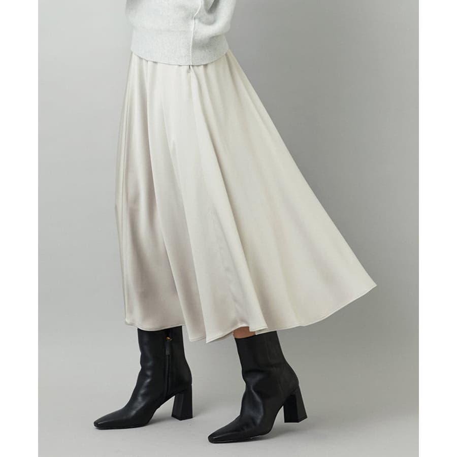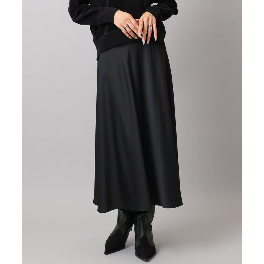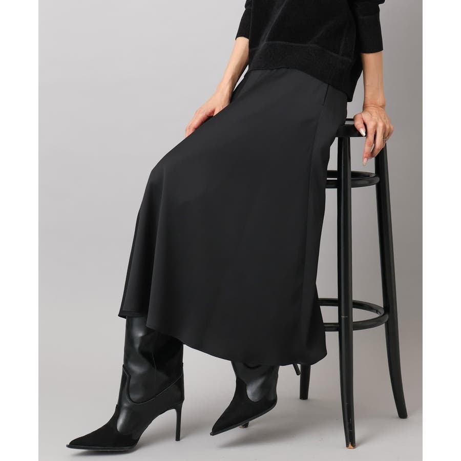 スッキリした腰回りから緩やかに広がるマーメイドシルエットが特徴的なサテンスカート。ウエストはゴムギャザー仕様で快適な着心地です。36・40サイズは限定店舗展開です。
