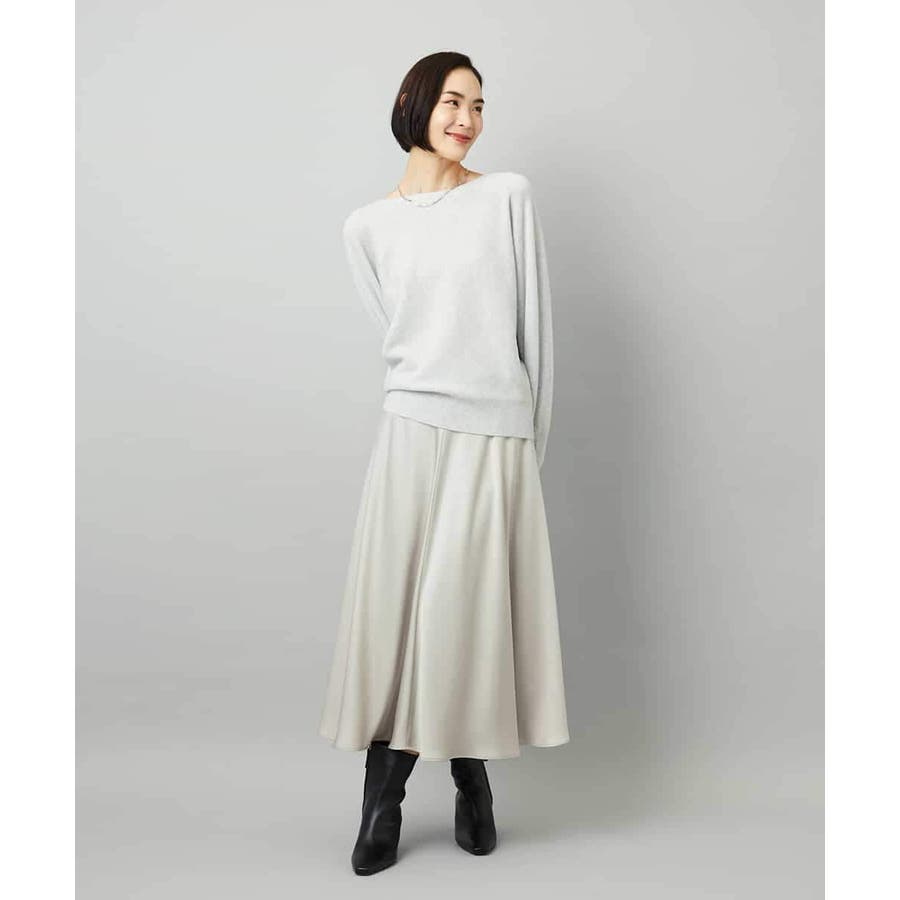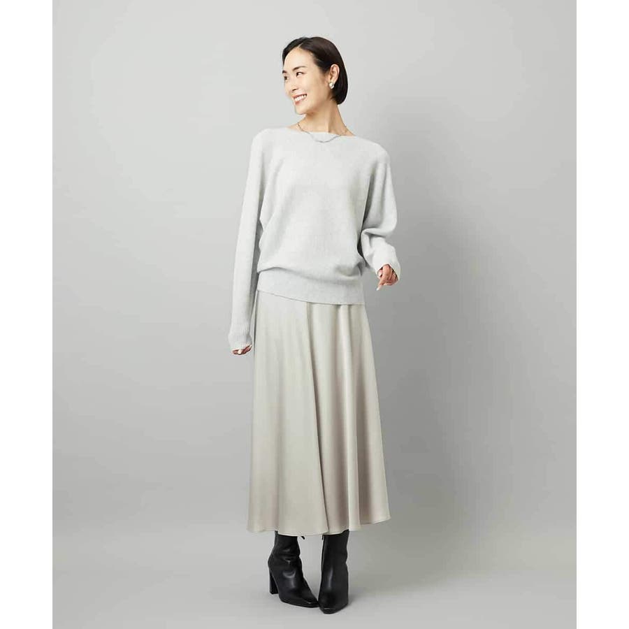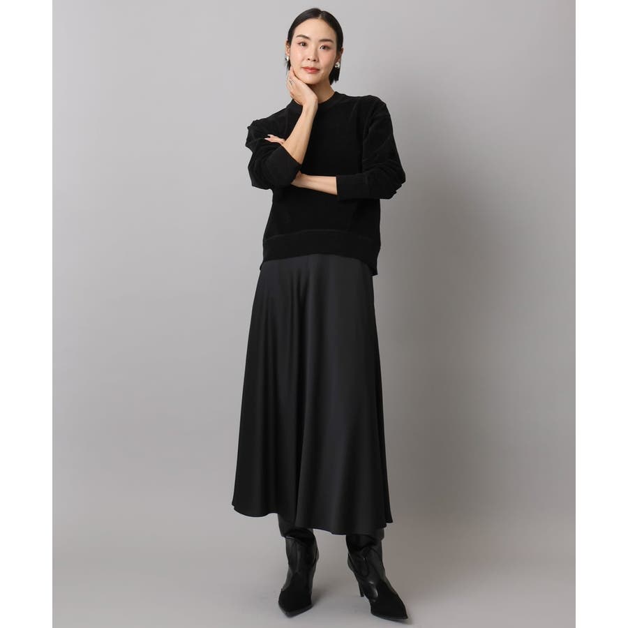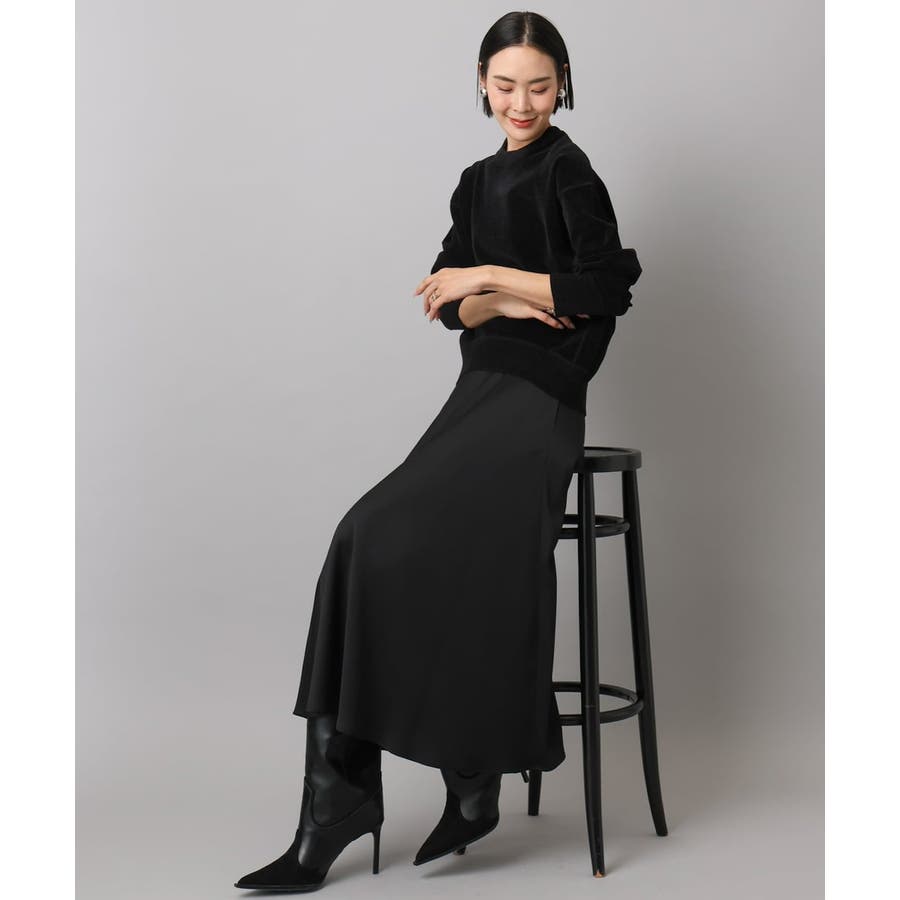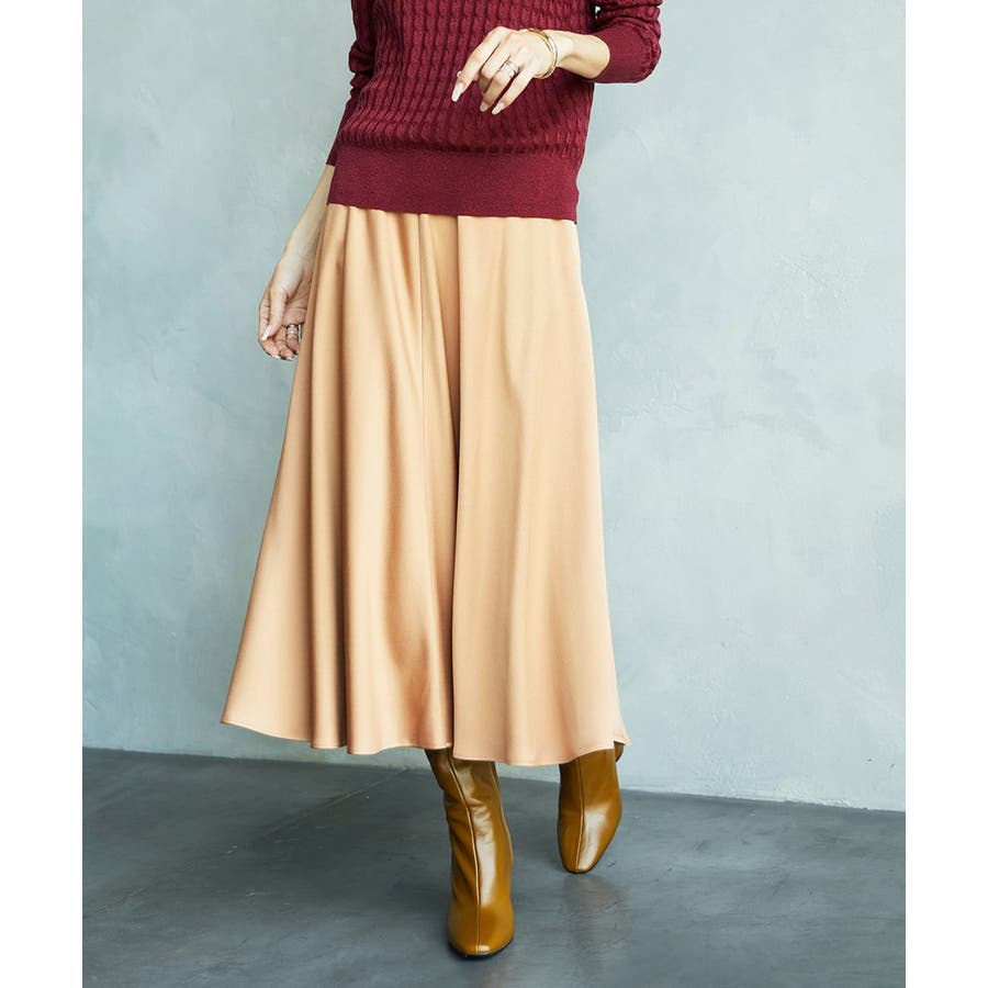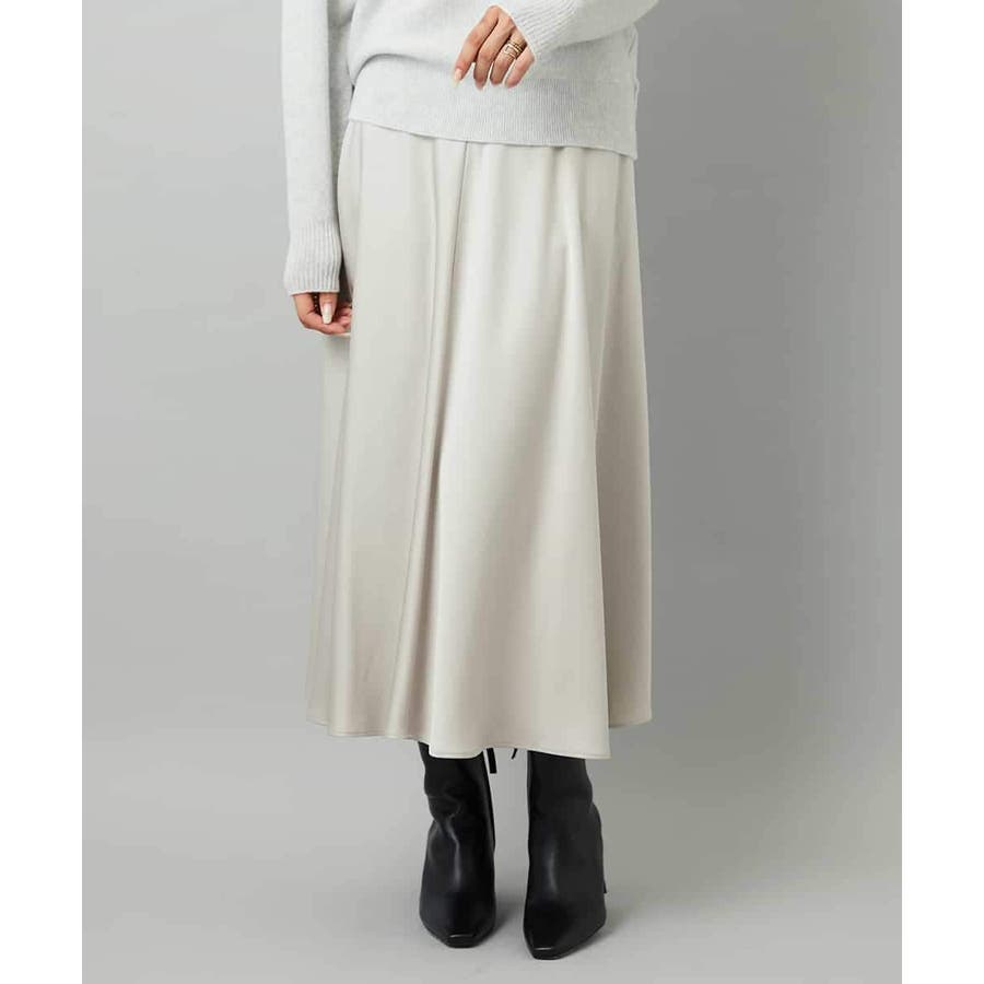 スッキリした腰回りから緩やかに広がるマーメイドシルエットが特徴的なサテンスカート。ウエストはゴムギャザー仕様で快適な着心地です。36・40サイズは限定店舗展開です。