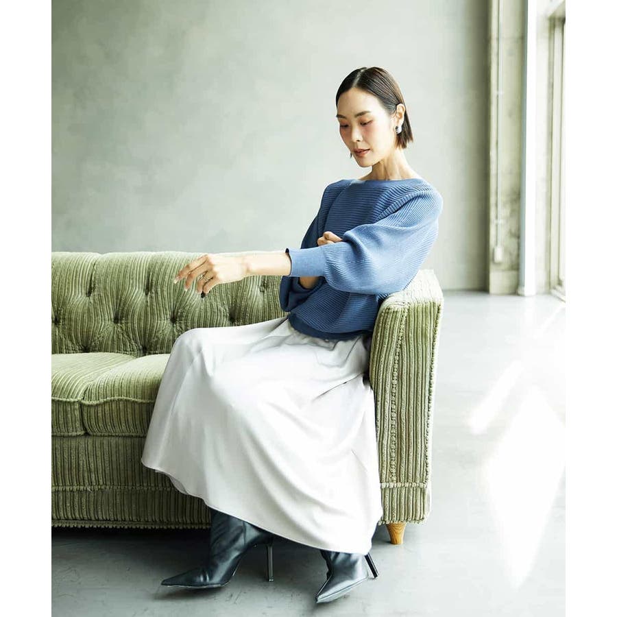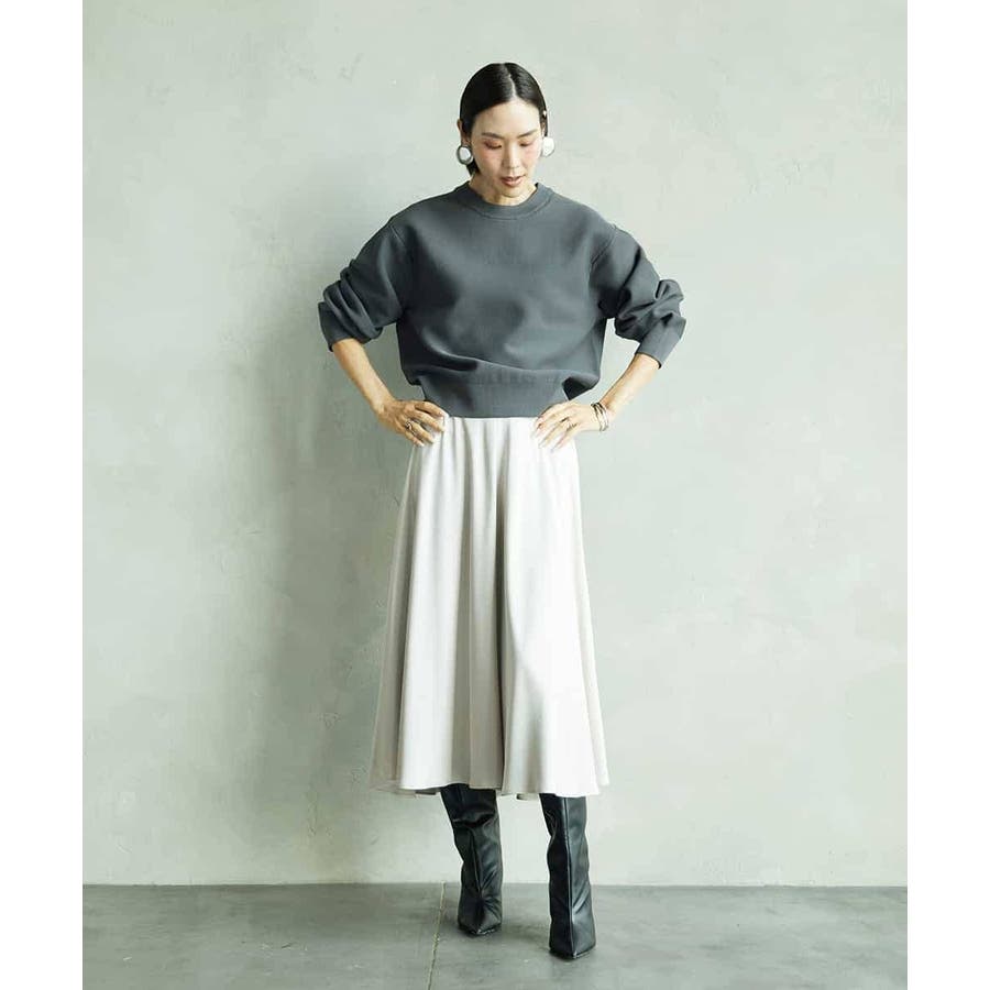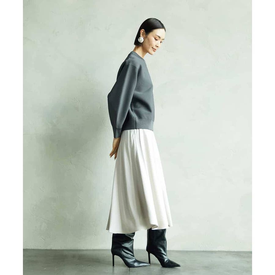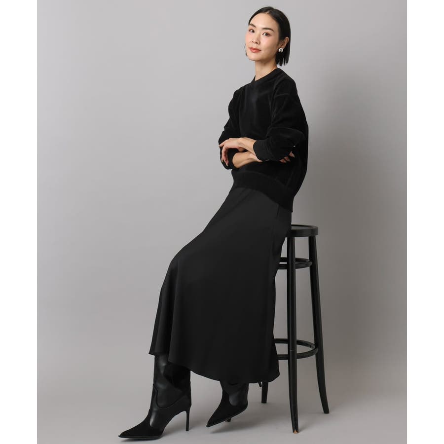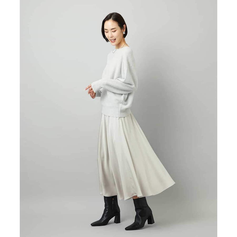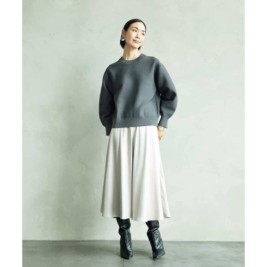 スッキリした腰回りから緩やかに広がるマーメイドシルエットが特徴的なサテンスカート。ウエストはゴムギャザー仕様で快適な着心地です。36・40サイズは限定店舗展開です。
