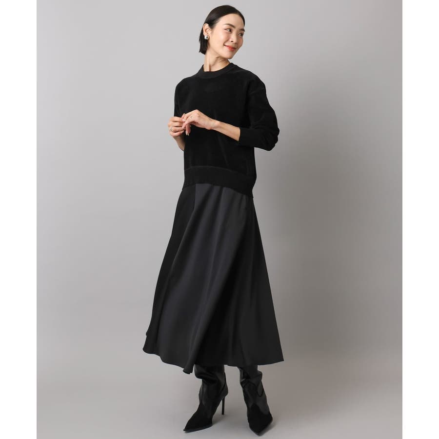 シックに同系色でまとめ、素材のコントラストを楽しむコーディネートがおすすめです。足元はブーツを合わせることで、今っぽく洗練された印象に仕上がります。
