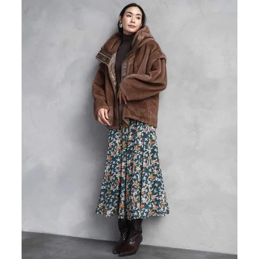 ファーやローゲージニットなど、冬の重めな素材に軽やかさを添えてくれるスカート。動くたびに揺れる柔らかなシルエットが、コーディネートに女性らしいやさしさと華やかさをプラスします。トップス次第でフェミニンにもカジュアルにも着こなせる、汎用性の高い一枚です。