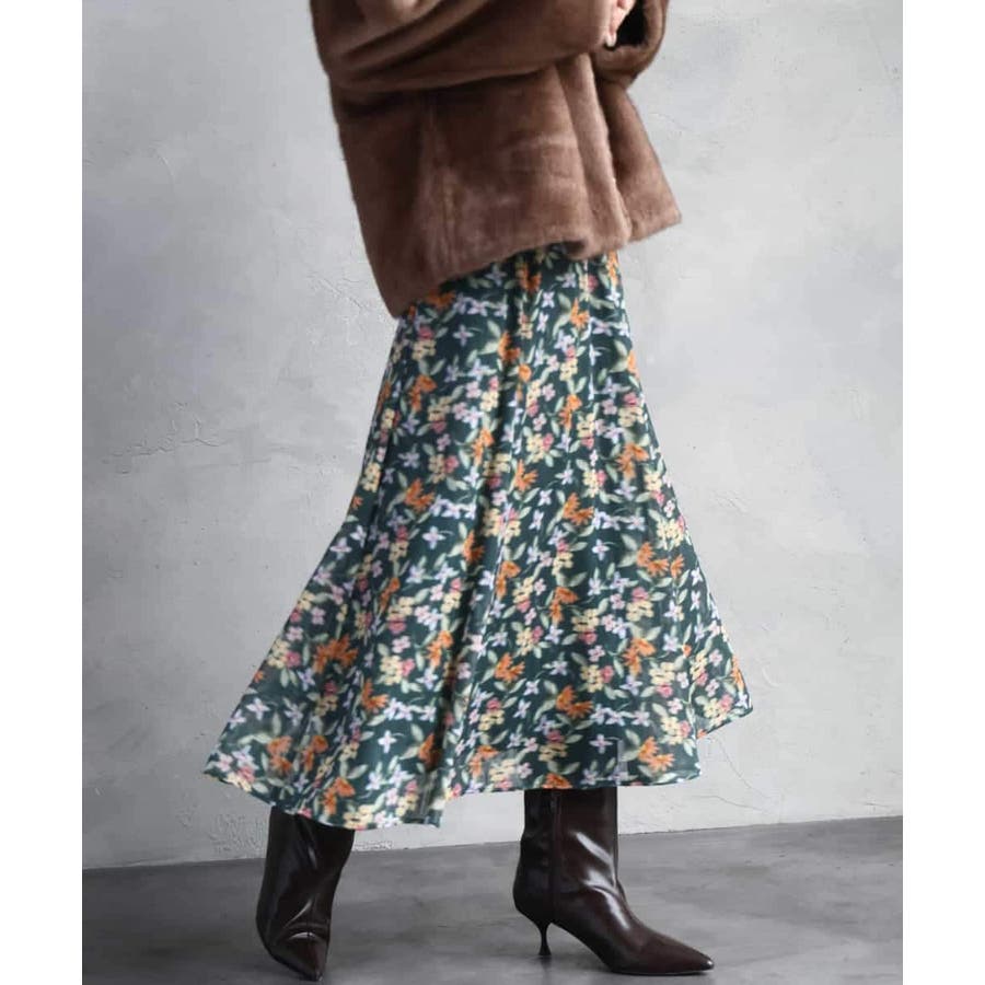 程よい透け感と軽やかさが魅力のフレアースカート。スッキリとした腰回りとウエストゴム仕様で、快適な着心地も叶えます。40サイズは限定店舗展開です。