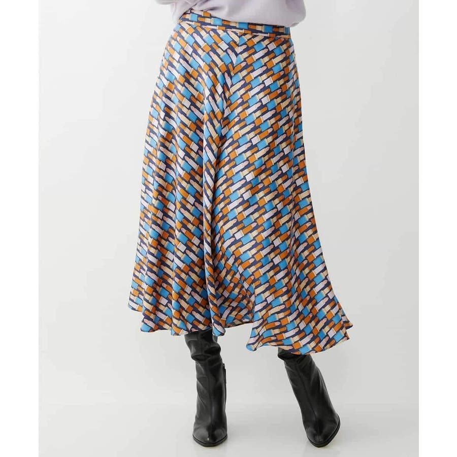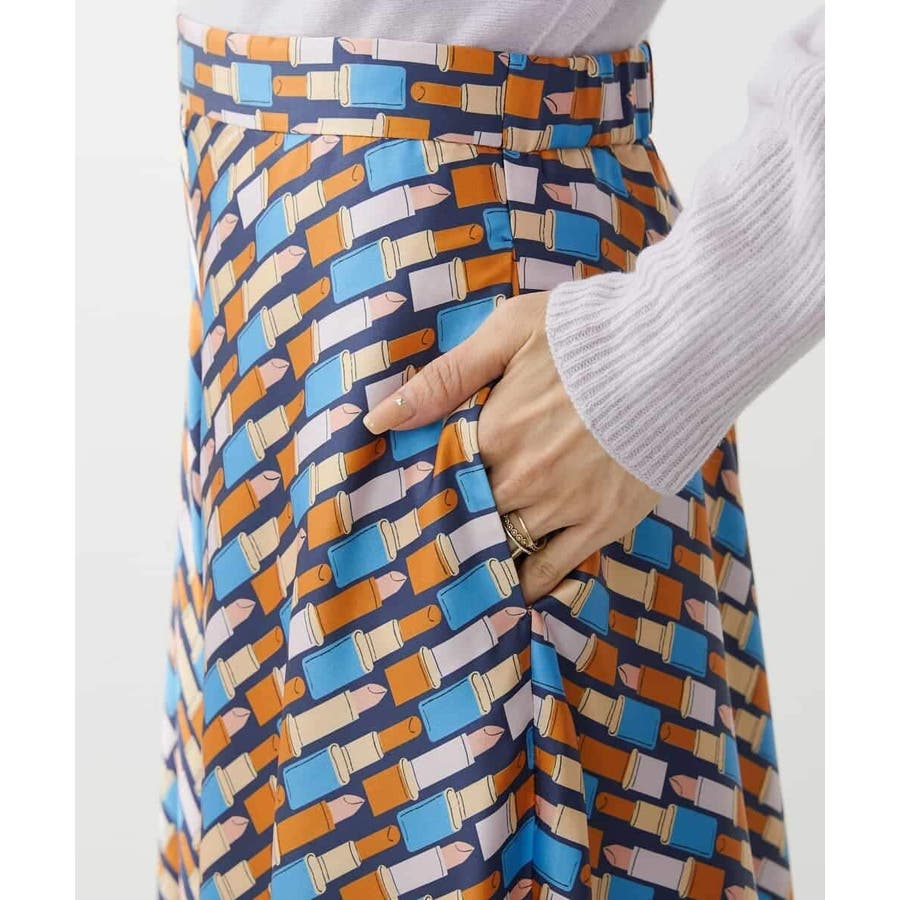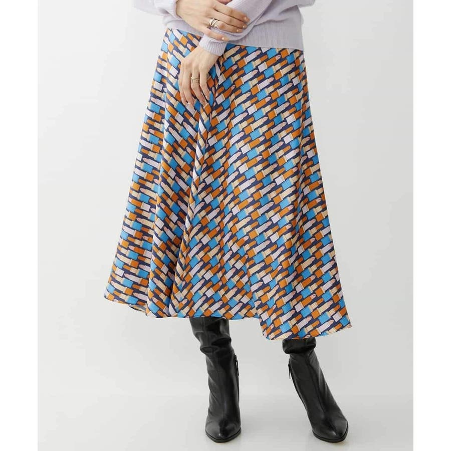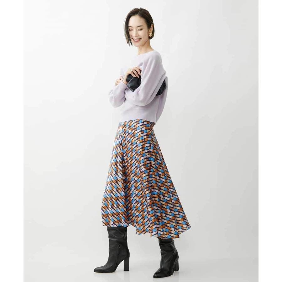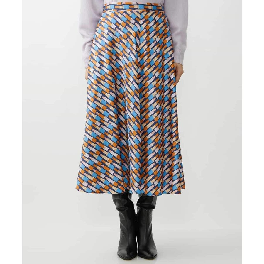 ポップなルージュの柄が印象的なフェミニンなフレアースカート。腰回りをスッキリさせたシルエットが特徴です。柄が斜めに入っていて、着やせ効果抜群です。裾にかけてフレア分量が多くなっていくのでドレッシーな印象になっています。40サイズは限定店舗展開です。