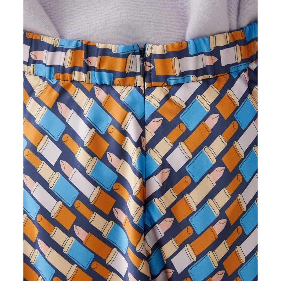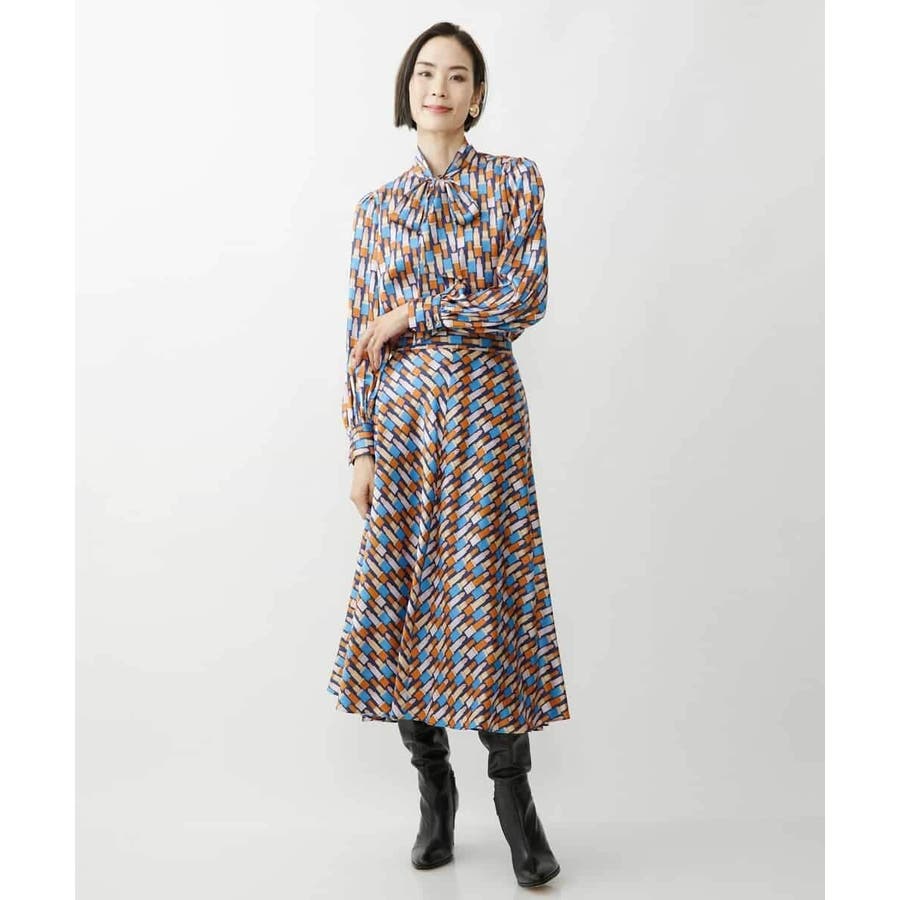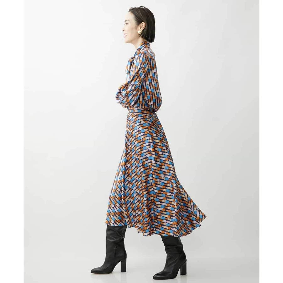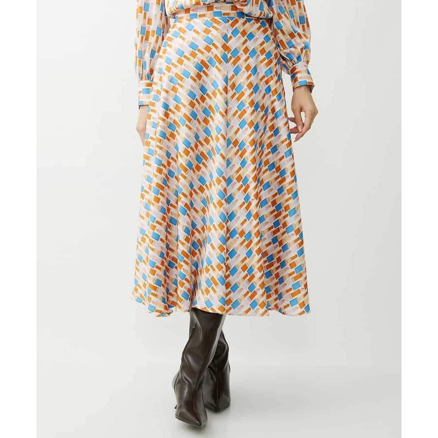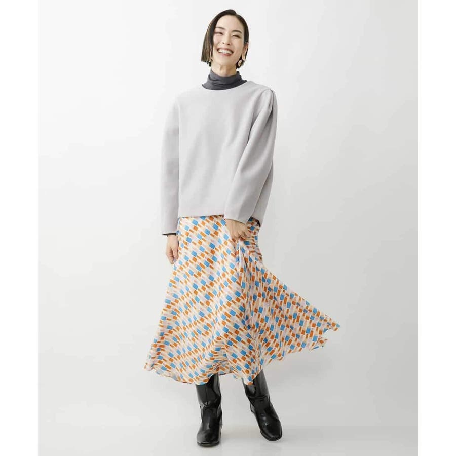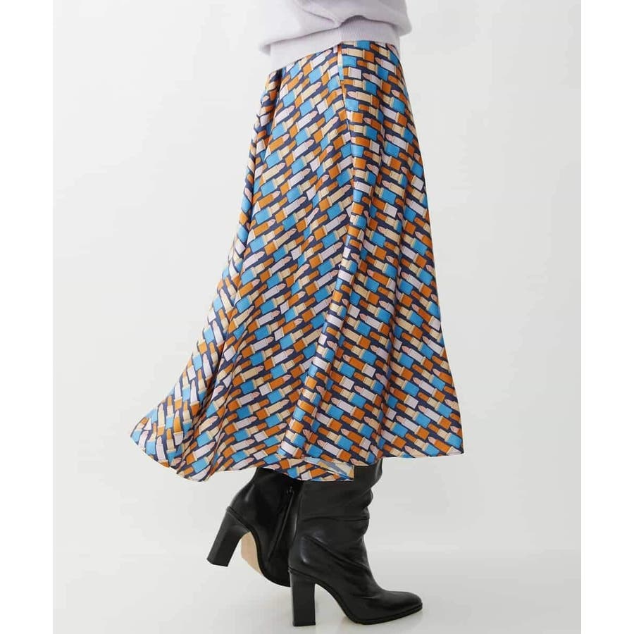 ポップなルージュの柄が印象的なフェミニンなフレアースカート。腰回りをスッキリさせたシルエットが特徴です。柄が斜めに入っていて、着やせ効果抜群です。裾にかけてフレア分量が多くなっていくのでドレッシーな印象になっています。40サイズは限定店舗展開です。