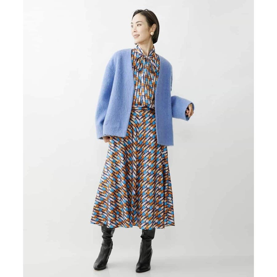 同素材ボウタイブラウス[FMHAV47270]とセットアップでワンピース風に着用可能。ノーカラーコート[FMUAV43390]と合わせたスタイルがベストマッチです。