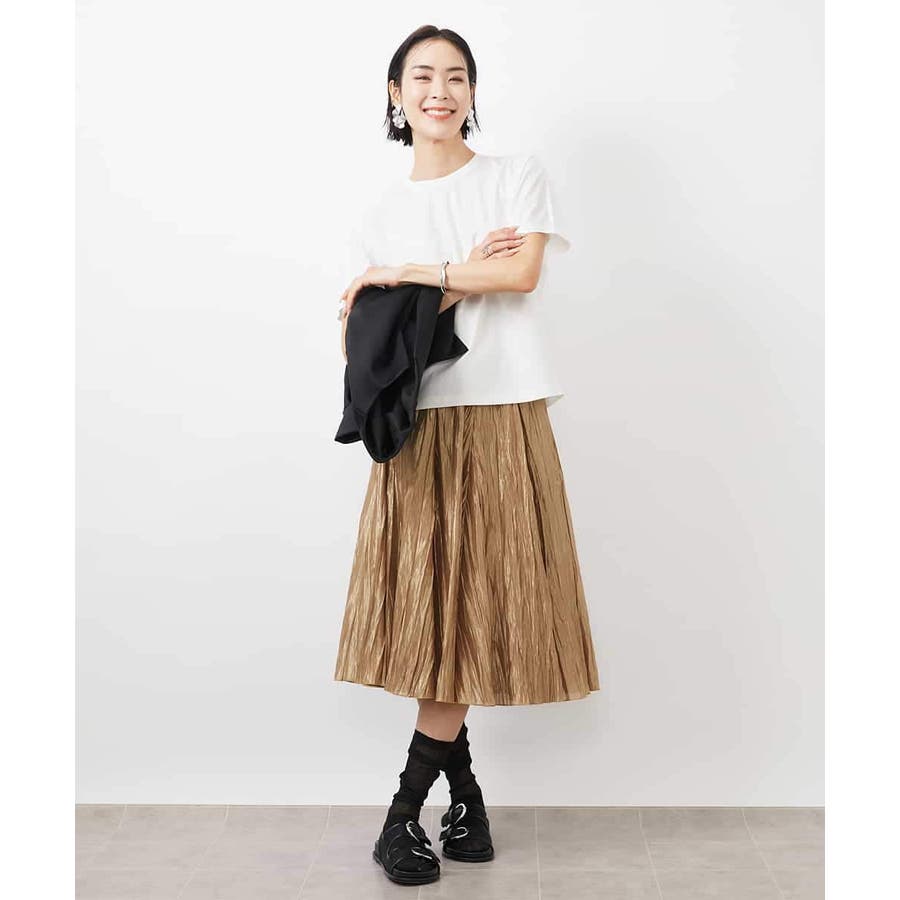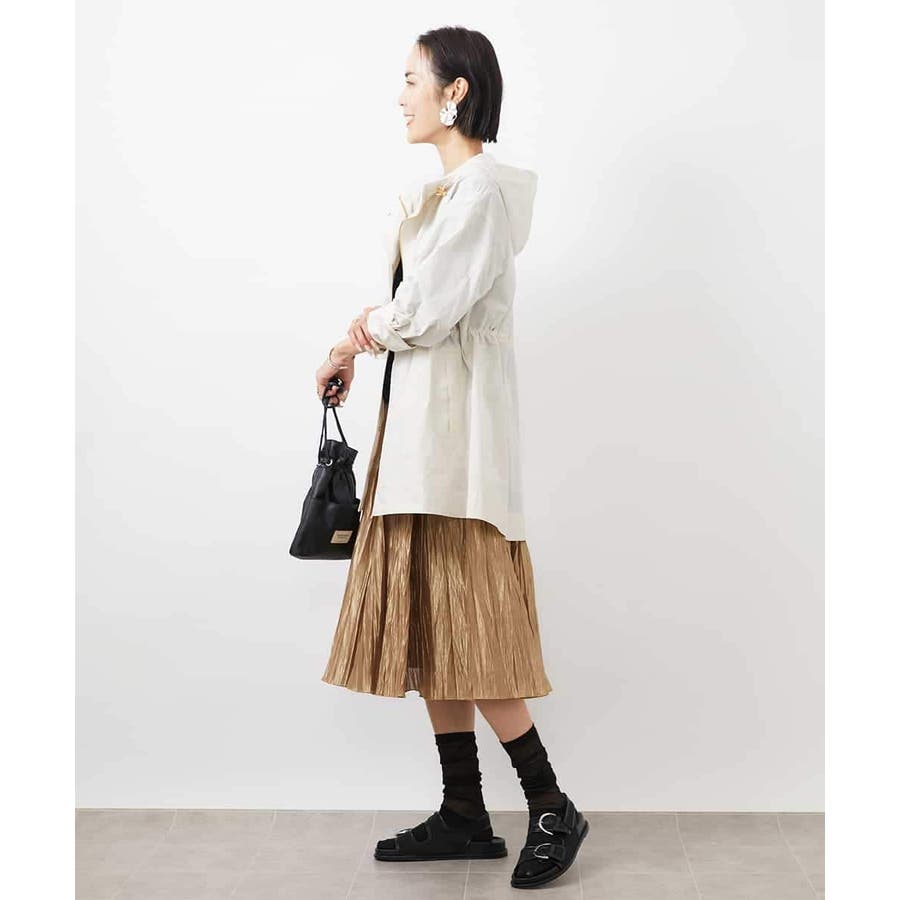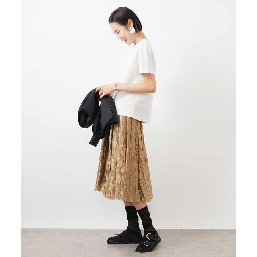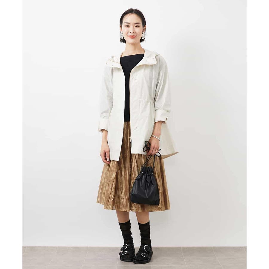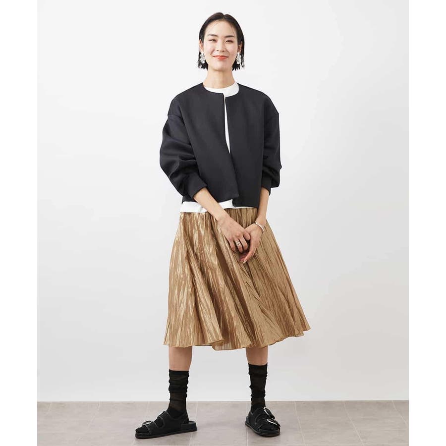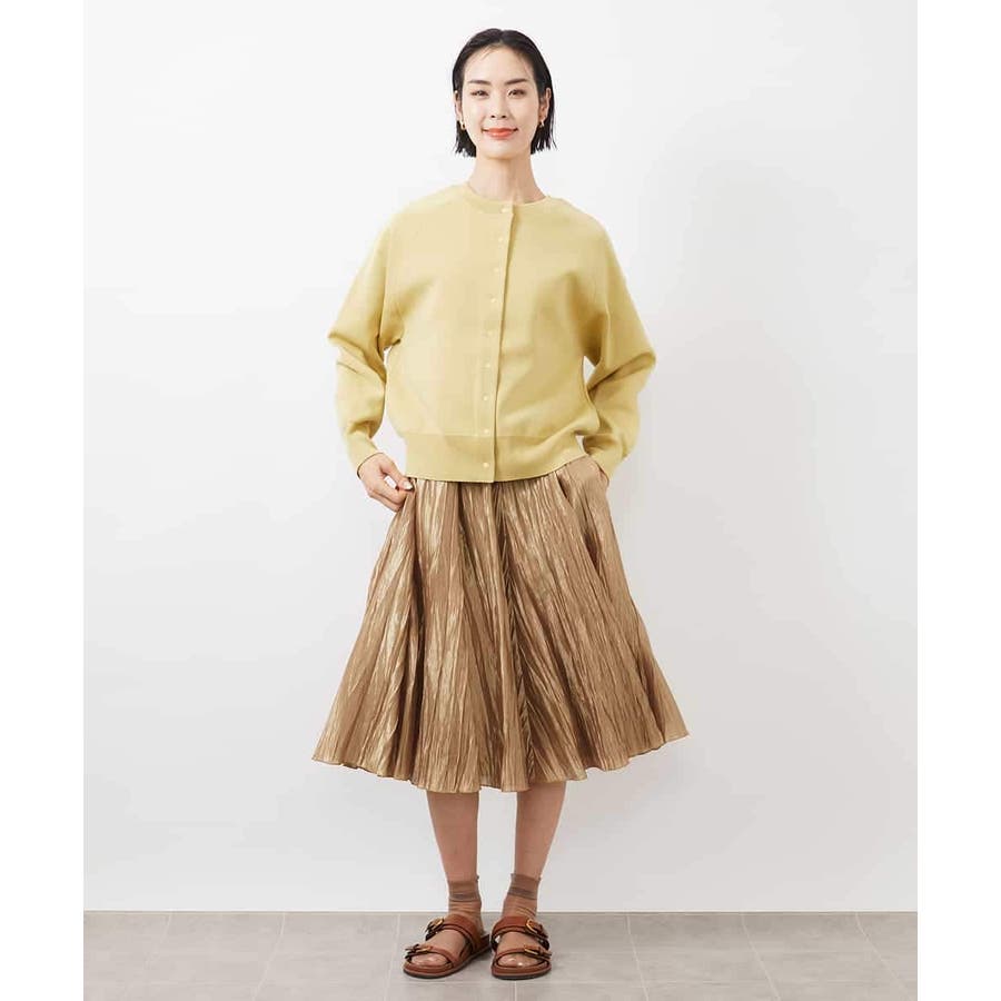 少し短めのスカートも注目トレンド。足がきれいに見える様に、裾線をふくらはぎの程よい位置に合わせています。ゴムウエストにする事で着心地も良いのがポイント。40サイズは限定店舗展開です。