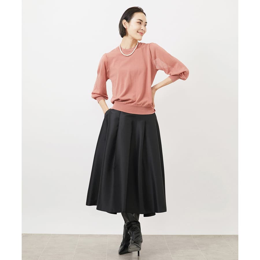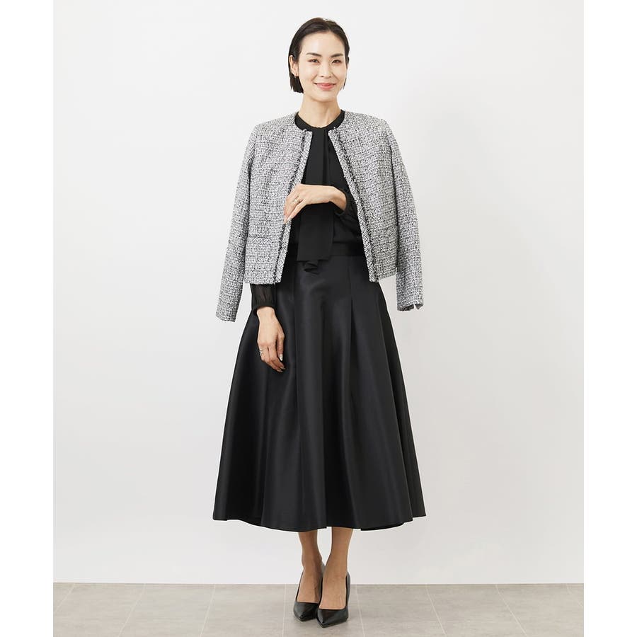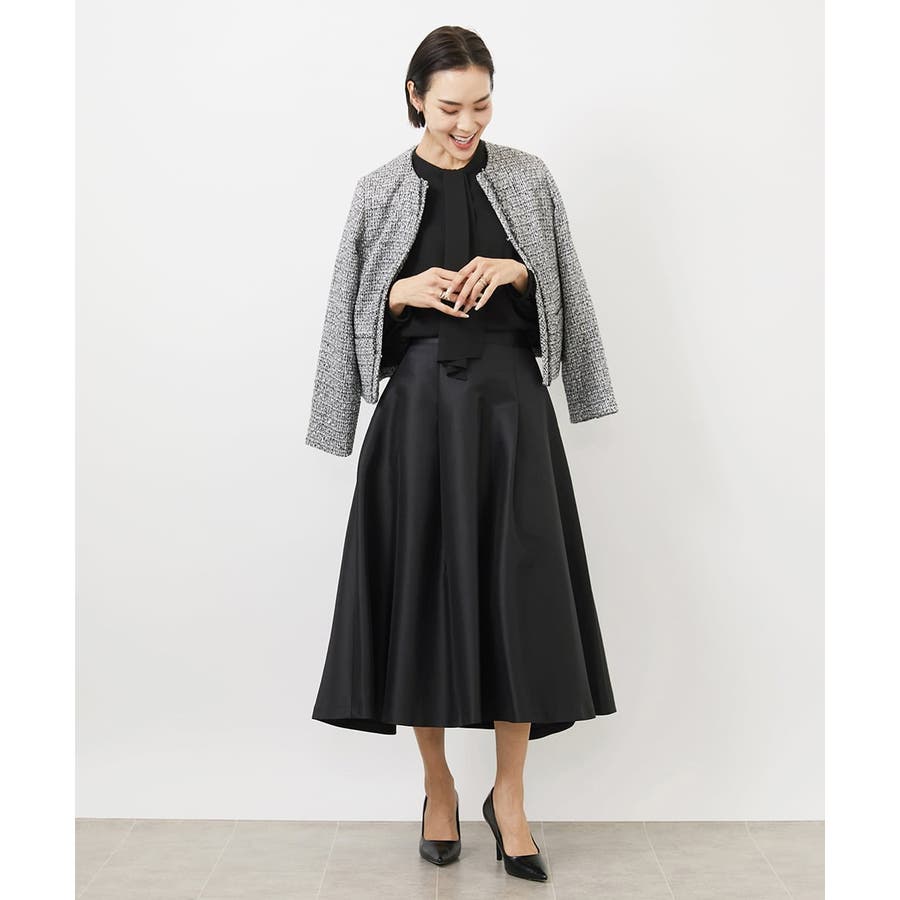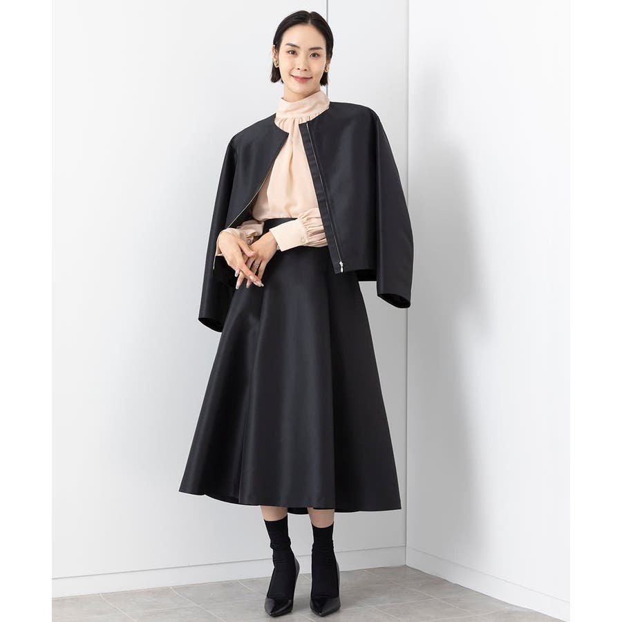 素材とシルエットにこだわった美シルエットのボリュームスカート。すっきりとしたウエストラインが上品で女性らしさが際立ちます。華やかなスカートはジャケットを合わせればセレモニーやオケージョンシーンにもマッチします。またニットやブラウスなどを合わせたデイリースタイルにも着回せます。コンパクトなトップスでスカートが主役になるスタイリングもおすすめ。同素材のジャケット[FMJAA09330]とセットアップで着用いただけます。