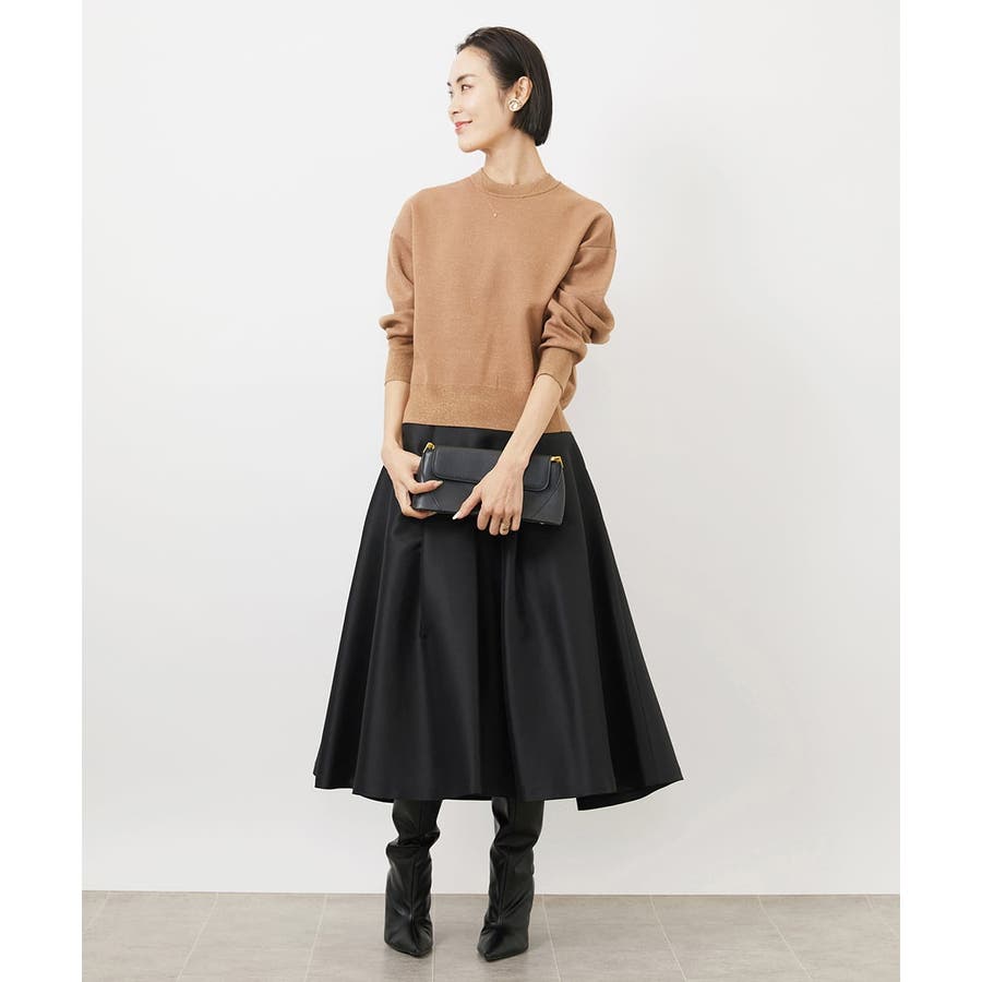 ハリ感があるヘビーウェイトのサテンは今季大注目な素材のひとつ。立体的なフォルムをフェミニンに仕上げる為にピッタリな素材です。上品なつや感としっとりとした風合いが特徴。