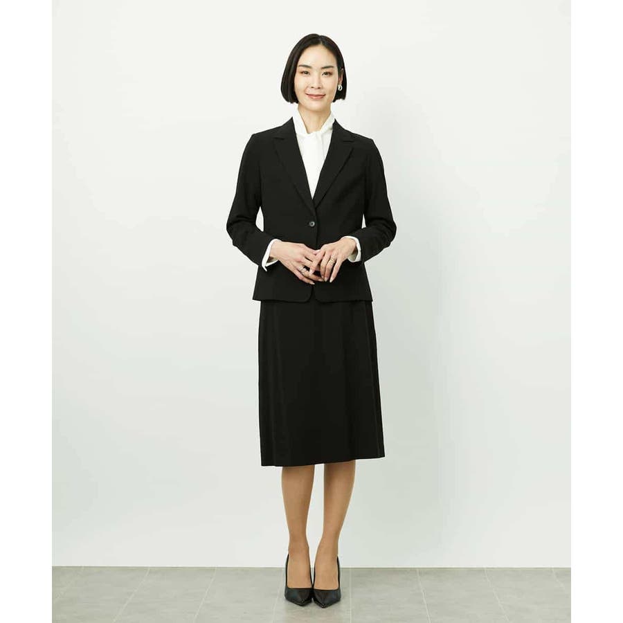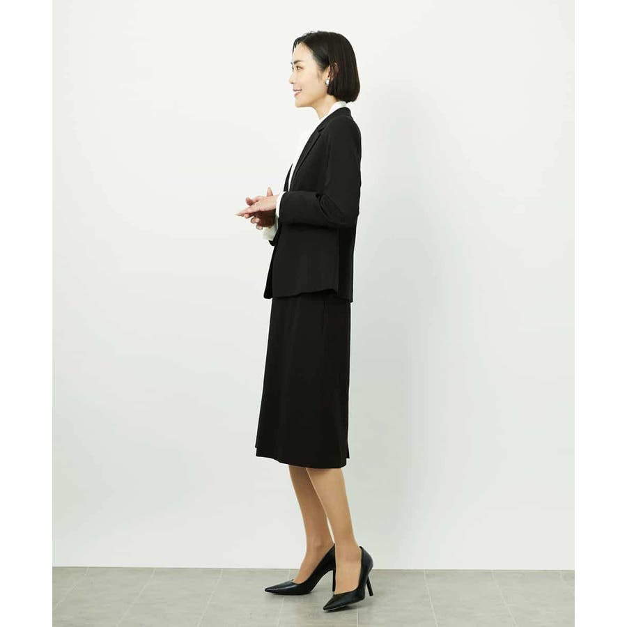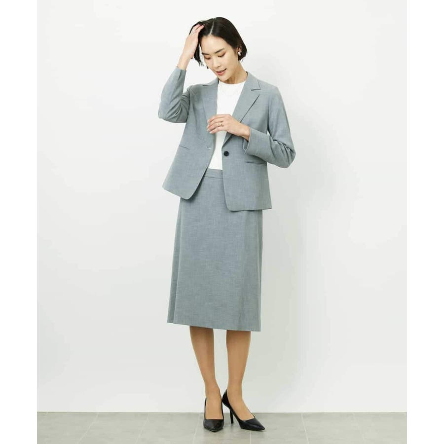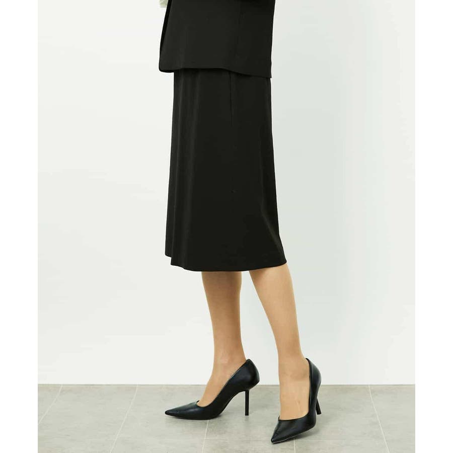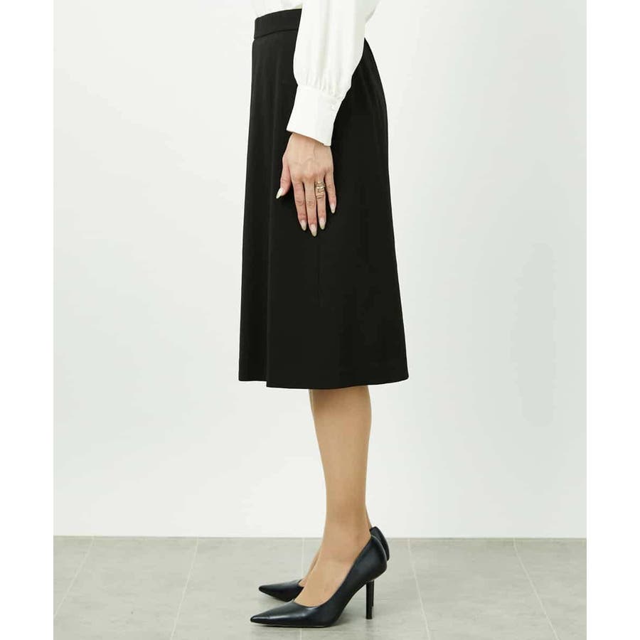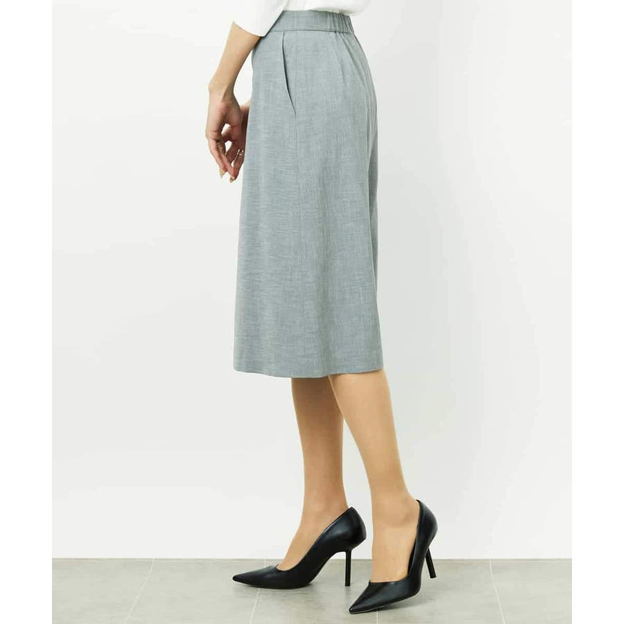 同素材のジャケットと合わせたセットアップスタイルがおすすめです。統一感のある着こなしで、より洗練された通勤スタイルになります。単品使いでもトップスを選ばず、デイリーなシンプルコーデにも自然に馴染み、スカートの美しいシルエットが際立つ上品な印象に。