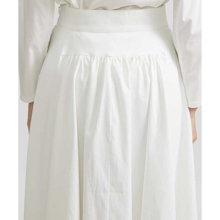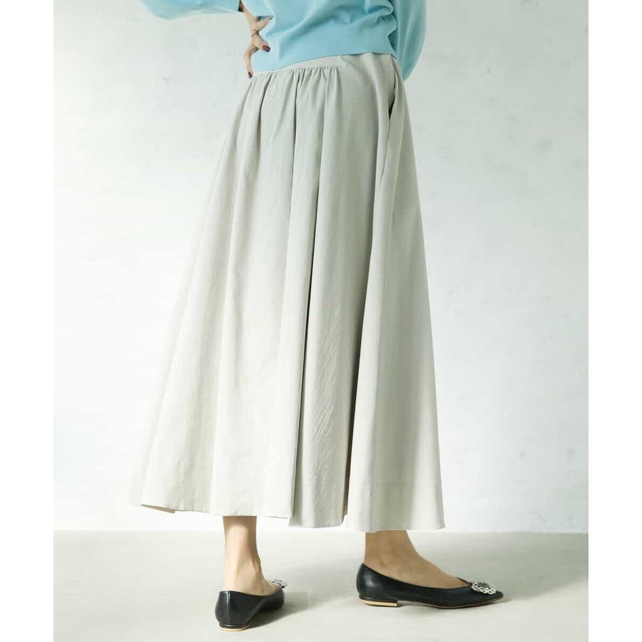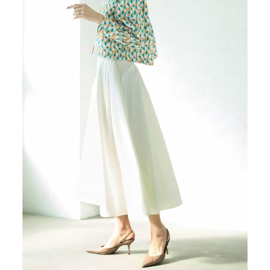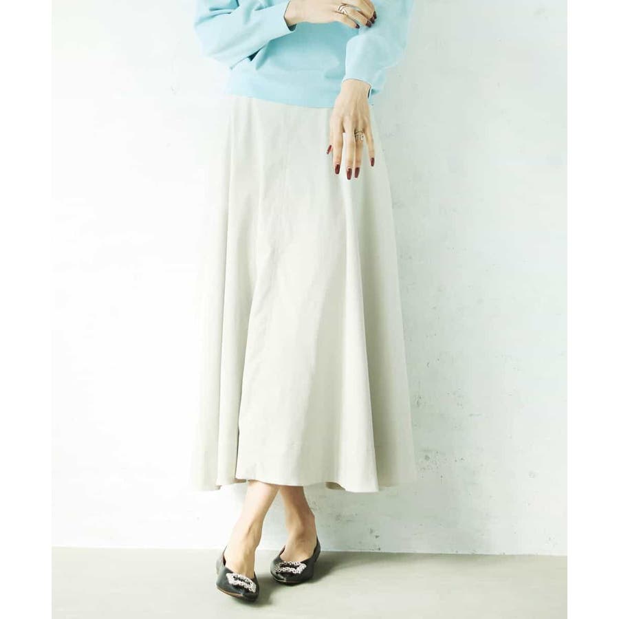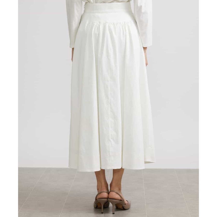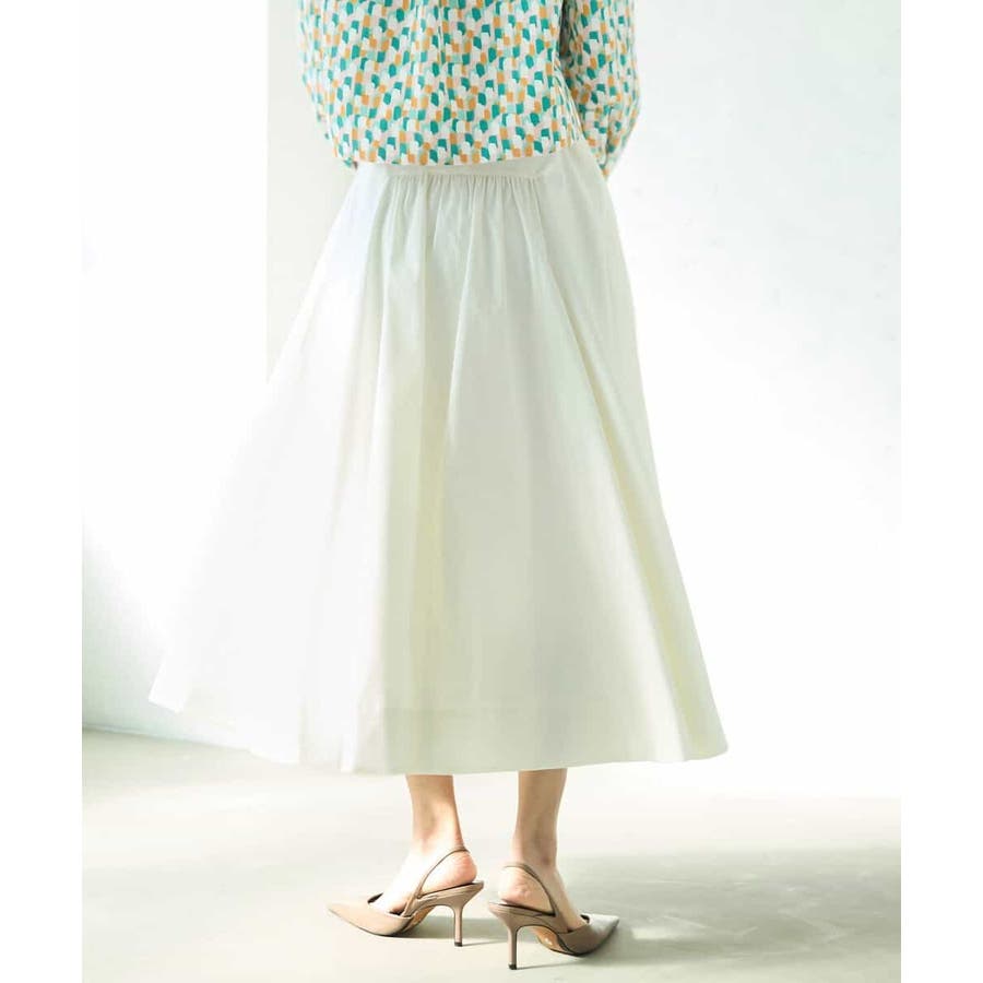 フロントスタイルはシンプルなフレアシルエット、バックスタイルを切り替えギャザーにすることで、フェミニンすぎない「大人かわいい」スカートを作りました。腰下から広がるシルエットで、ヒップ回りをすっきり見せてくれるのもうれしいポイント。40サイズは限定店舗展開です。