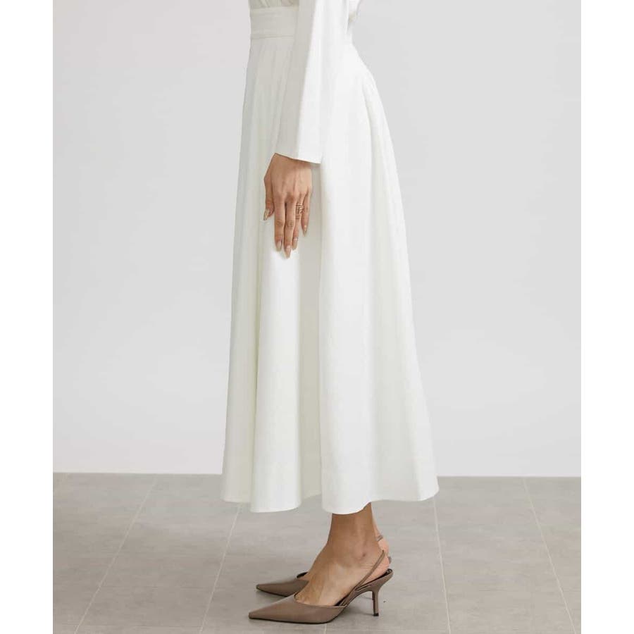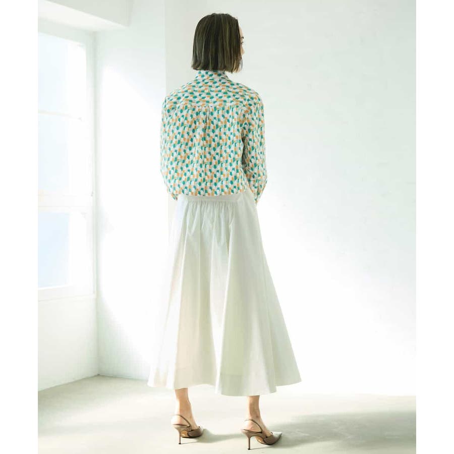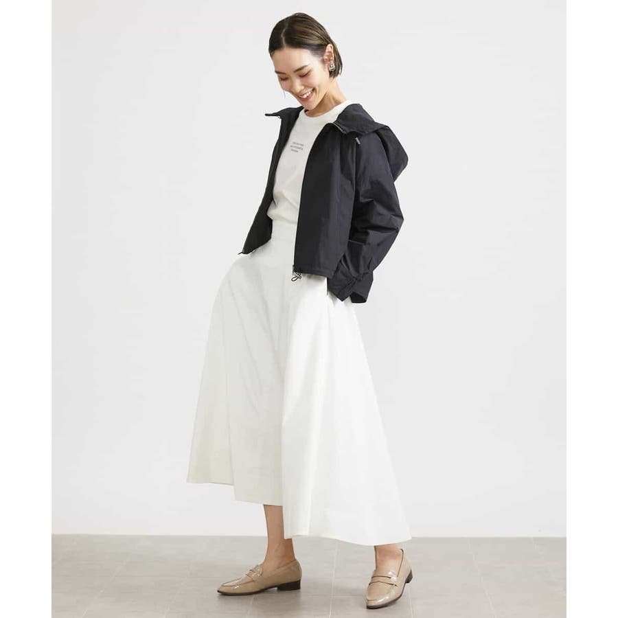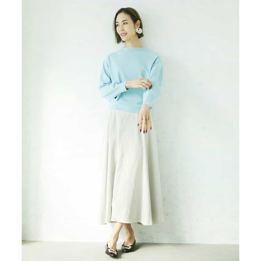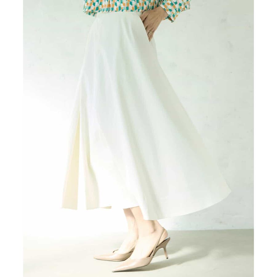 フロントスタイルはシンプルなフレアシルエット、バックスタイルを切り替えギャザーにすることで、フェミニンすぎない「大人かわいい」スカートを作りました。腰下から広がるシルエットで、ヒップ回りをすっきり見せてくれるのもうれしいポイント。40サイズは限定店舗展開です。