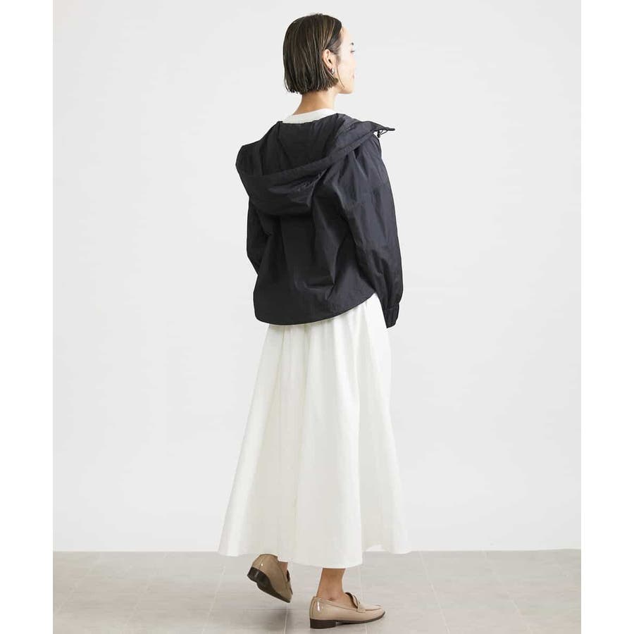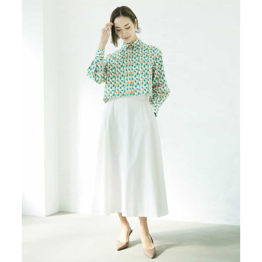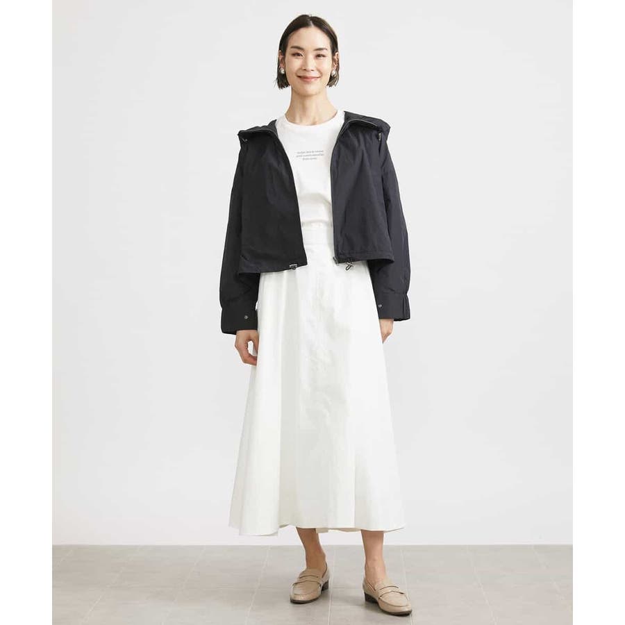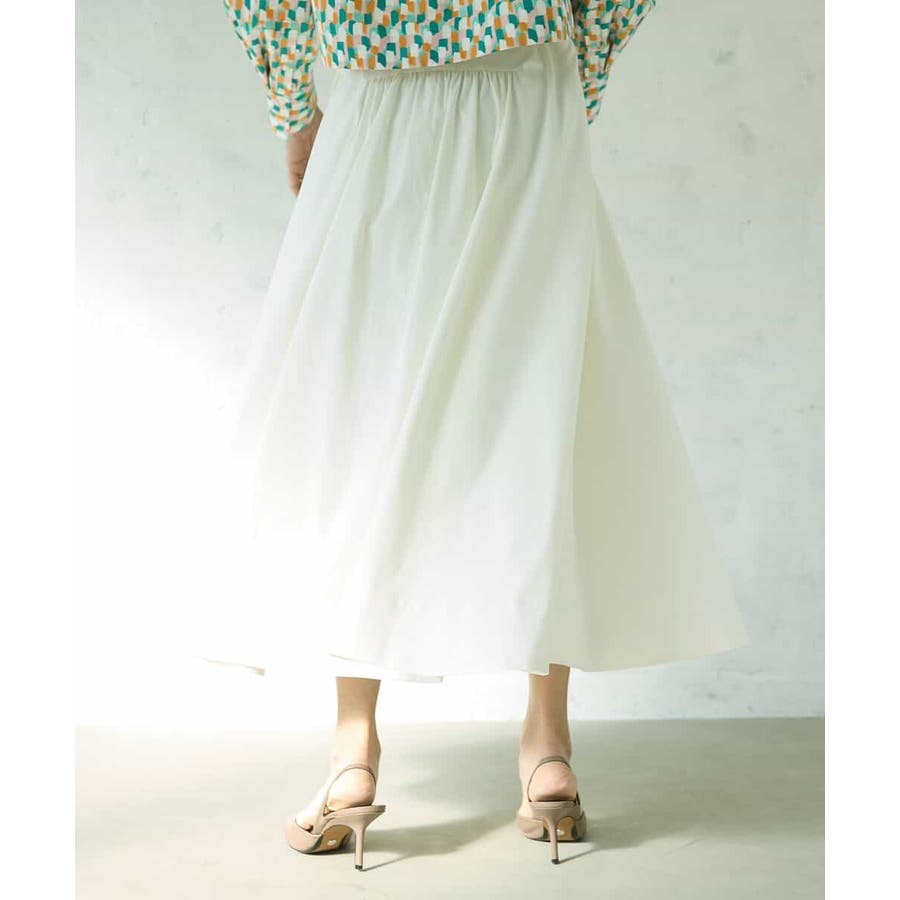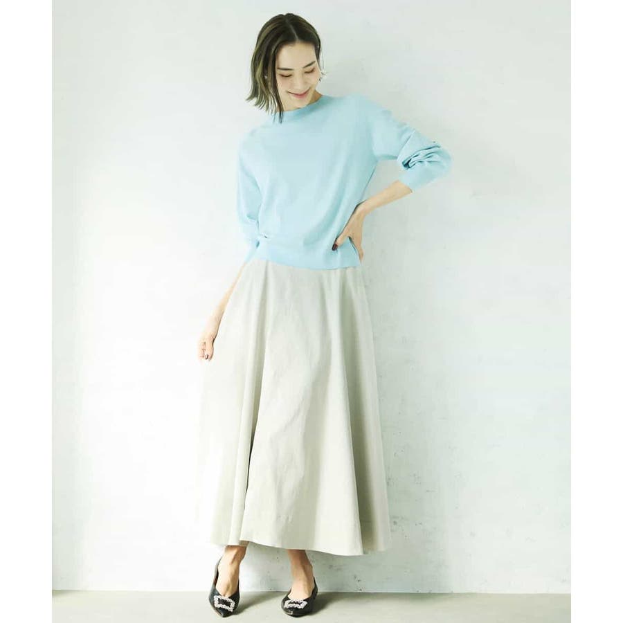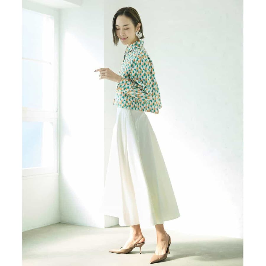 フロントスタイルはシンプルなフレアシルエット、バックスタイルを切り替えギャザーにすることで、フェミニンすぎない「大人かわいい」スカートを作りました。腰下から広がるシルエットで、ヒップ回りをすっきり見せてくれるのもうれしいポイント。40サイズは限定店舗展開です。