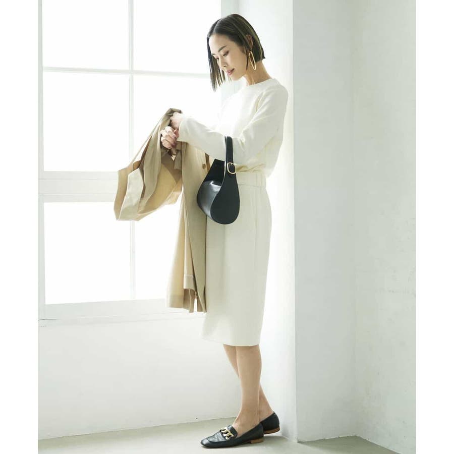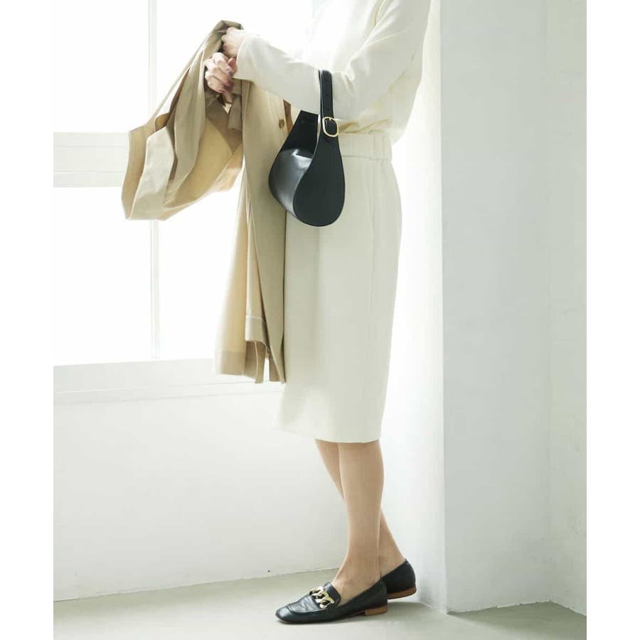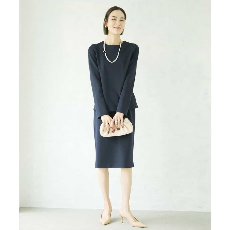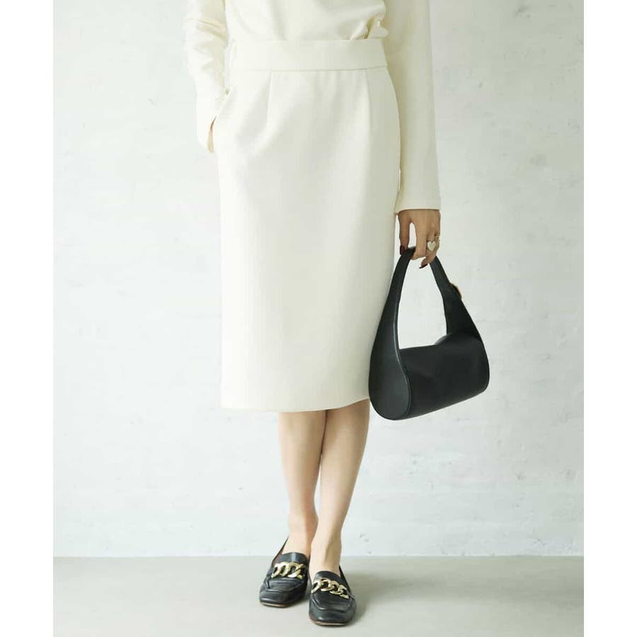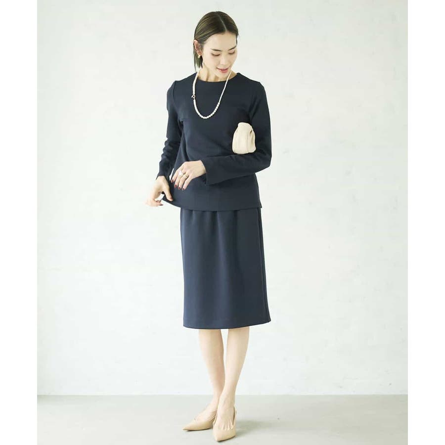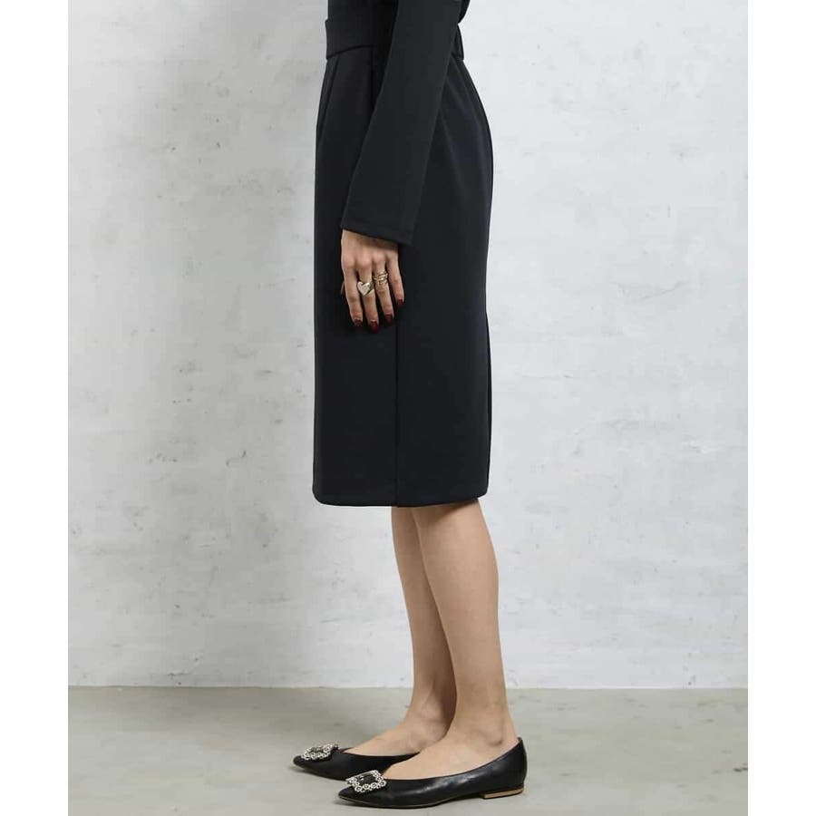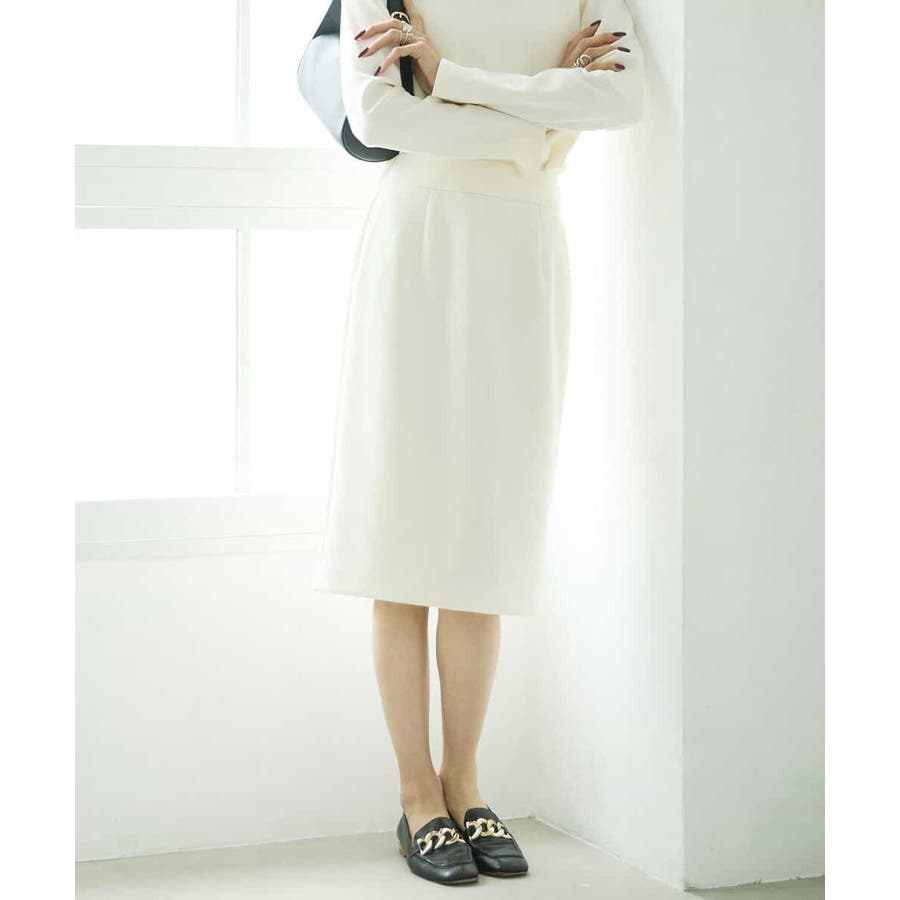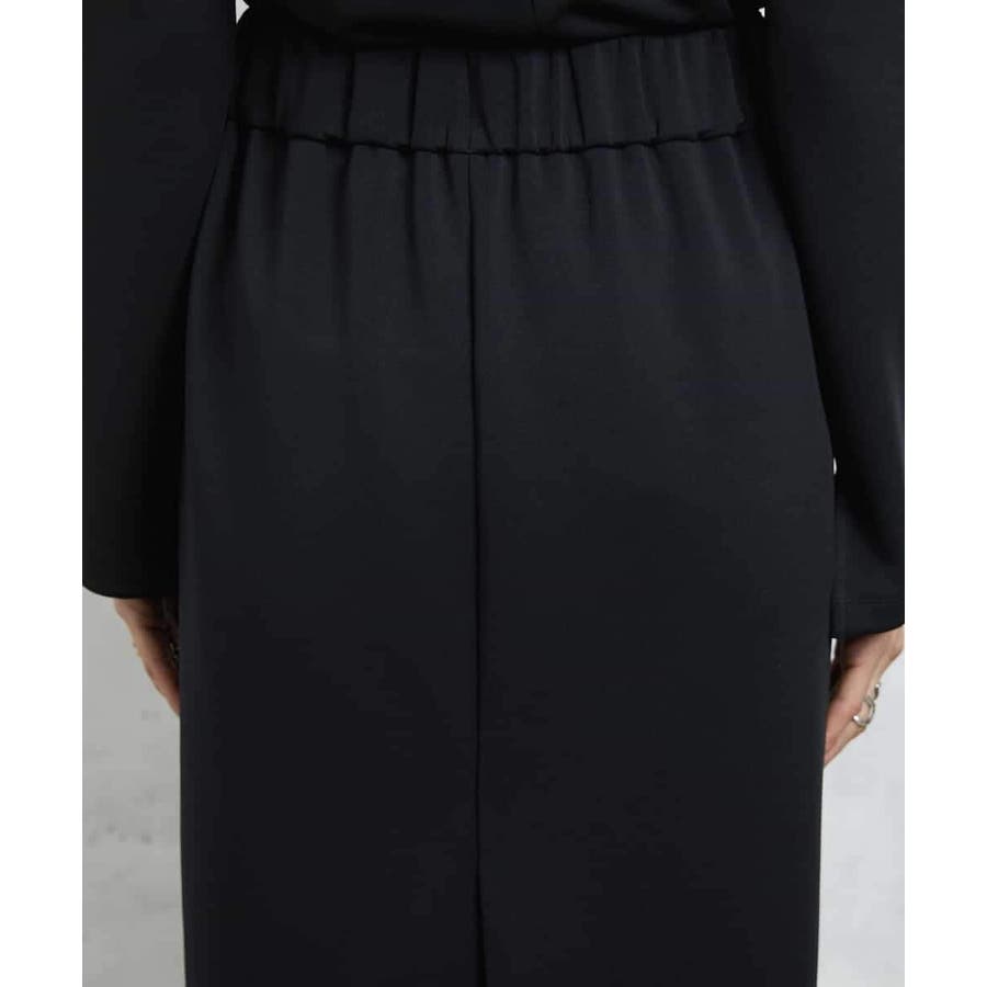 ウエストゴムのあき無しのリラックスした履き心地のタイトスカート。ラインにこだわり、前はギャザーなし、裾に向けて細くなるシルエットですっきりきちんと見えを叶えます。ウエストゴムの幅を広めにすることで、トップスをインしたときにも見せられるアクセントに。落ち感がありストレッチ性も高い素材で、スリットもしっかりと入れることではきやすさにもこだわりました。40サイズは限定店舗展開です。