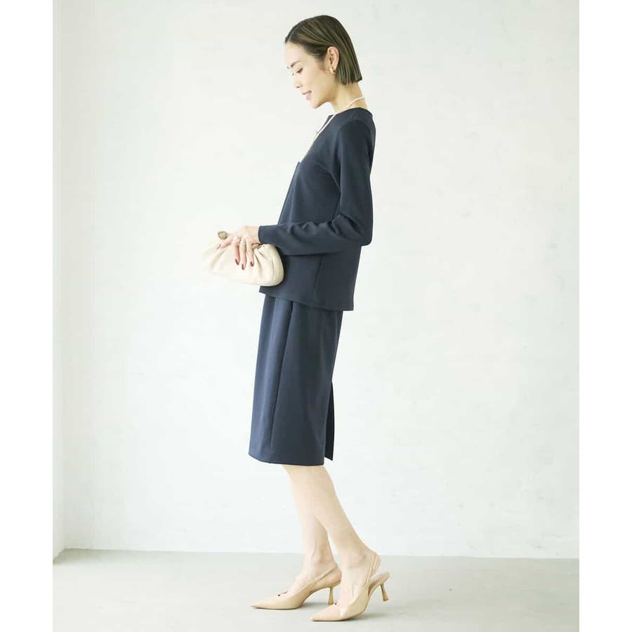 同素材ケープ付きブラウス[FMBDV20190]とセットアップで着用可能。スリムパンツ[FMLDV20190]、ワイドパンツ[FMKDV21210]も同素材でご用意いたしました。デイリーにはもちろん、卒業式や入学式などのセレモニーシーンにもおすすめ。セットアップスタイルはもちろん、単品でも使いやすいストレッチ素材。単品スカートとして汎用性の高い1枚です。