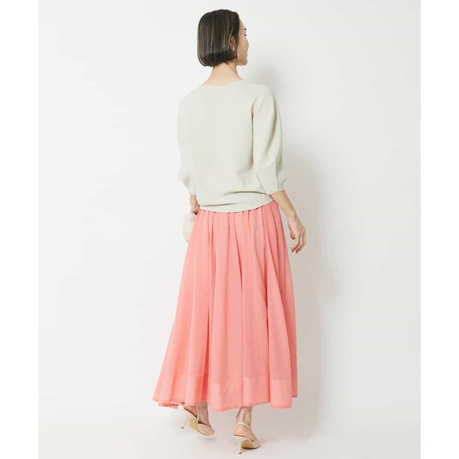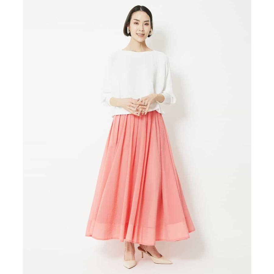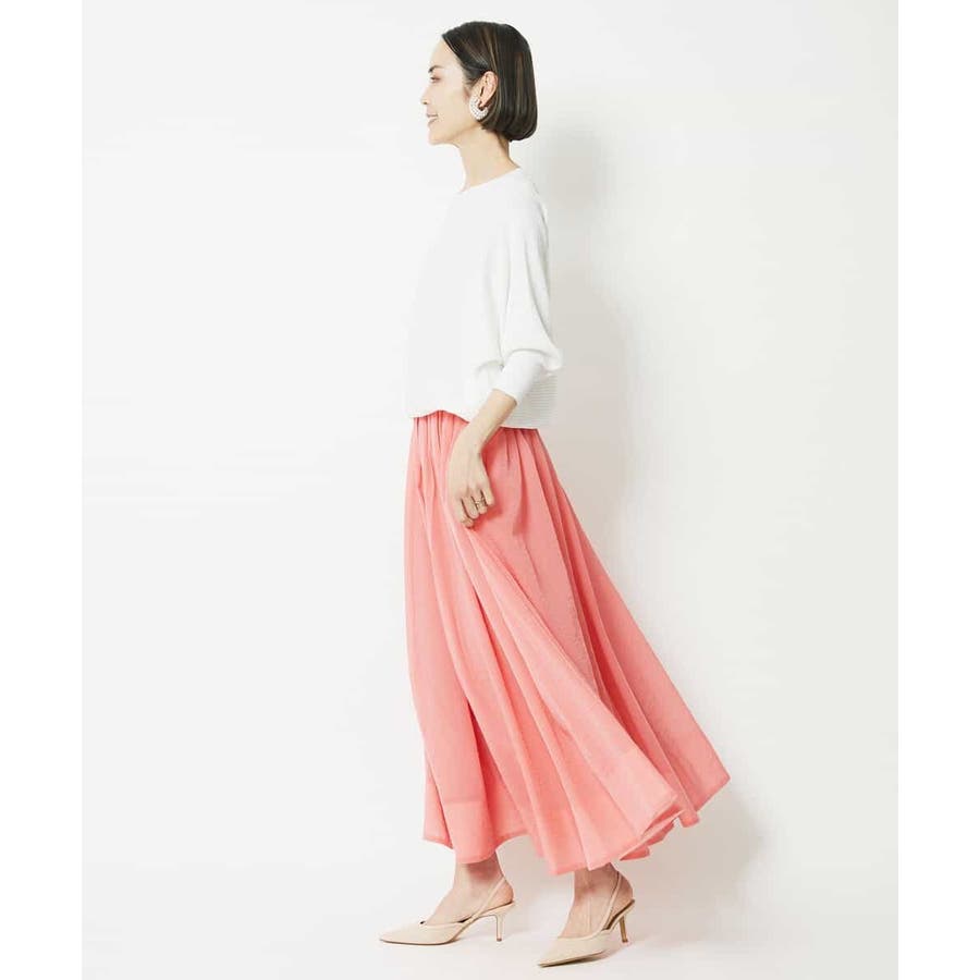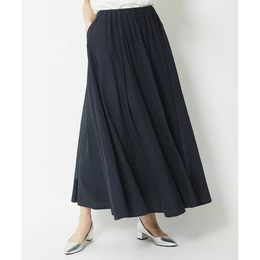 トレンドのシアースカートを「上品」・「大人」をコンセプトに仕上げたシアースカートです。たっぷりとしたフレアーでありながらウエストはすっきりと。ベルトレスなデザインでウエスト周りを軽く仕上げた端正なデザインが特徴です。ウエストゴムでストレスレスなアイテムです。40サイズは限定店舗展開です。