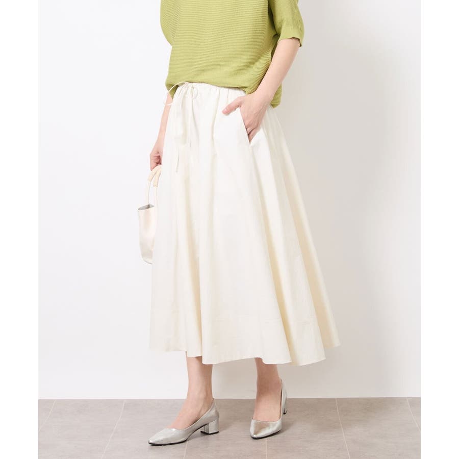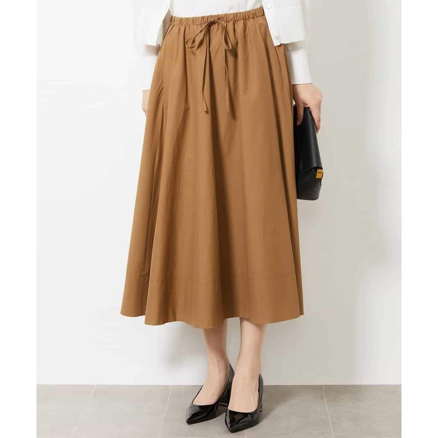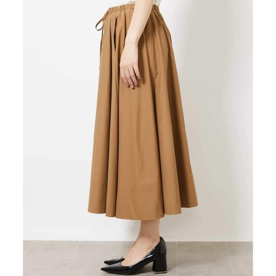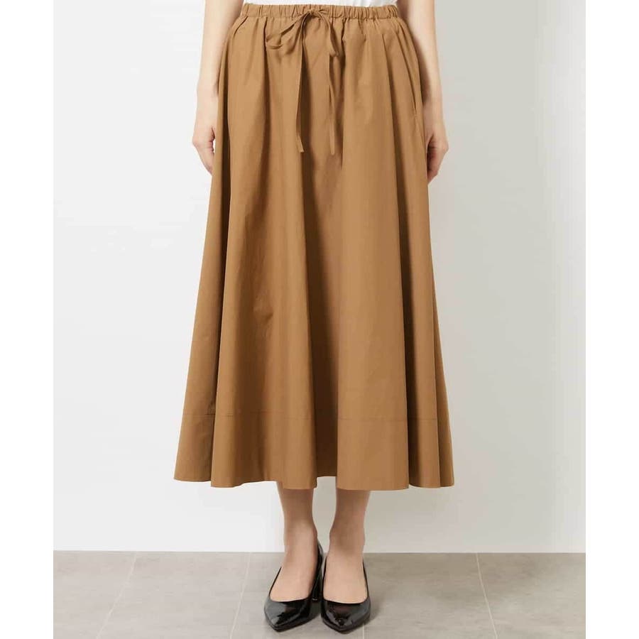 素材のハリコシを活かした広がりが美しいフレアスカートです。たっぷりと生地を使用した贅沢なデザイン。ウエストのドロストでサイズ調整も可能です。40サイズは限定店舗展開です。