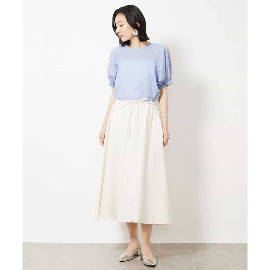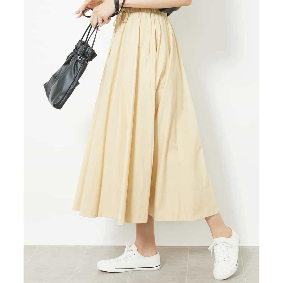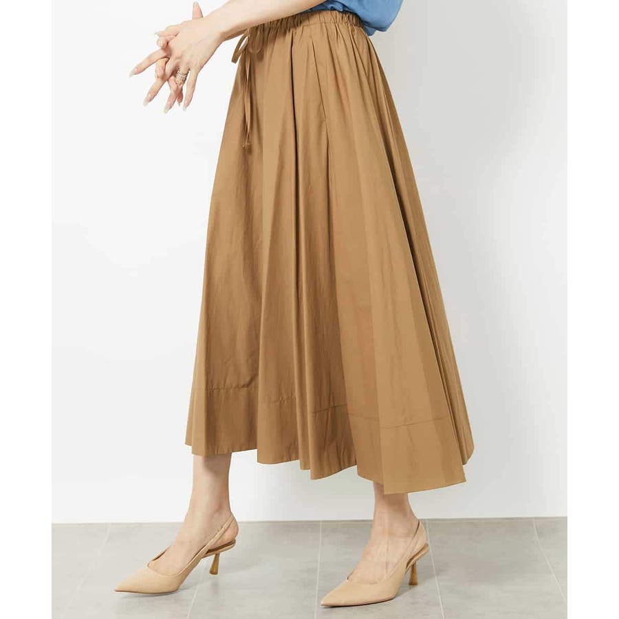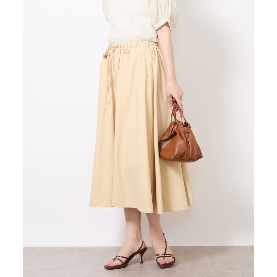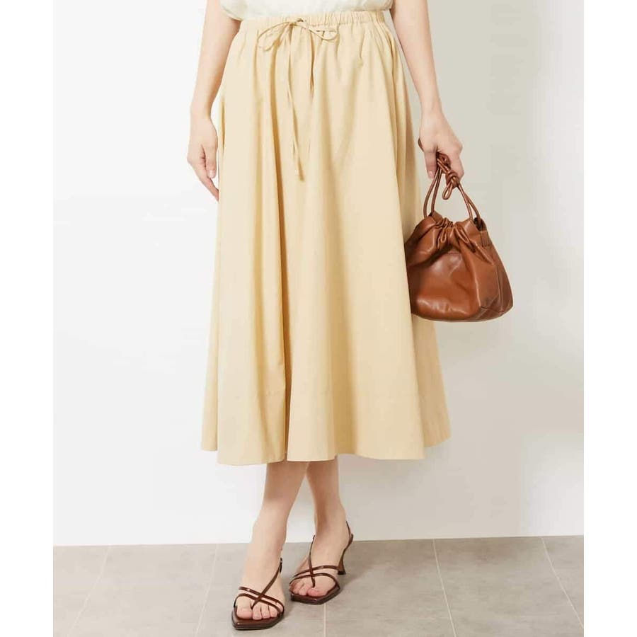 素材のハリコシを活かした広がりが美しいフレアスカートです。たっぷりと生地を使用した贅沢なデザイン。ウエストのドロストでサイズ調整も可能です。40サイズは限定店舗展開です。