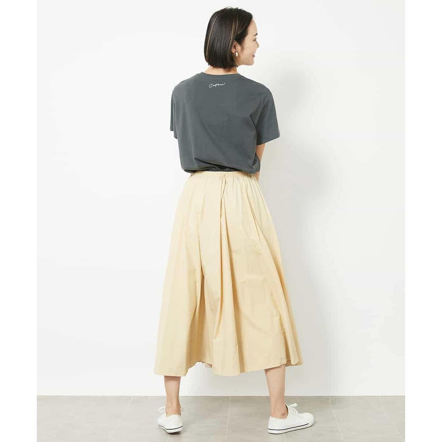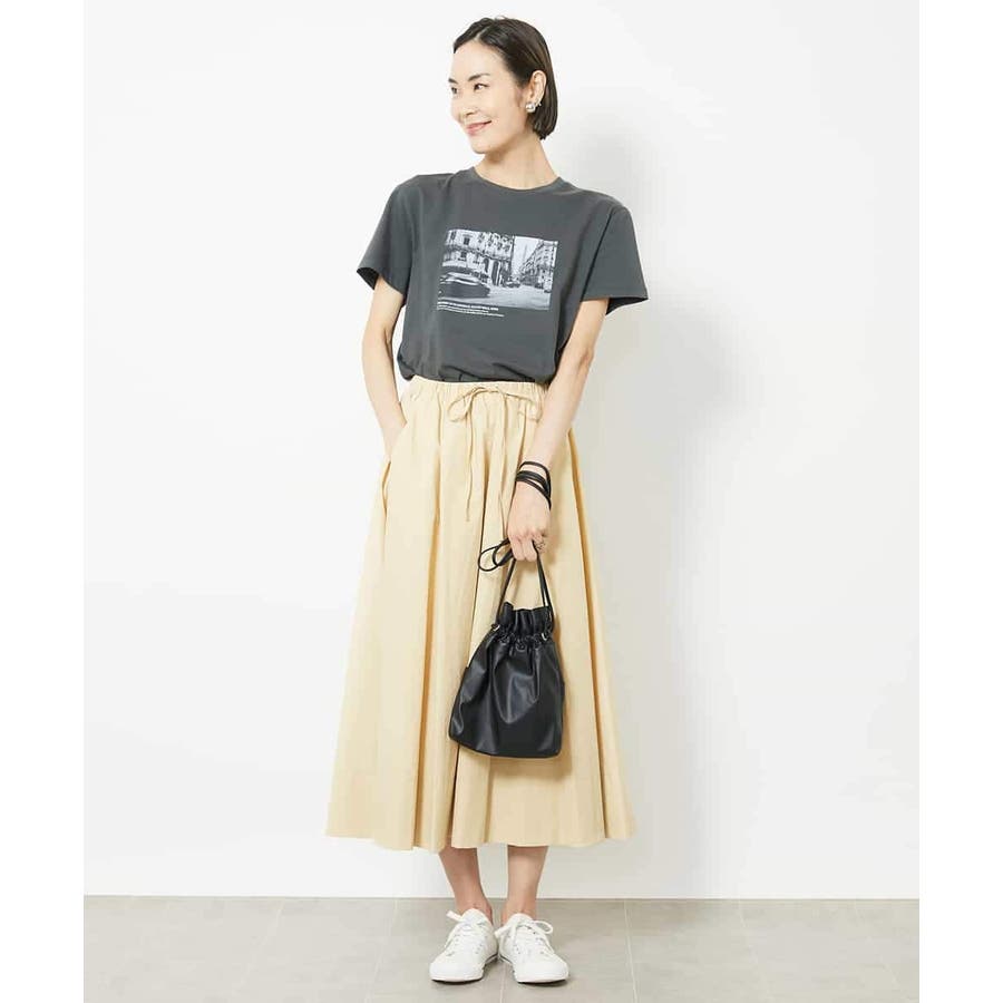 オールシーズン素材で、ニット・ブラウス・カットソーと合わせるものを選ばないスカートです。Tシャツとスニーカーでカジュアルに。キレイめスタイルにはブラウスやカーディガン合わせがおすすめ。