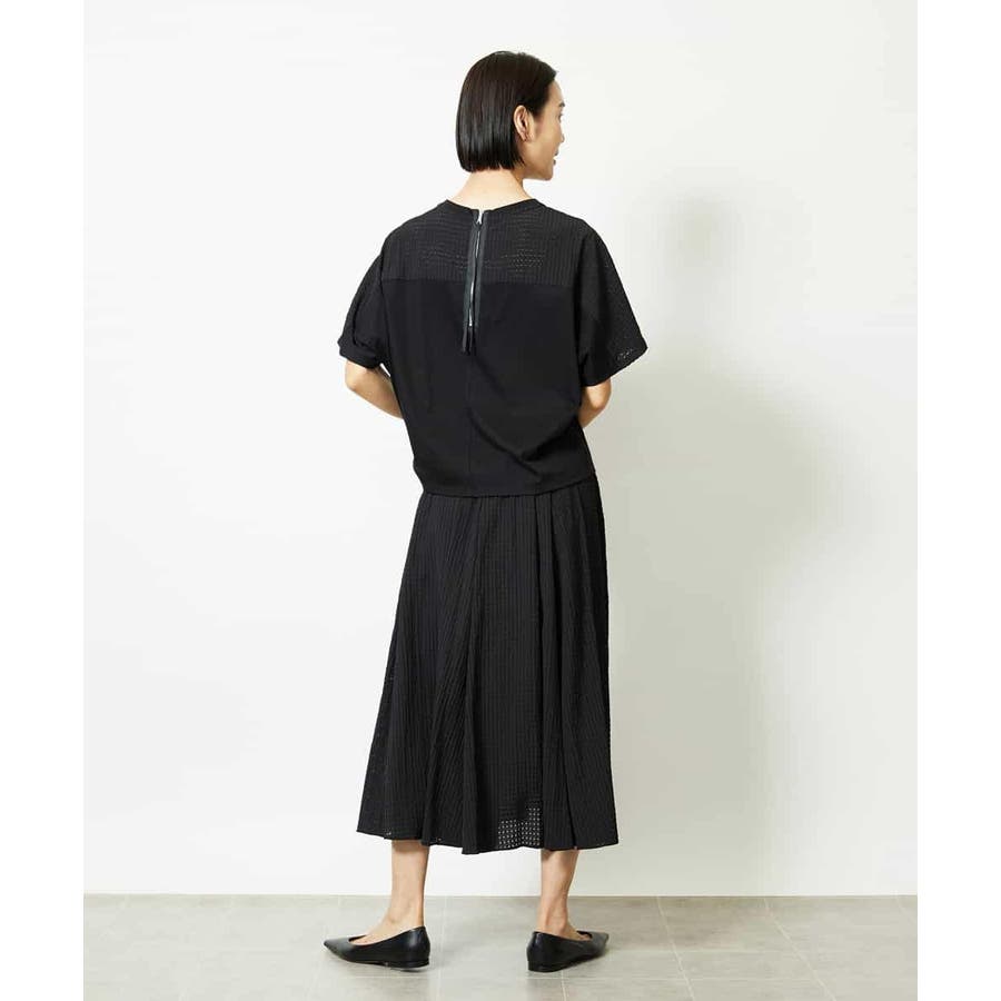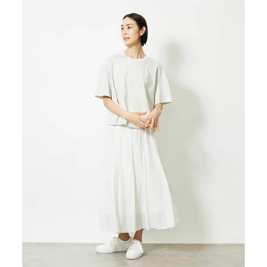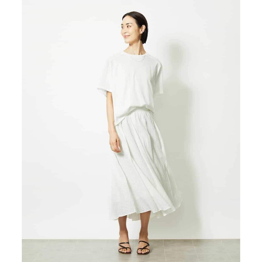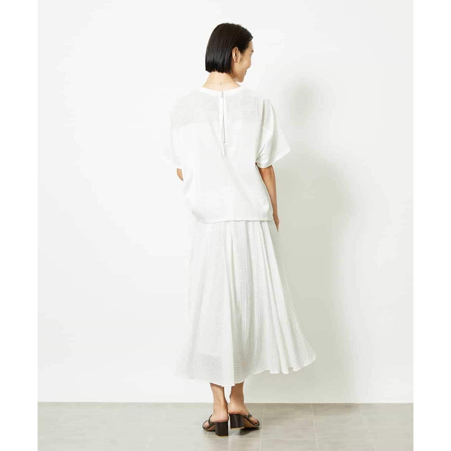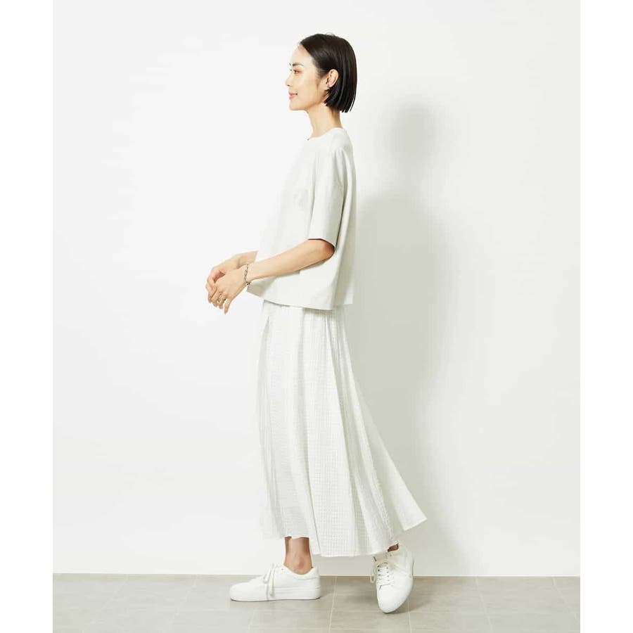 さりげない凹凸感があり、涼しげなシアーチェック素材を使用。接地面が少ないため、さらっとした着心地です。透け感は控えめで、トレンドのシアー素材を気軽に取り入れられるのもポイントです。