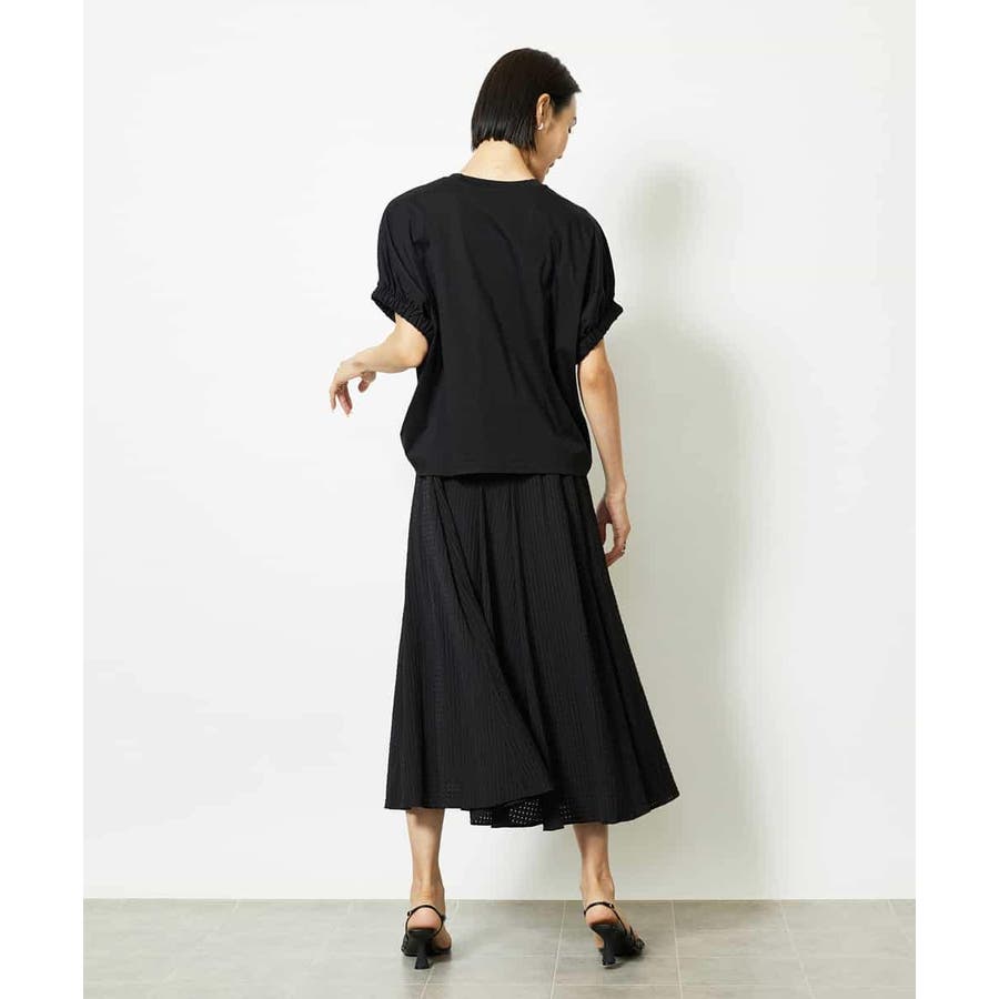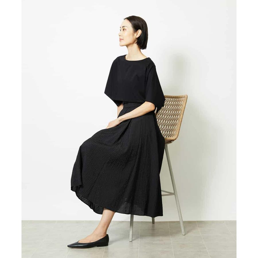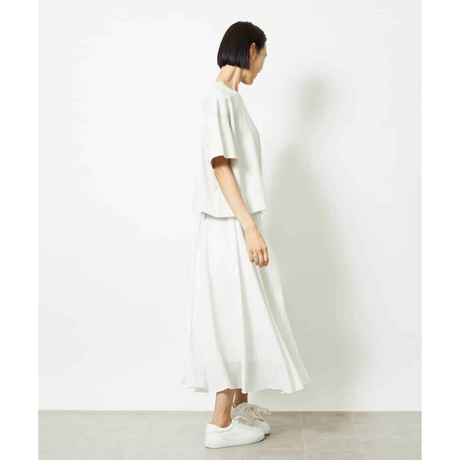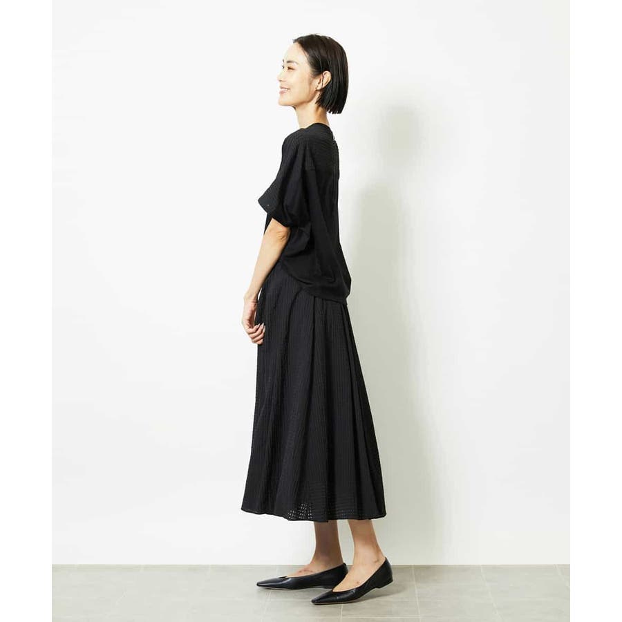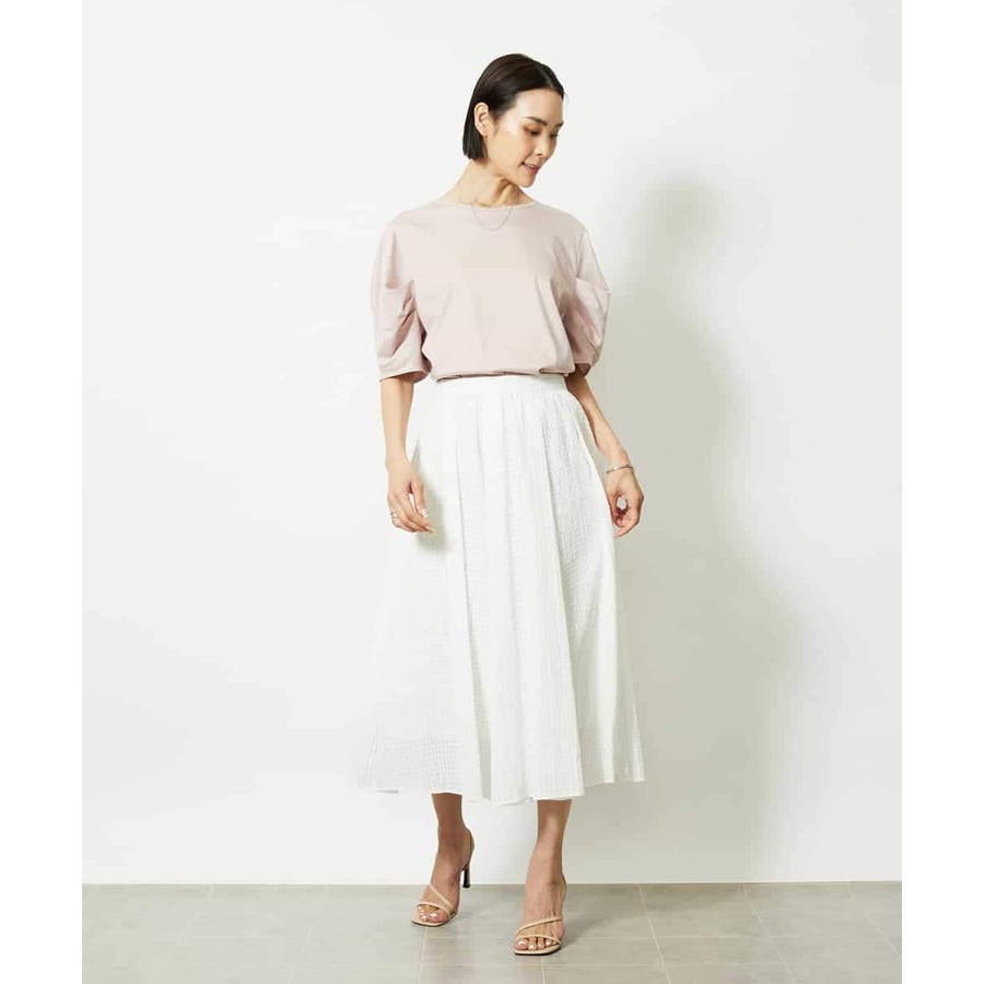さりげない凹凸感があり、涼しげなシアーチェック素材を使用。接地面が少ないため、さらっとした着心地です。透け感は控えめで、トレンドのシアー素材を気軽に取り入れられるのもポイントです。