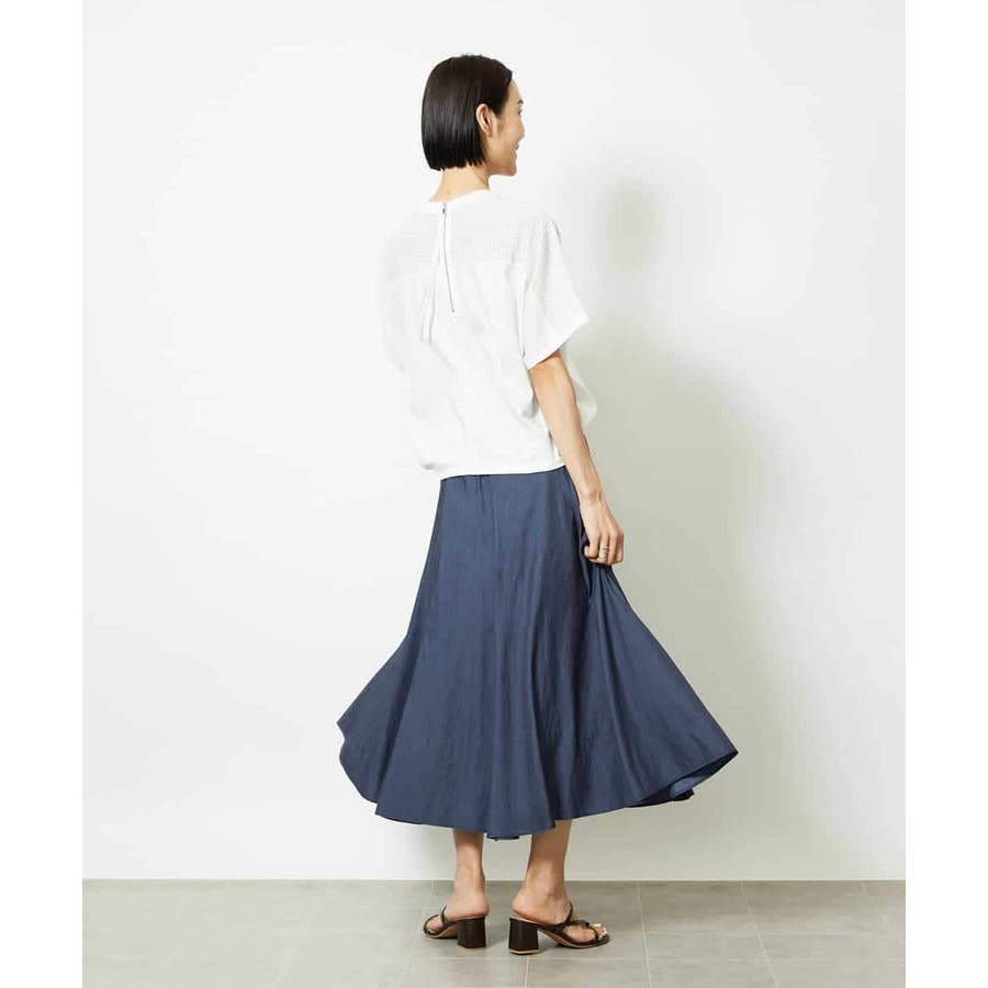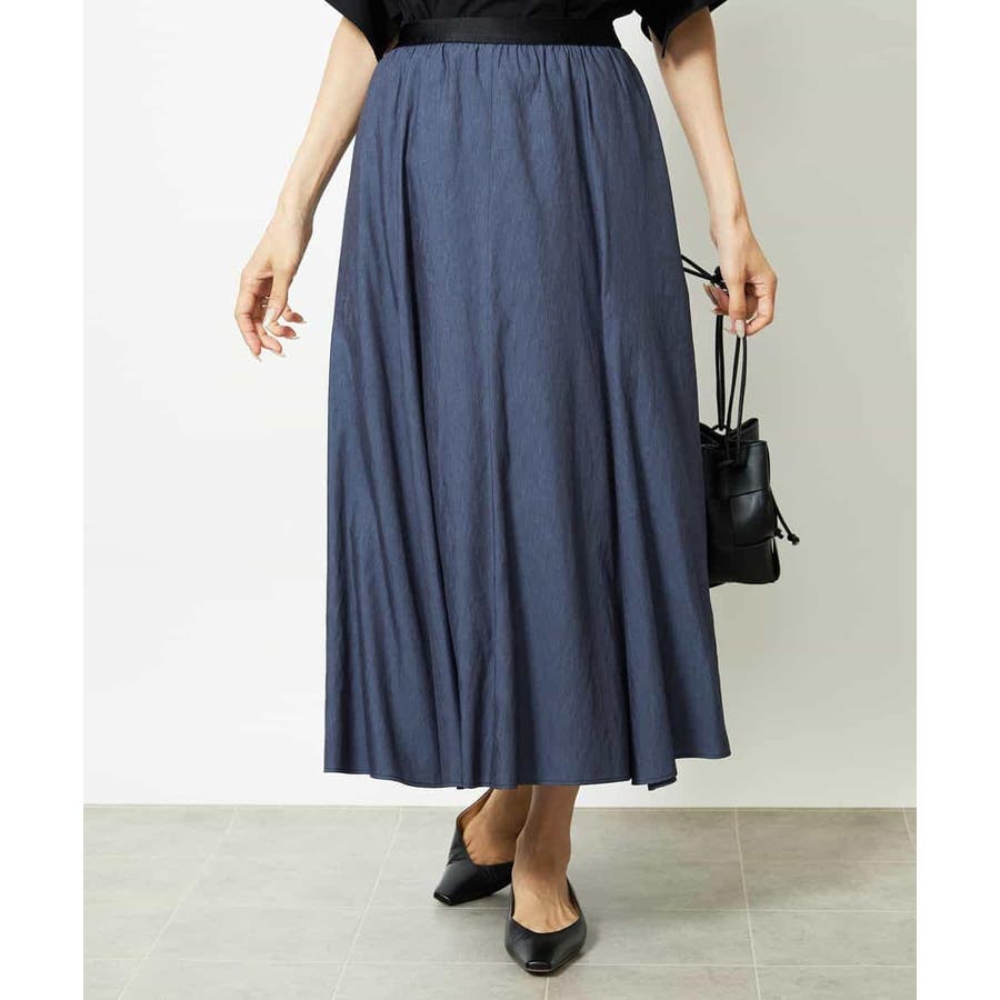 軽やかな風合いと上品な光沢感が魅力のシャンブレーデニムスカート。ほんのりフレアに広がるシルエットが女性らしく、動くたびに美しく揺れて軽やかな印象を与えます。ウエストはゴム仕様で穿き心地も快適。カジュアルなTシャツ合わせはもちろん、ブラウスやシャツできれいめにも着こなせる、着回し力抜群の一枚です。