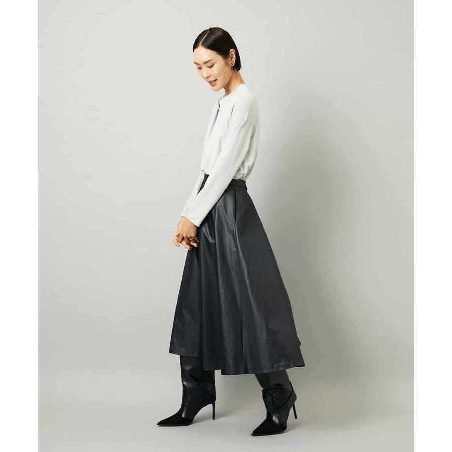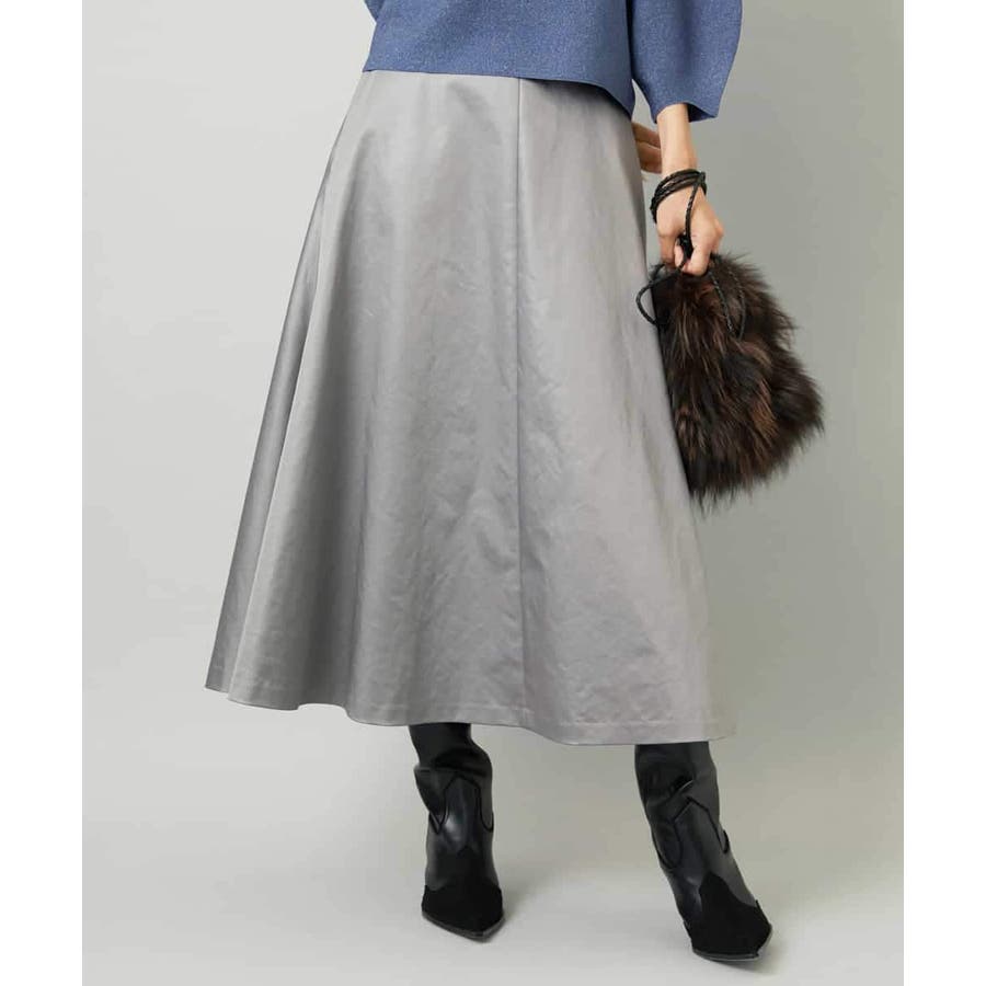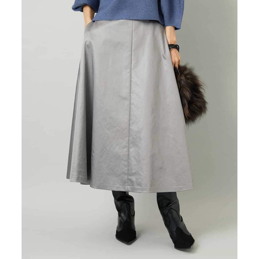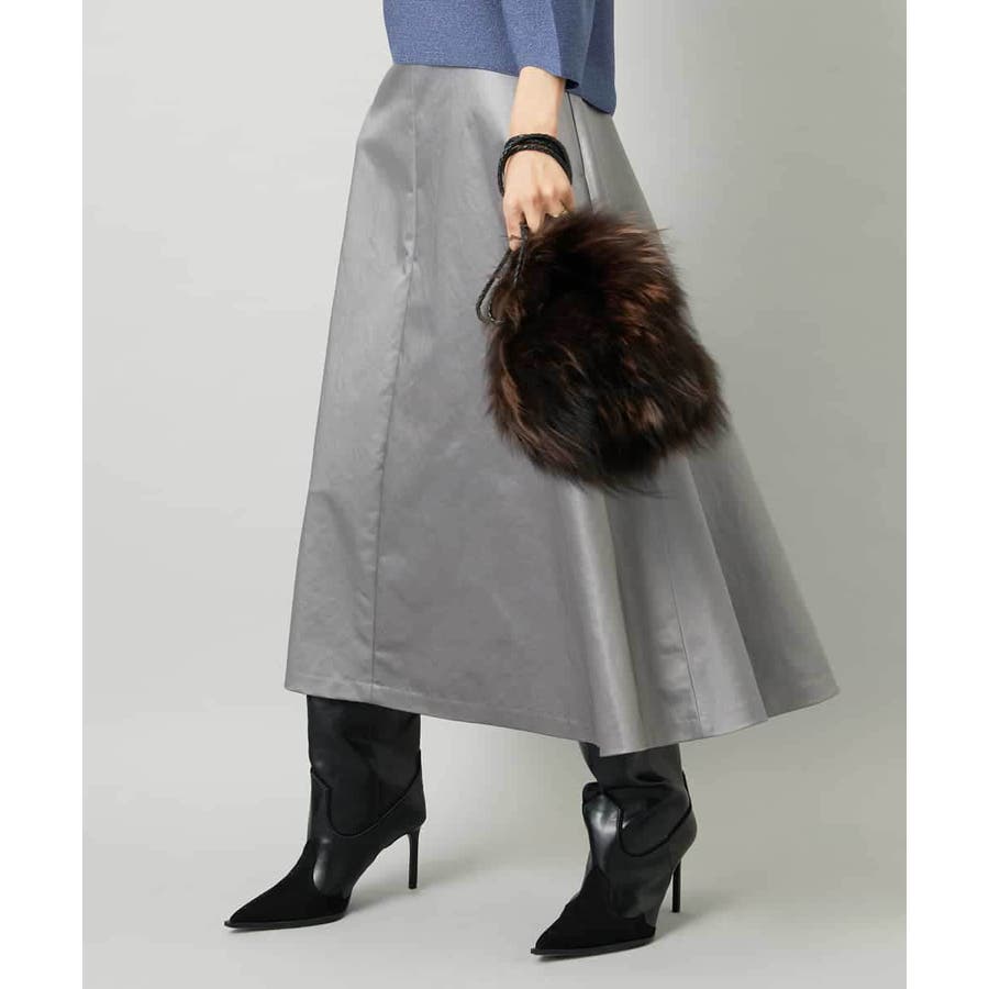 サテンベースのフェイクレザースカートは、モードになりすぎず扱いやすさも備えています。スタイリングしやすいミモレ丈のすっきりしたフレアシルエットが特徴です。コンパクトなトップスと合わせると、バランスの良いコーディネートに。36・40サイズは限定店舗展開です。