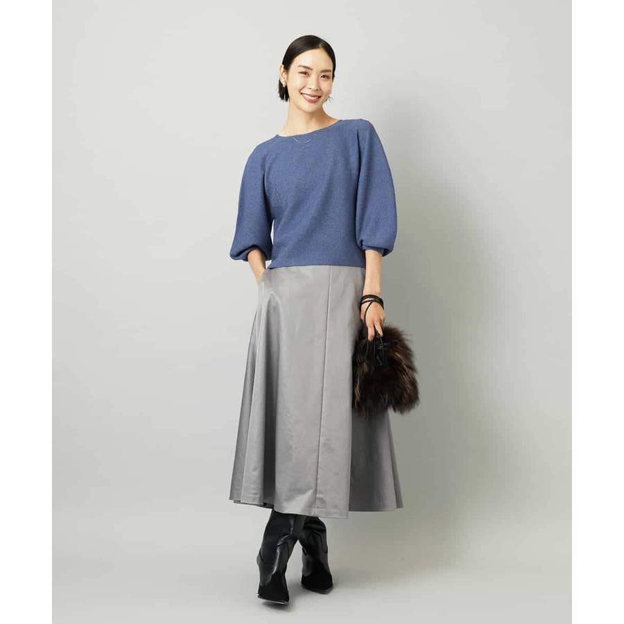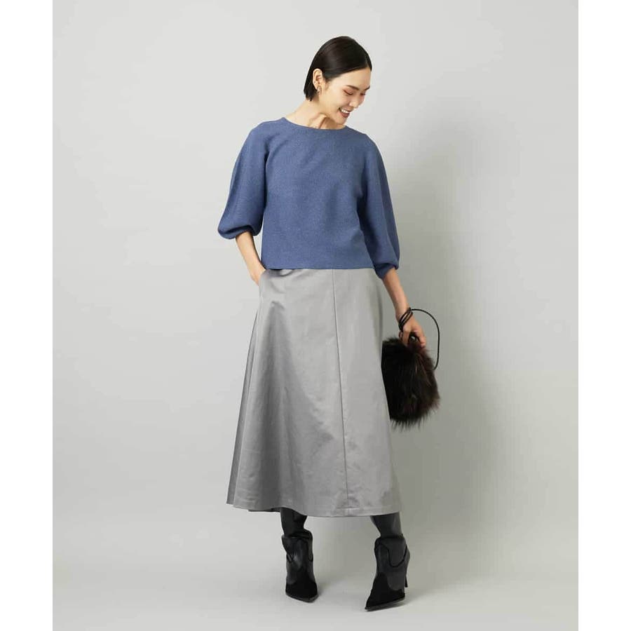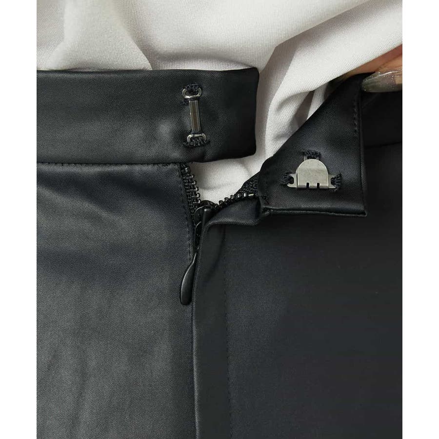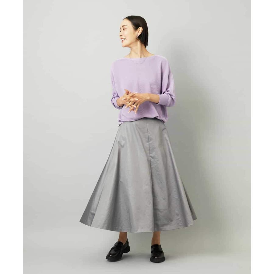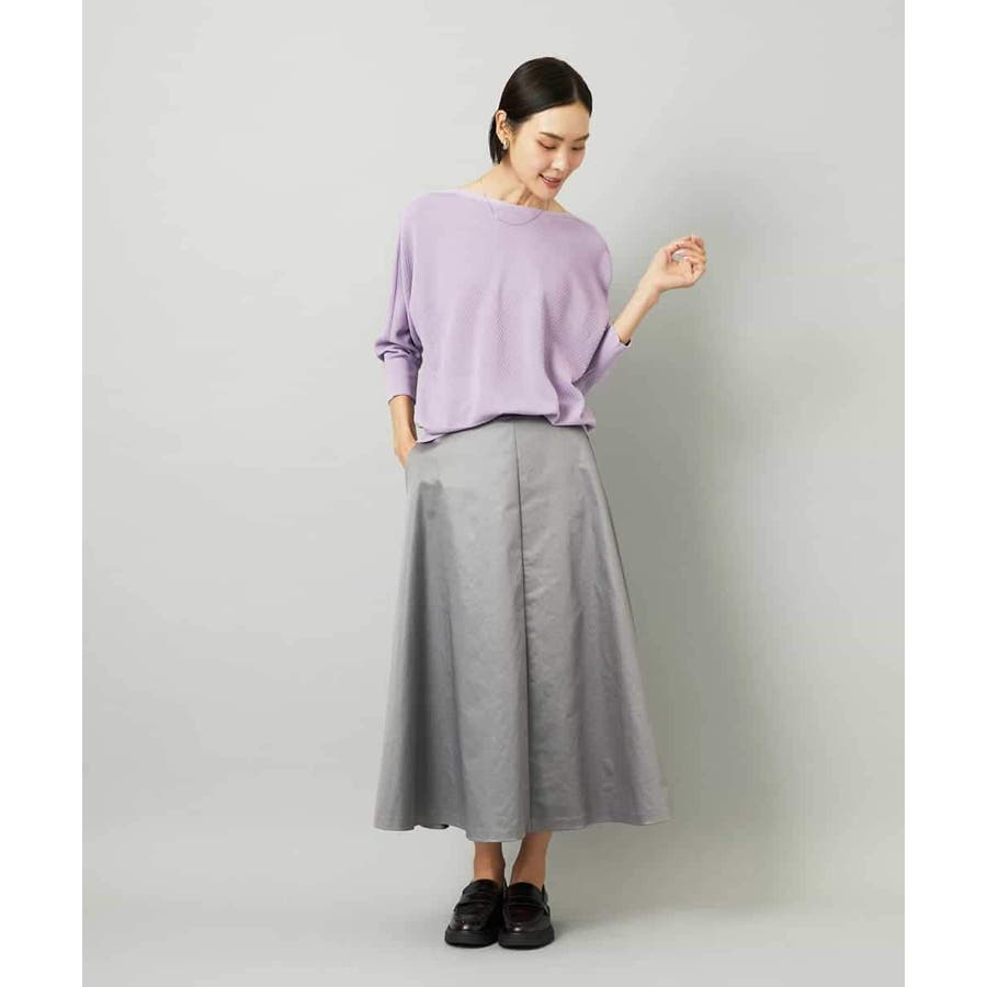 サテンベースのフェイクレザースカートは、モードになりすぎず扱いやすい一枚。すっきりしたミモレ丈フレアで、コンパクトなトップスと合わせればバランスの良いコーデに。シアースキッパーニットプルオーバー[FMFAD22220]と合わせると、<光沢×マット><ライト×ヘビー>のコントラストを効かせたスタイリングも楽しめます。