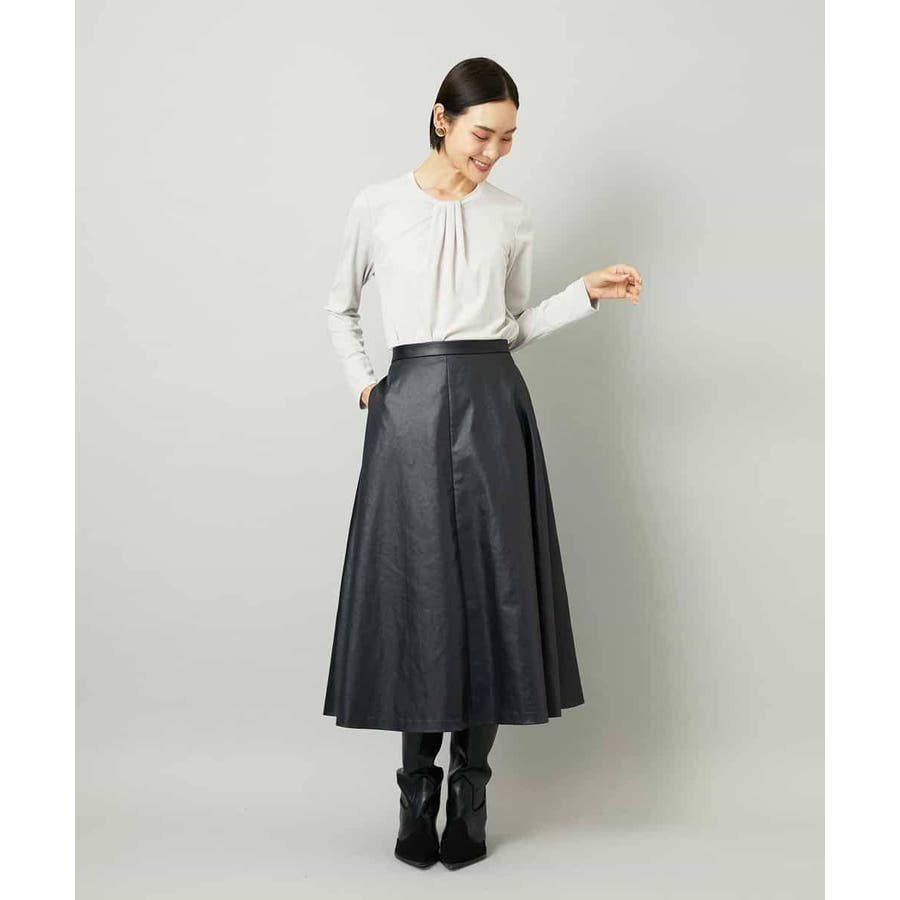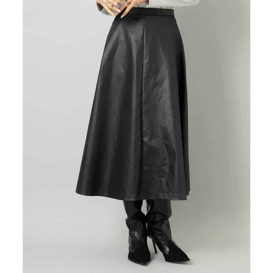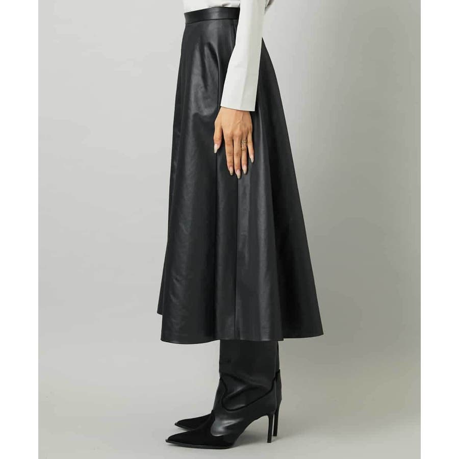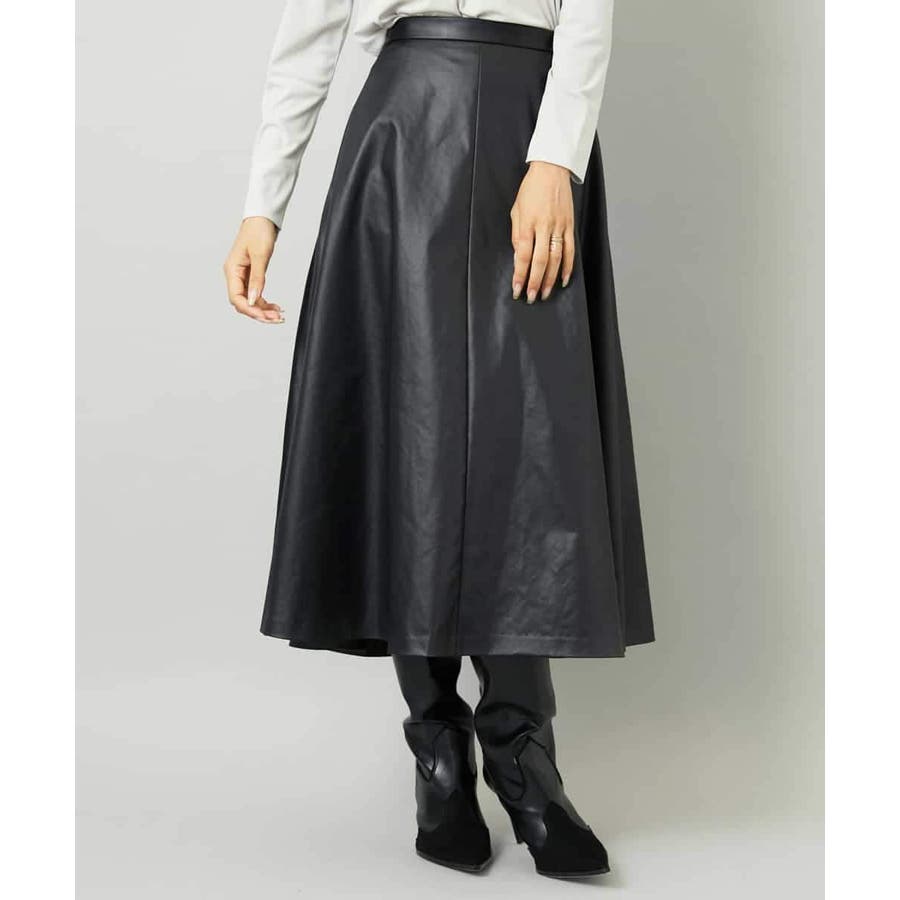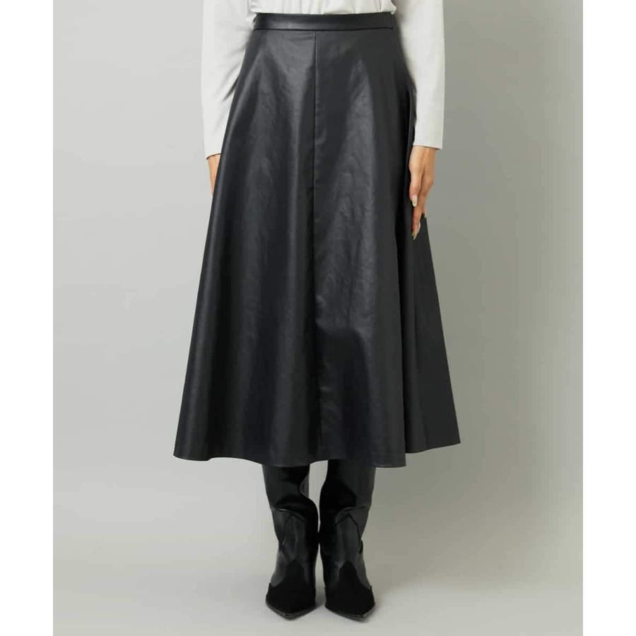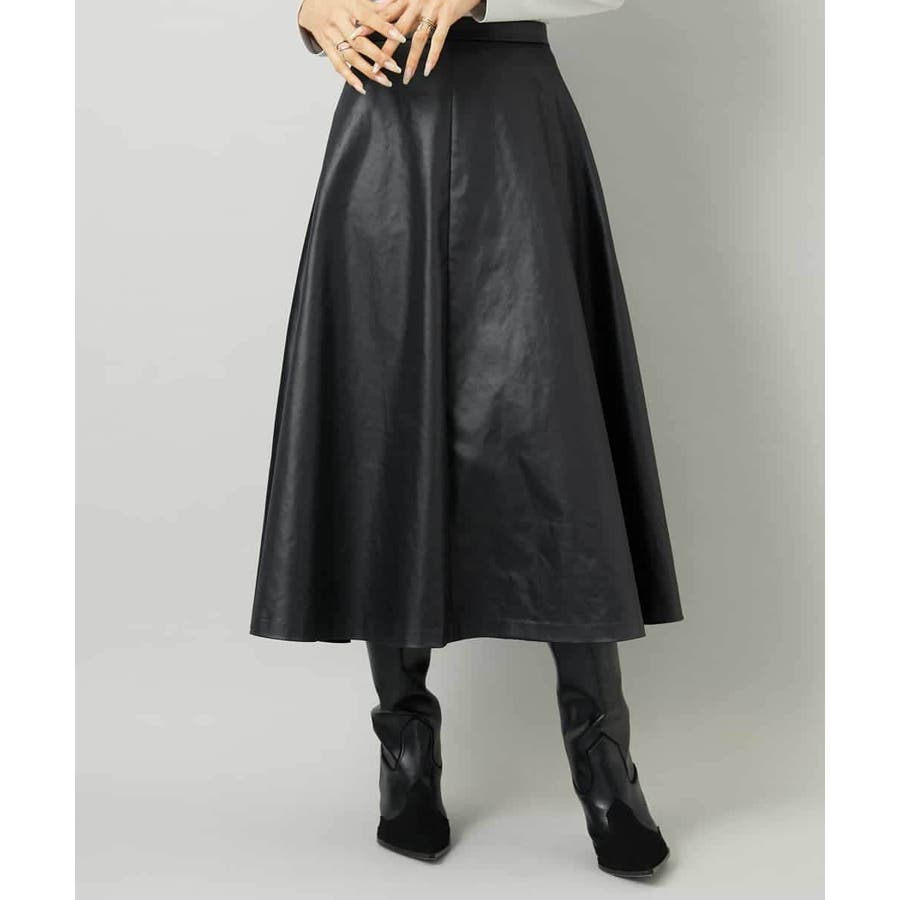 フェイクレザーフレアスカート