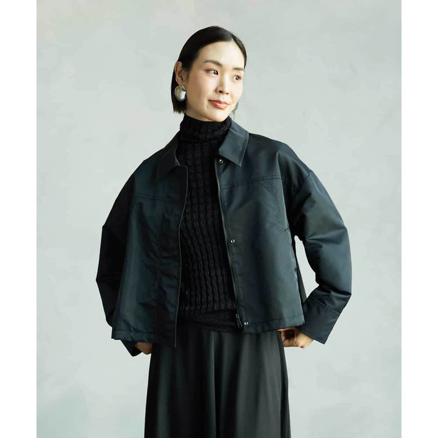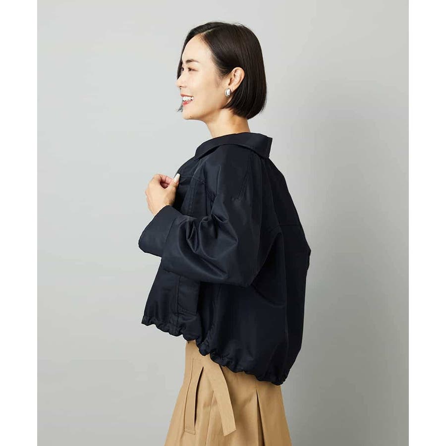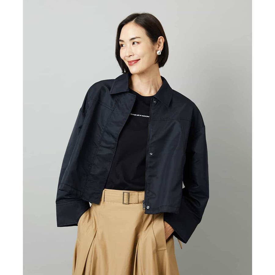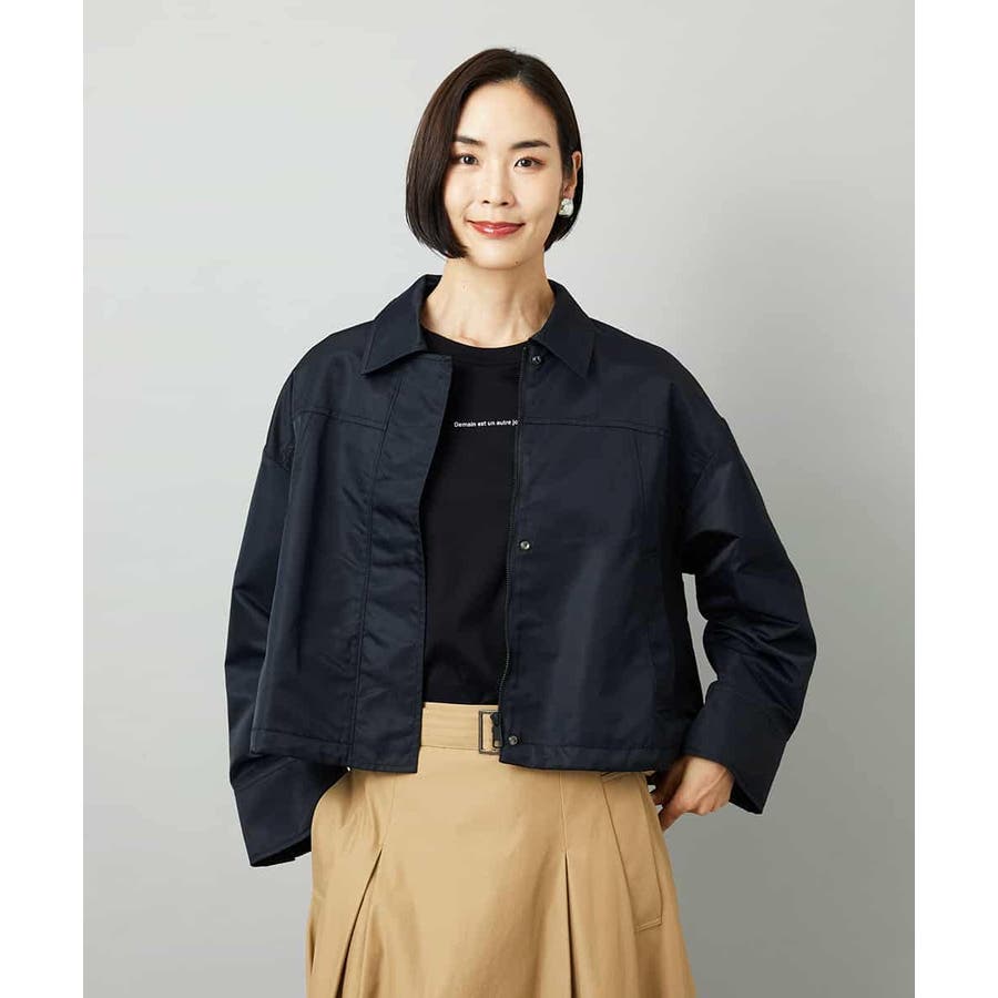 立体的なフォルムが特徴のステンカラーショートブルゾン。相反するテイストを組み合わせることで、大人らしい洗練されたミックスコーデが完成されます。40サイズは限定店舗展開です。